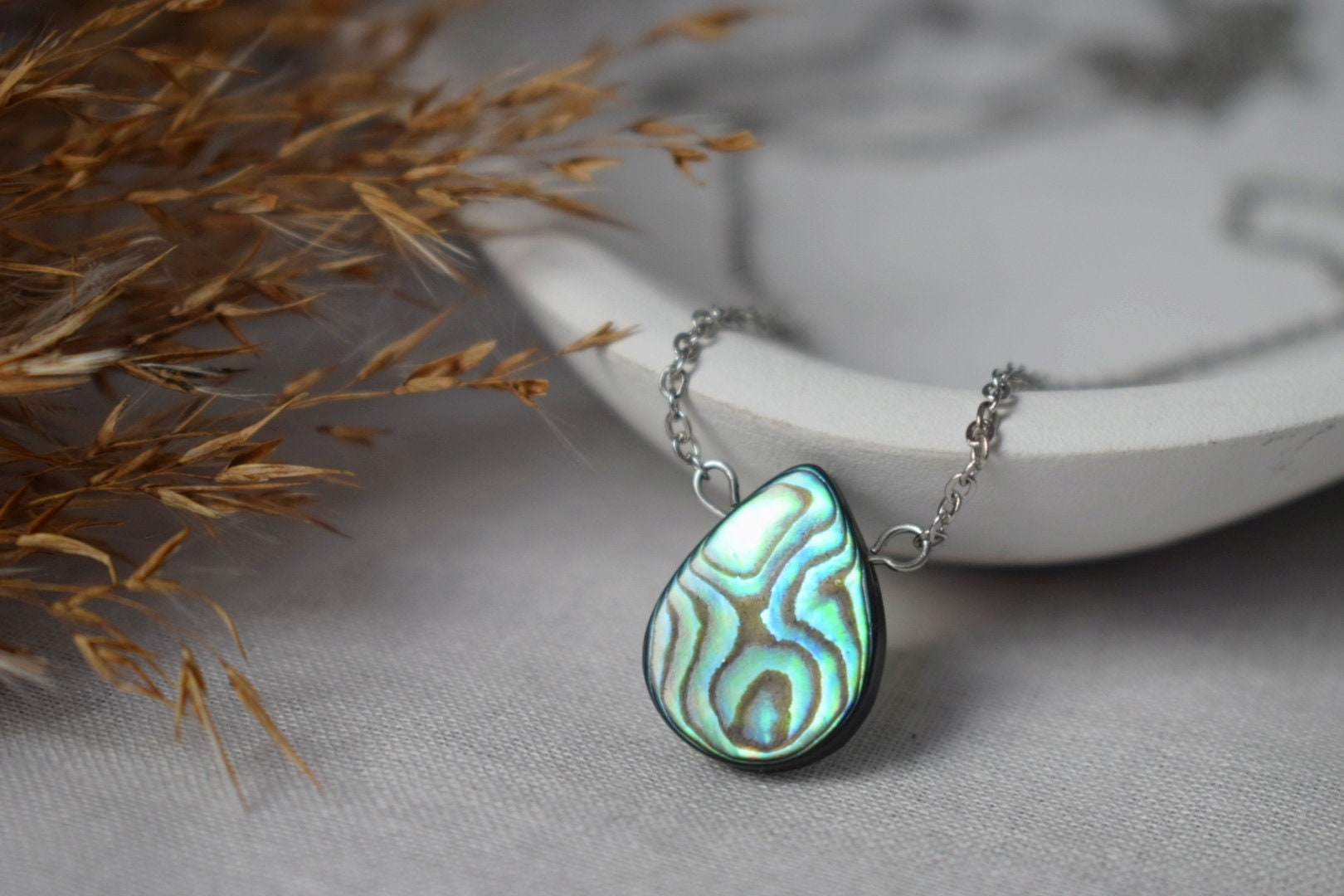 Abalone Shell necklace, Abalone pendant, Abalone teardrop necklace, Colorful abalone, Paua shell, Abalone choker, Abalone jewelry for women
