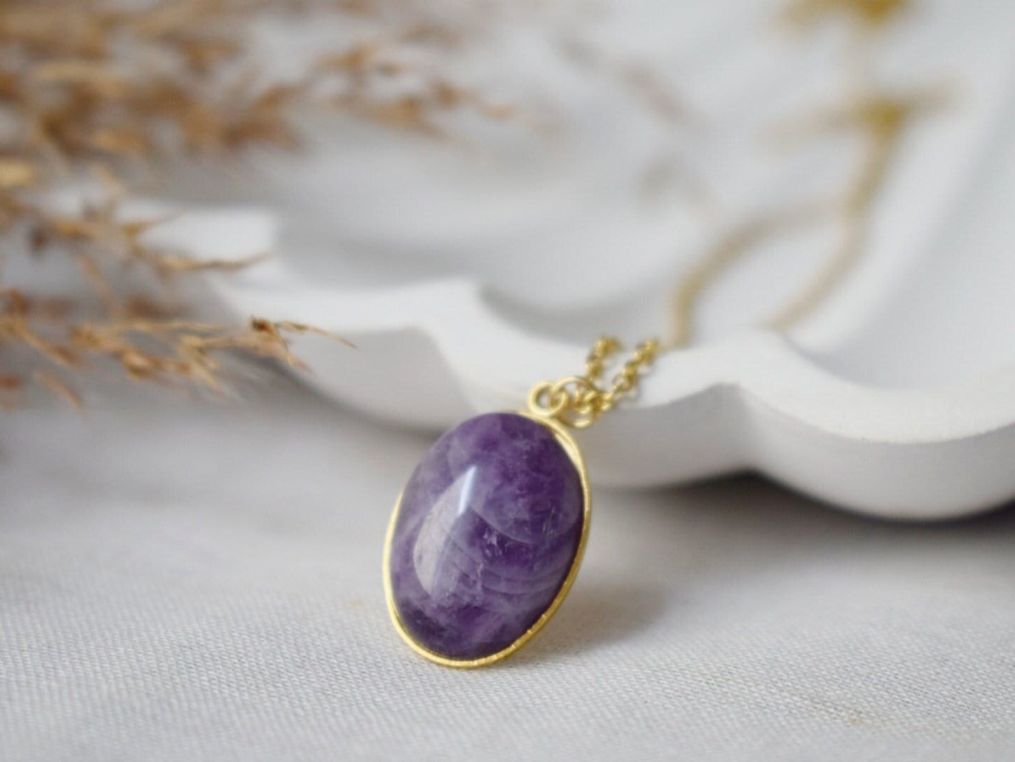Amethyst pendant necklace gold for women, Oval, Gemstone, Purple stone, Amethyst, February birthstone, Handmade jewelry, Gift for her