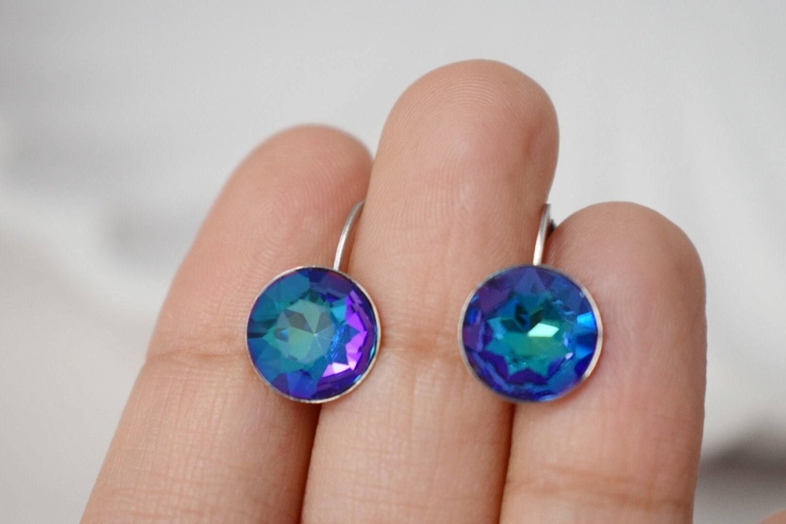 Bermuda Blue Earrings, Rhinestone Dangle Earrings, Glass Hanging Earrings, Dark Blue Earrings, Crystal Earrings, Elegant Dangle Earrings
