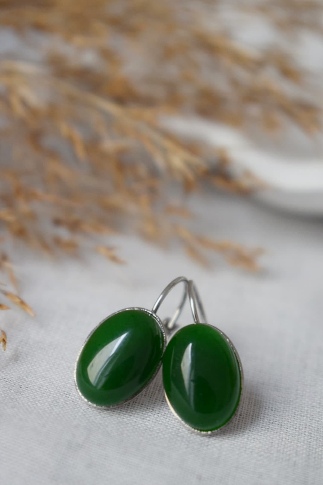 Green jade ears, Gemstone oval ears, Dangle drop ears, Green, Stainless steel, Leverback, Birthday small jewelry gift for women