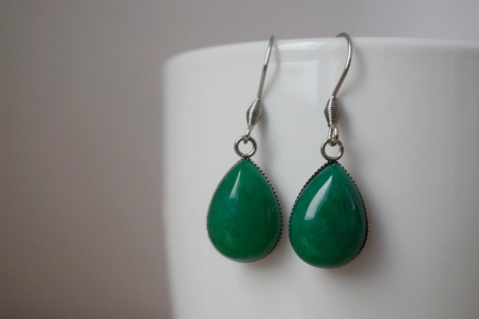 Green jade teardrop earrings, Gemstone dangle and drop hanging earrings, Jade jewelry, Gift for womenBest christmas gift
