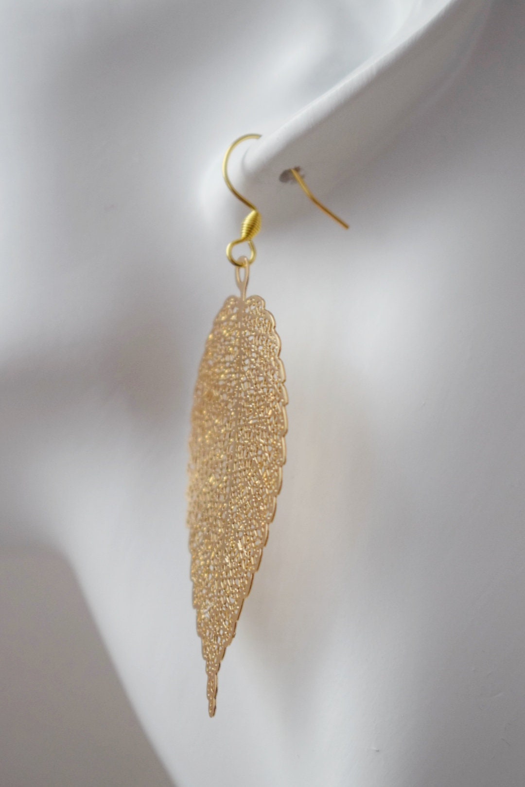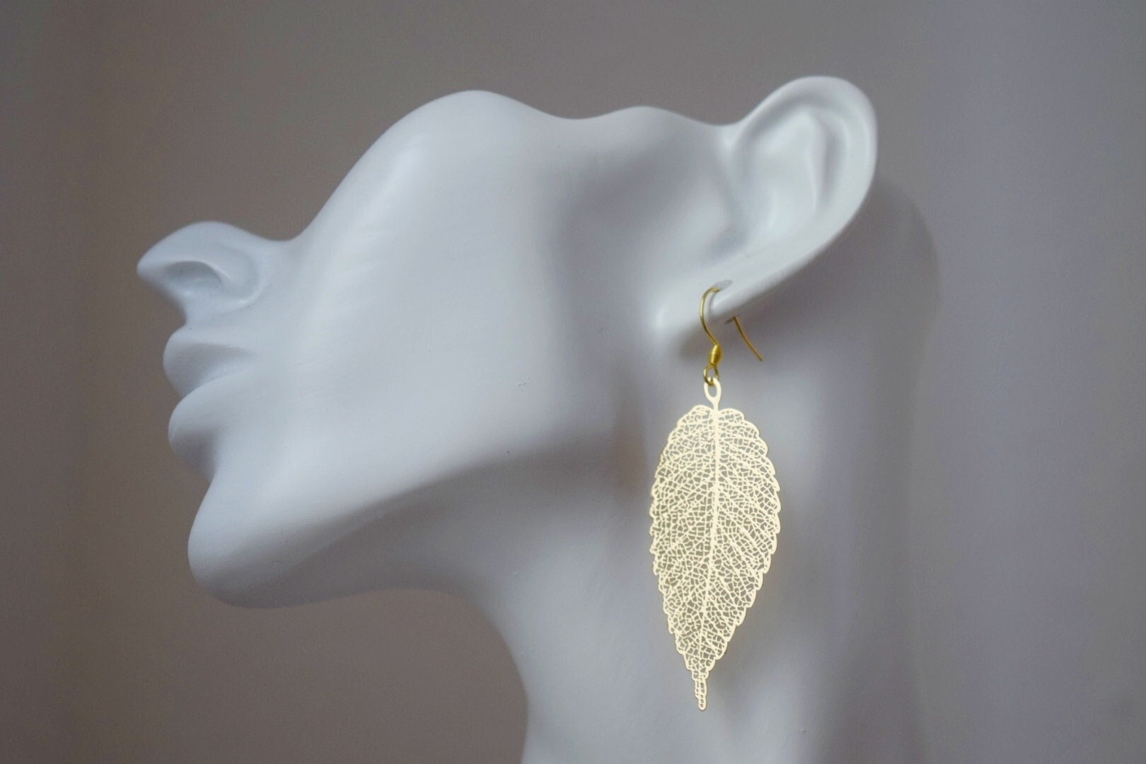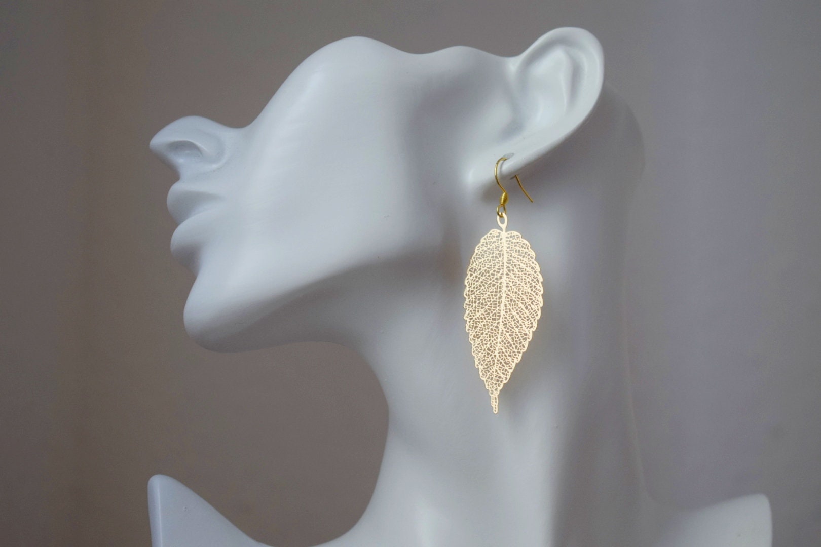 Long Leaf Filigree Ears for women, Leaf dangle ears, Stainless steel ears hooks, Boho statement ears, Leaf gold jewelry, Gift for her