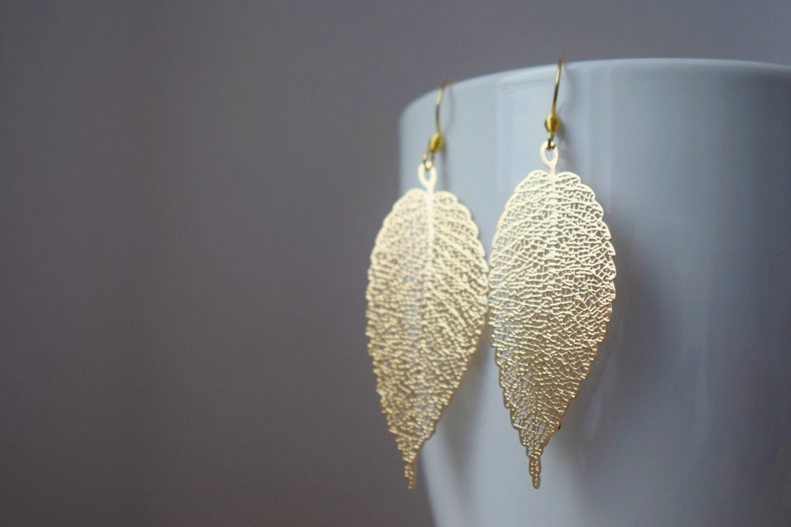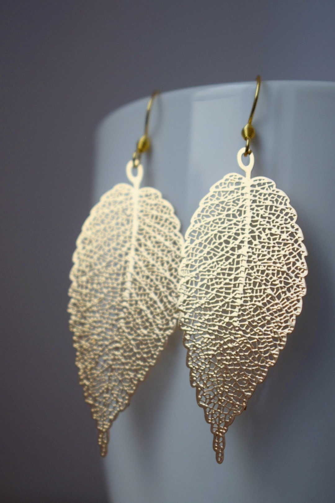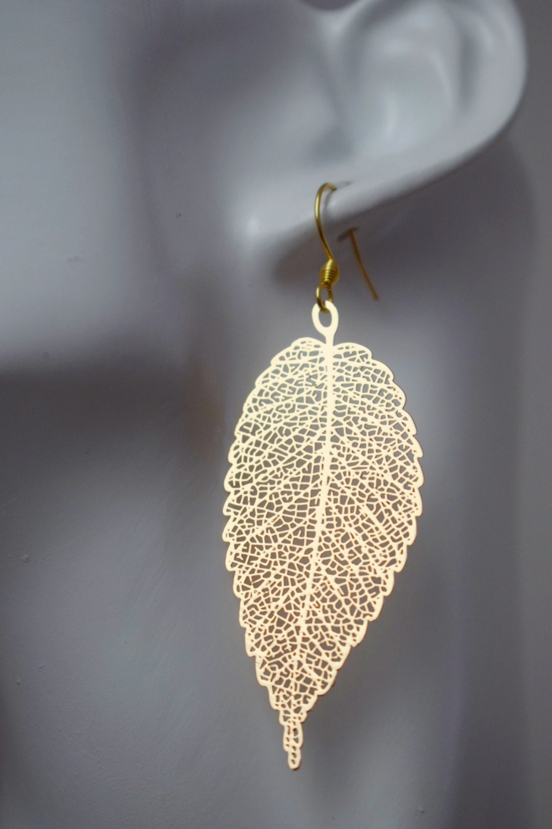 Long Leaf Filigree Ears for women, Leaf dangle ears, Stainless steel ears hooks, Boho statement ears, Leaf gold jewelry, Gift for her