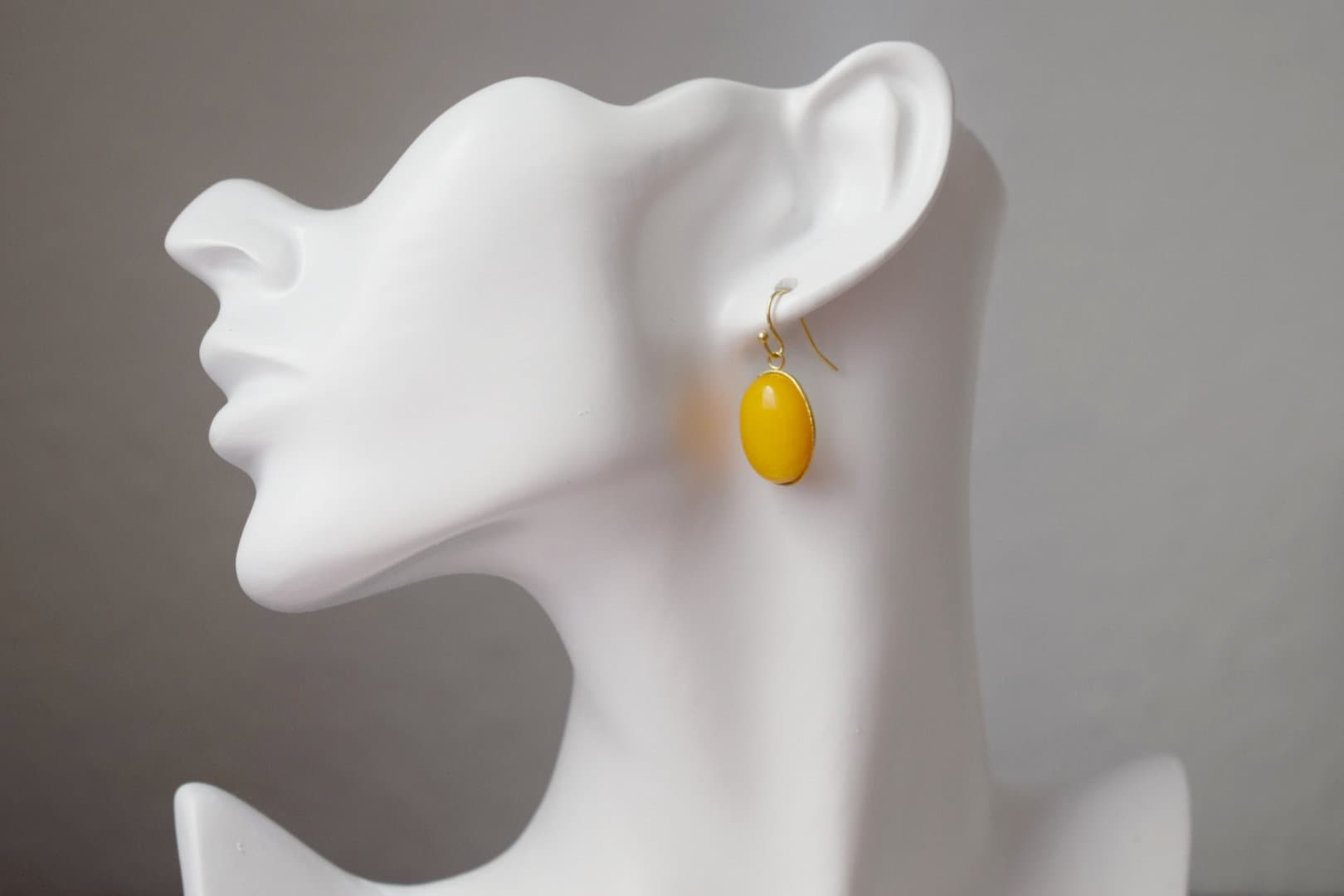 Yellow Jade Earrings Gold, Oval Gemstone Hanging Earrings, Dark Yellow Pendant, Dangle Drop Stone Earrings For Women, Jade Jewelry, Gift For Her