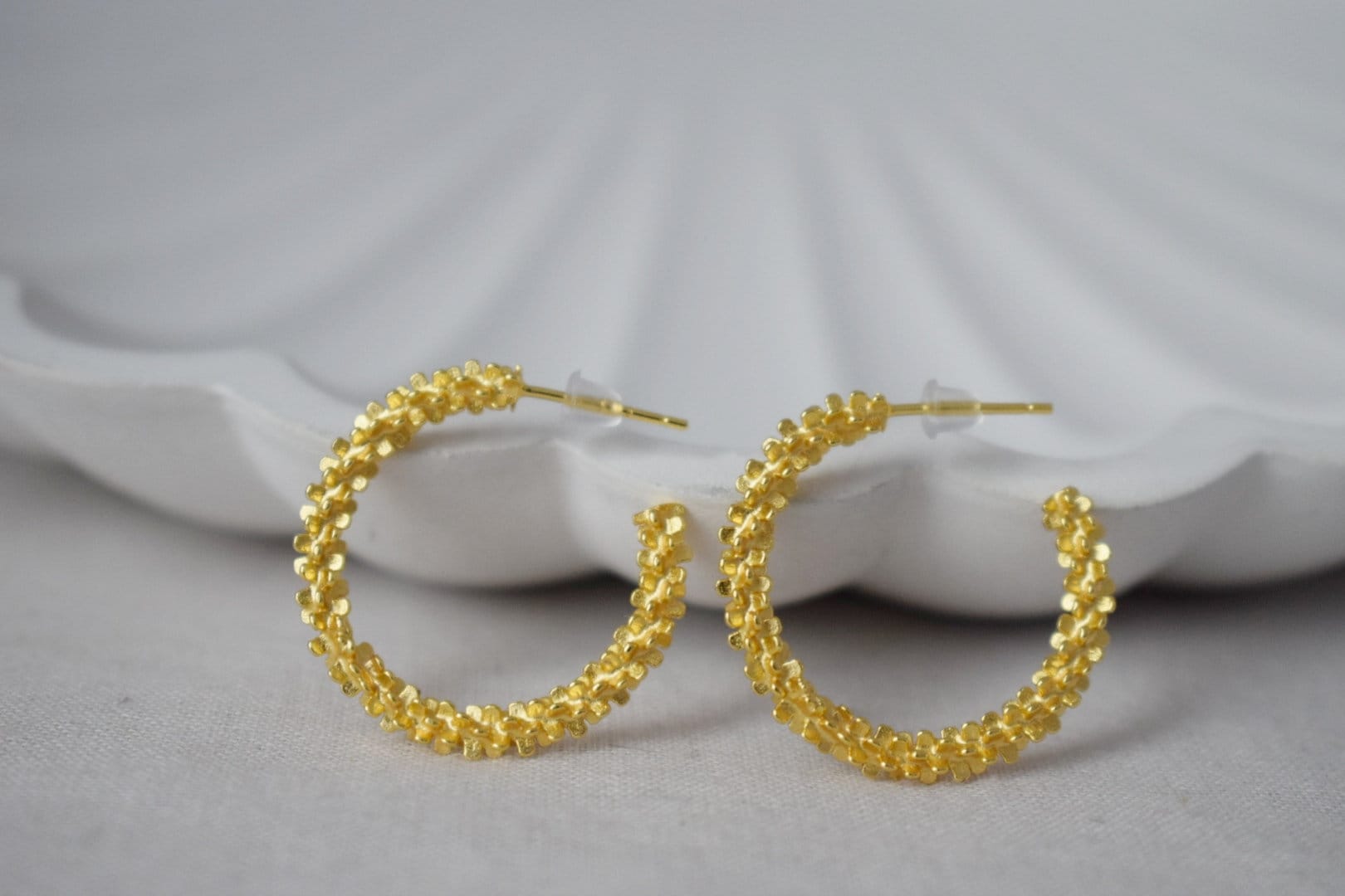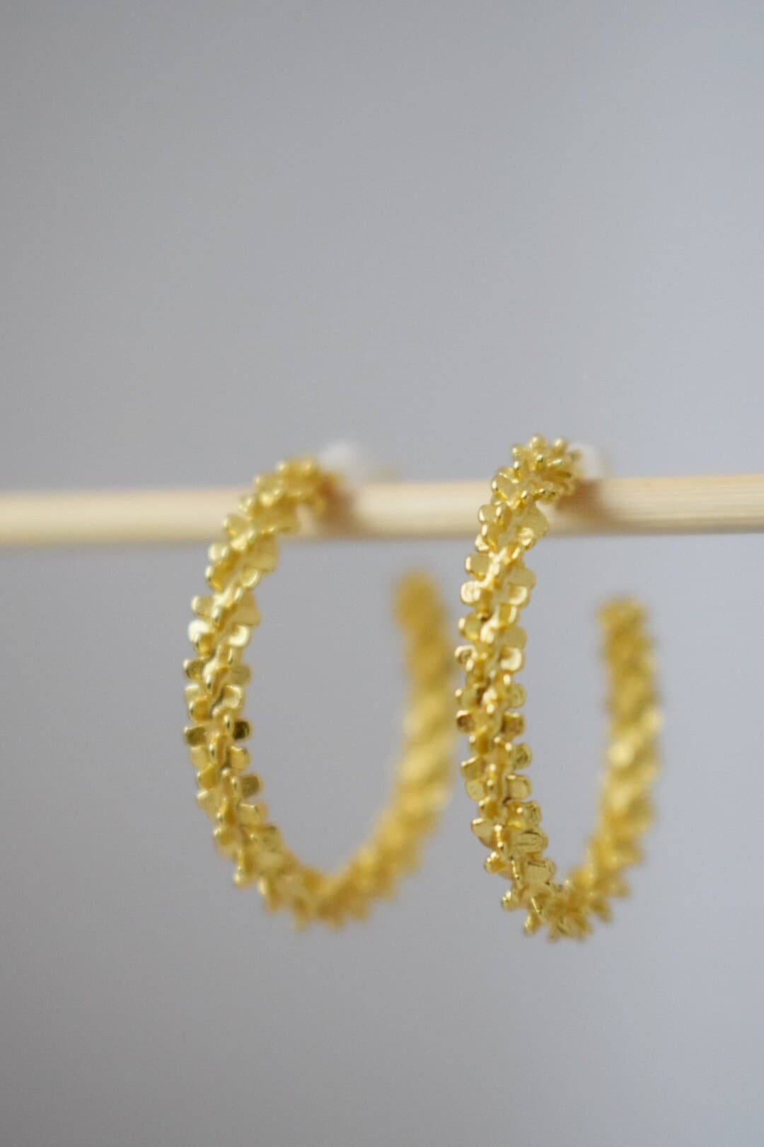 925 Sterling Silber Strukturierte Creolen, Statement Goldene Creolen, Halb moderne Ohrstecker, C Form, Push Back, Perfektes Geschenk für Sie