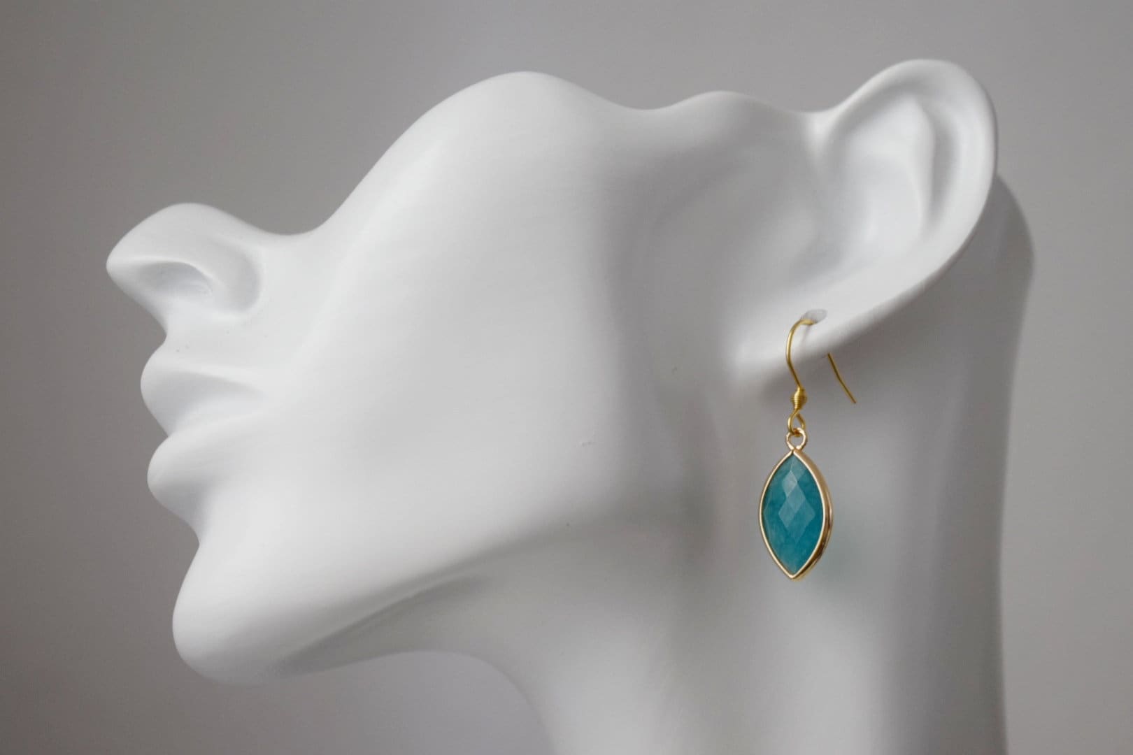 Aquamarin Jade Ohrringe, Facettierte Edelstein Ohrringe, Blau Gold Ohrhänger, Pferdeauge, Stein Hängeohrringe, Jade Gold Schmuck Geschenk