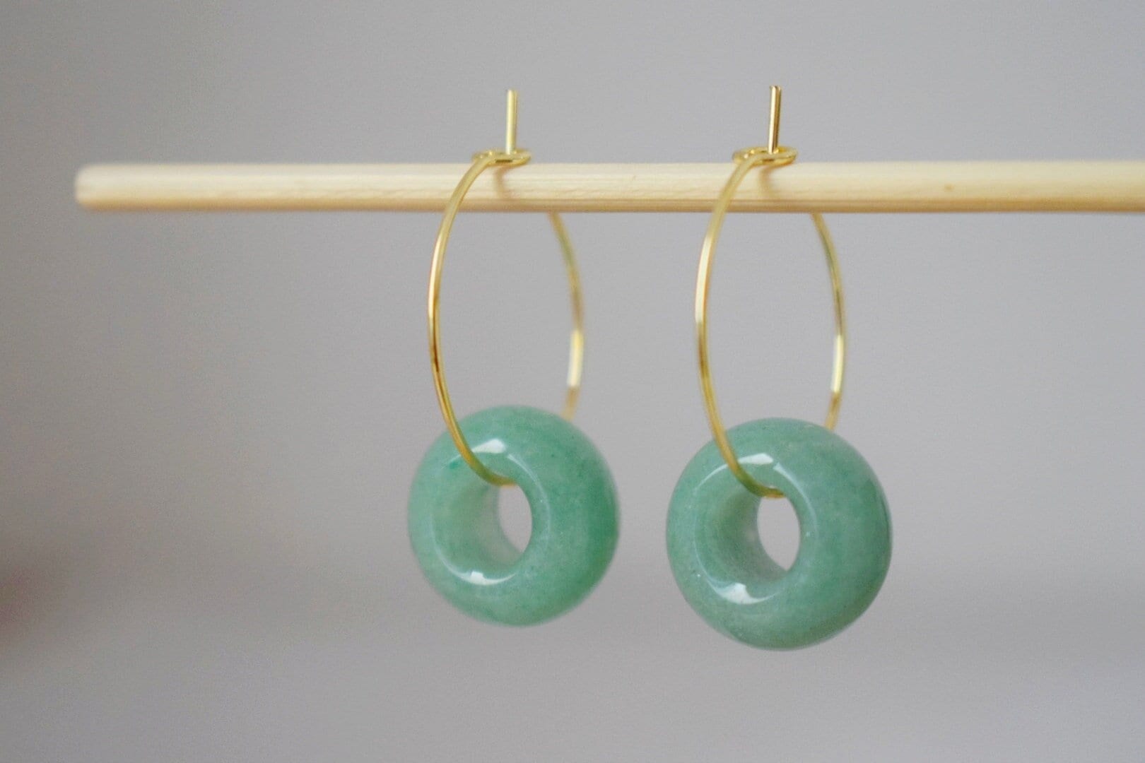 Aventurin Donut Creolen, 18 Karat vergoldete chirurgische Edelstahl Creolen, Edelstein Unisex SchmuckBestes Weihnachtsgeschenk