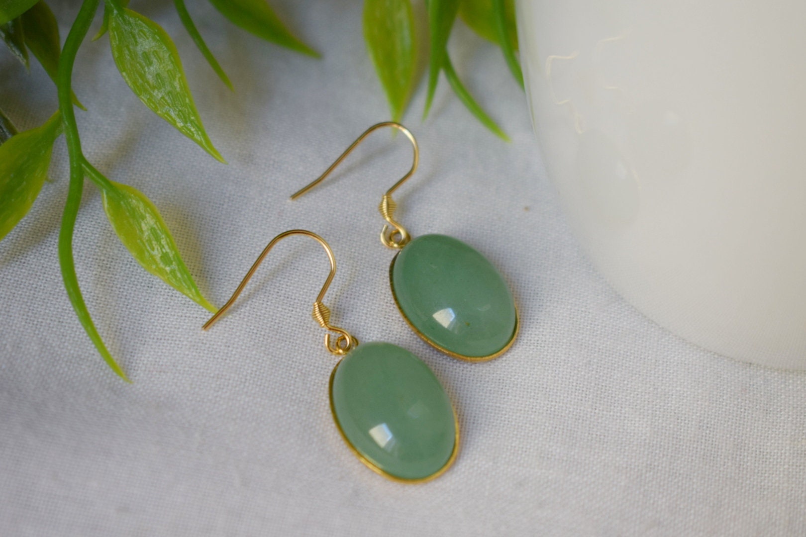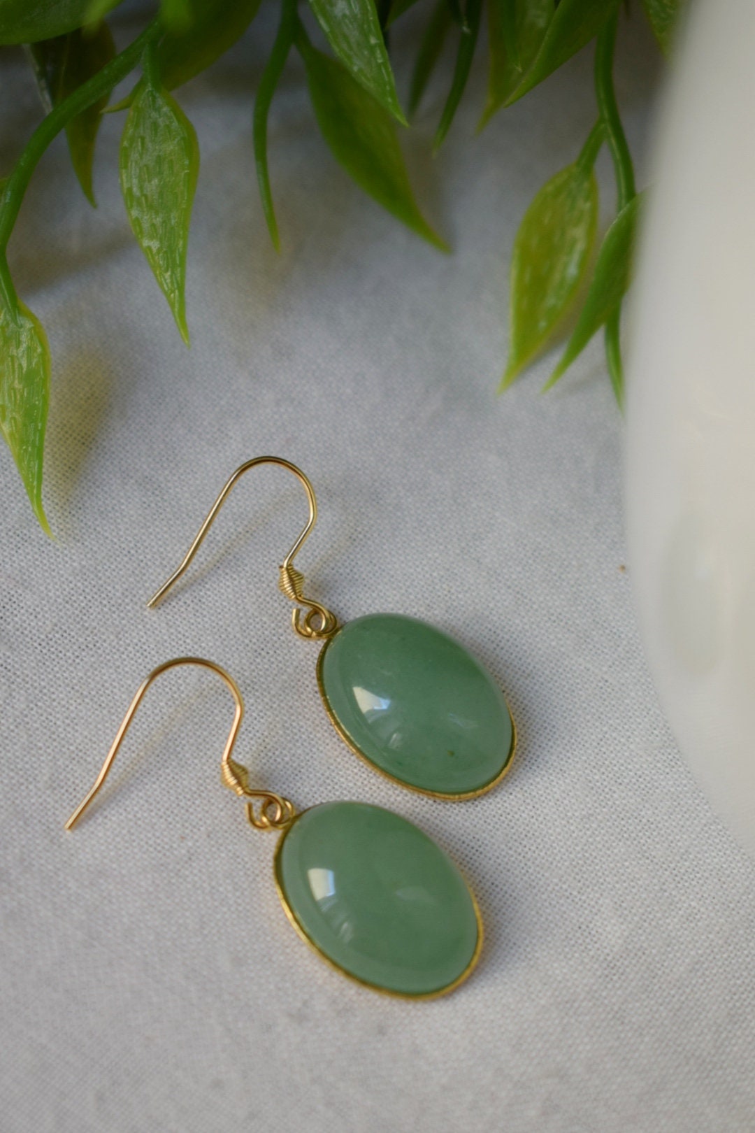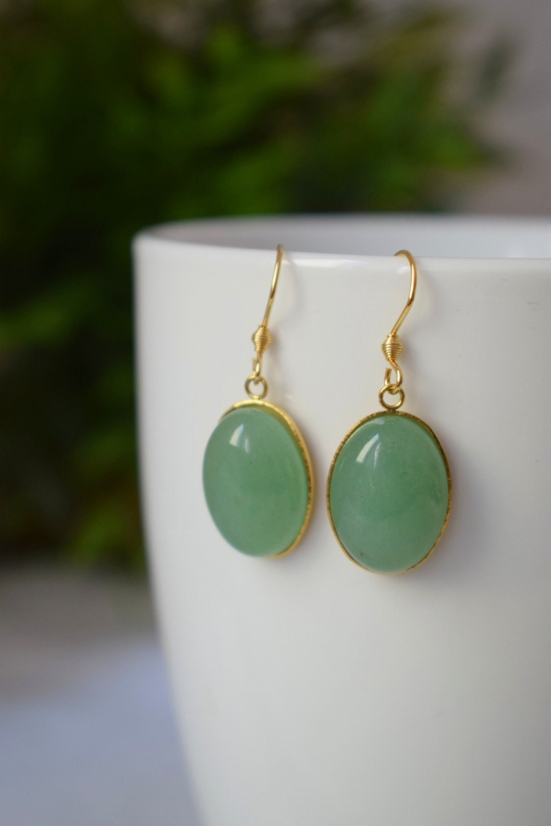 Aventurin Ohrringe baumeln gold oval für Frauen, Edelstein grüne Aventurin Ohrringe, Lange hängende Stein Ohrringe, Aventurin Schmuck, Geschenk