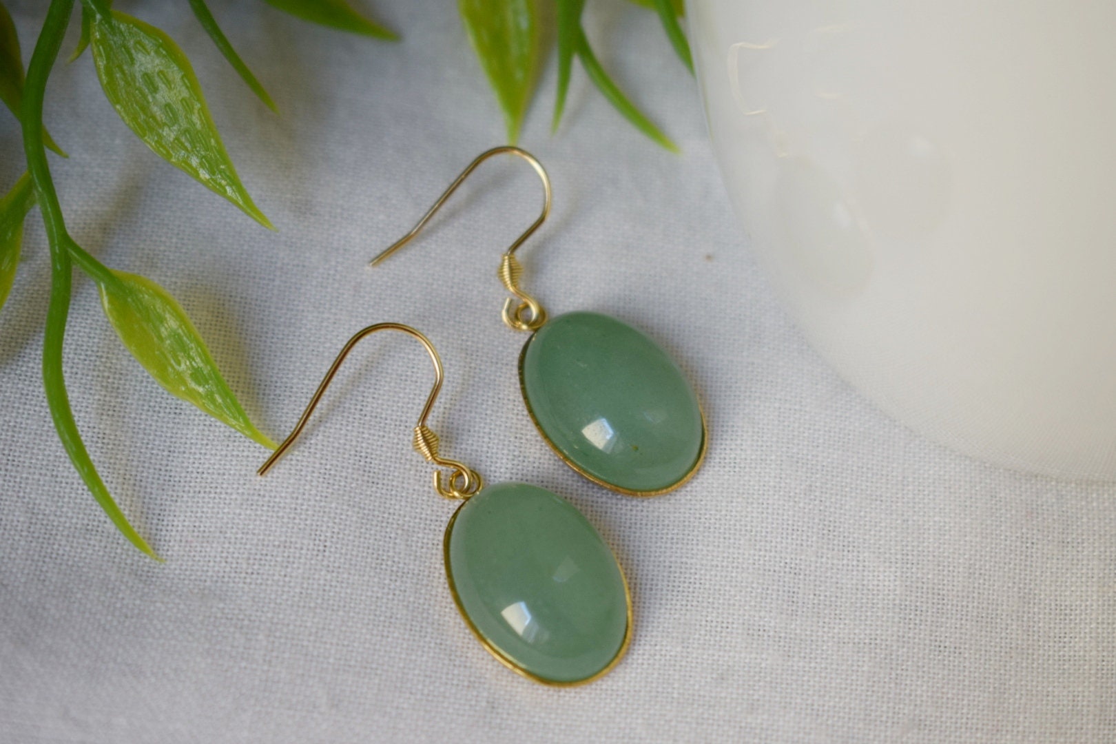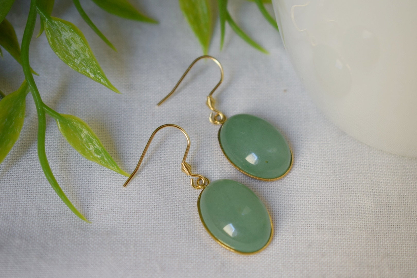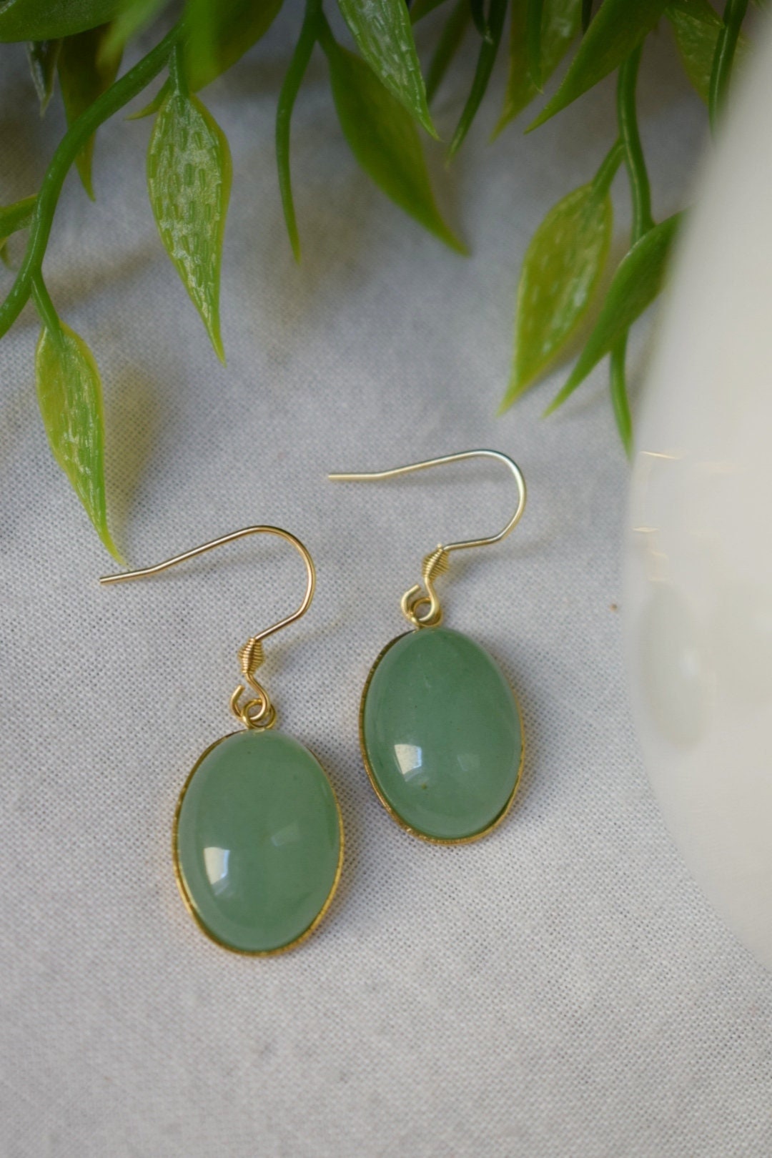Aventurin Ohrringe baumeln gold oval für Frauen, Edelstein grüne Aventurin Ohrringe, Lange hängende Stein Ohrringe, Aventurin Schmuck, Geschenk