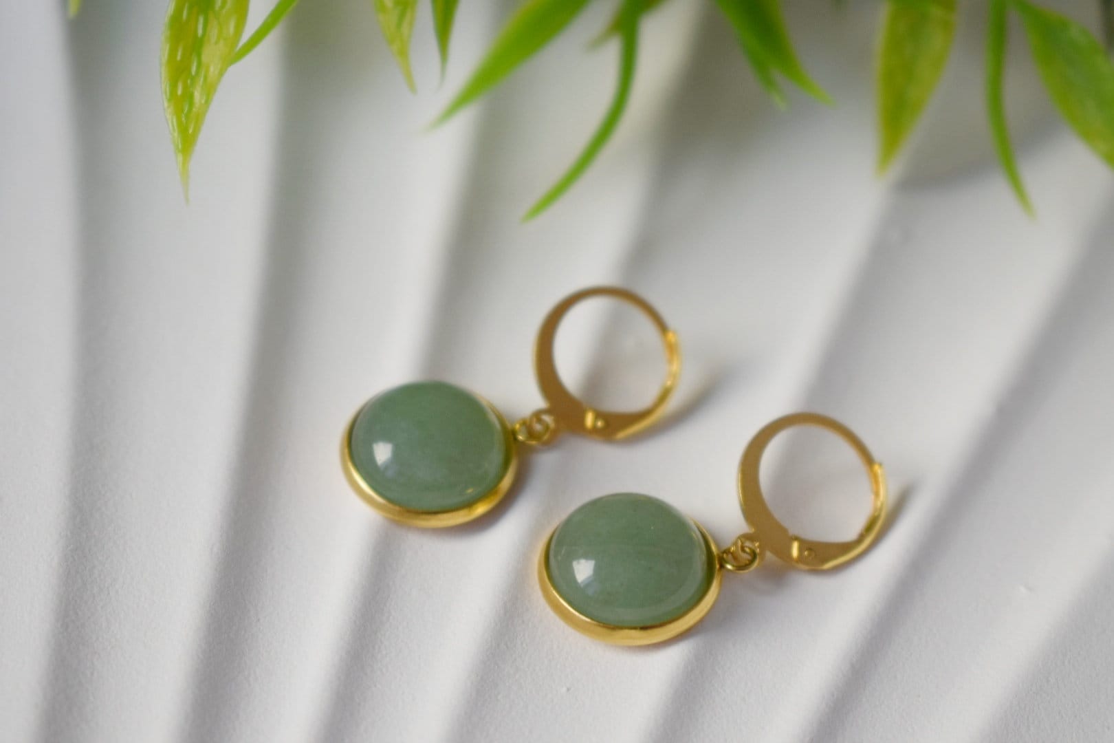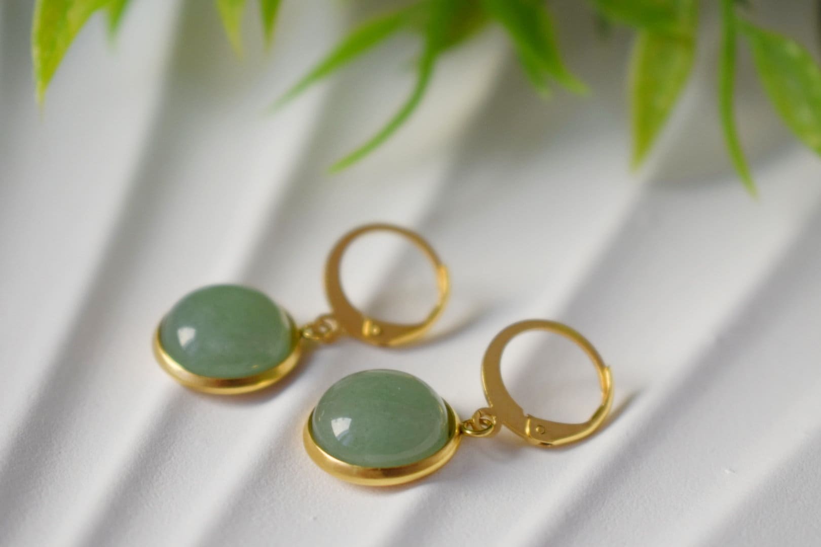 Aventurin Ohrringe baumeln, Grün, Gold, Edelstein, Lever Back Creolen mit Stein, Hängende Ohrringe, Aventurin Gold Schmuck, Geschenk für sie
