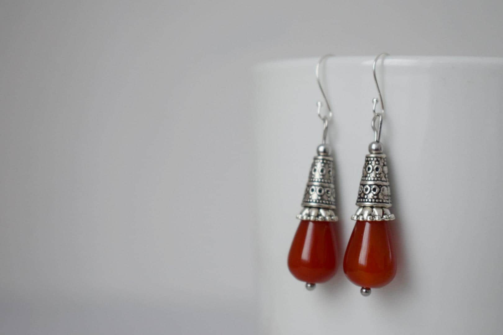 Karneol Tropfen Ohrringe, Boho Rote Edelstein Ohrringe, Vintage Ohrhänger und Tropfen Ohrringe, Sterling Silber Ohrhaken, Schmuck Geschenk Sie