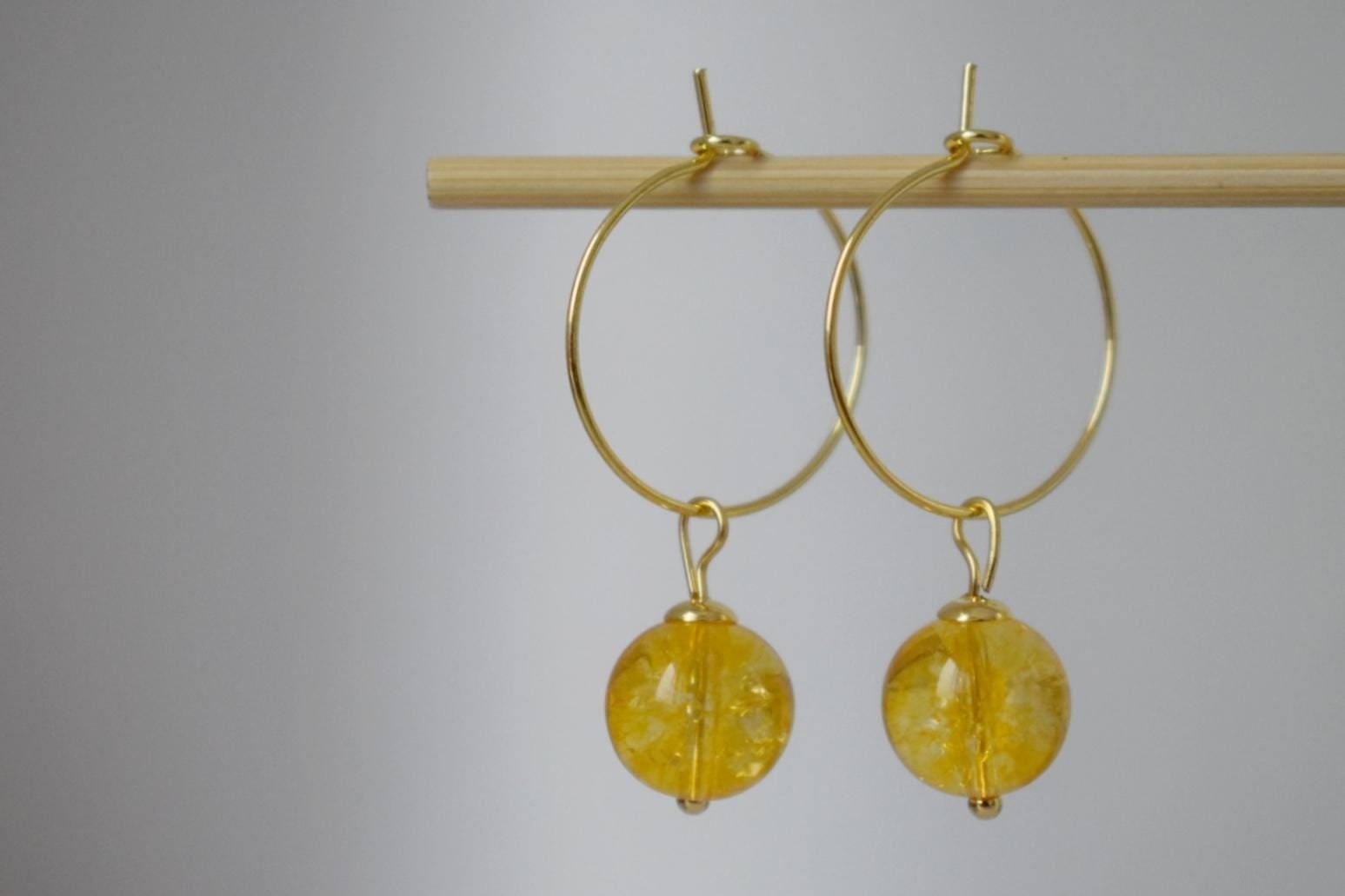 Artikeldetails Wunderschöne, schlichte und elegante, aber stilvolle Citrin-Creolen mit Edelsteinperlen