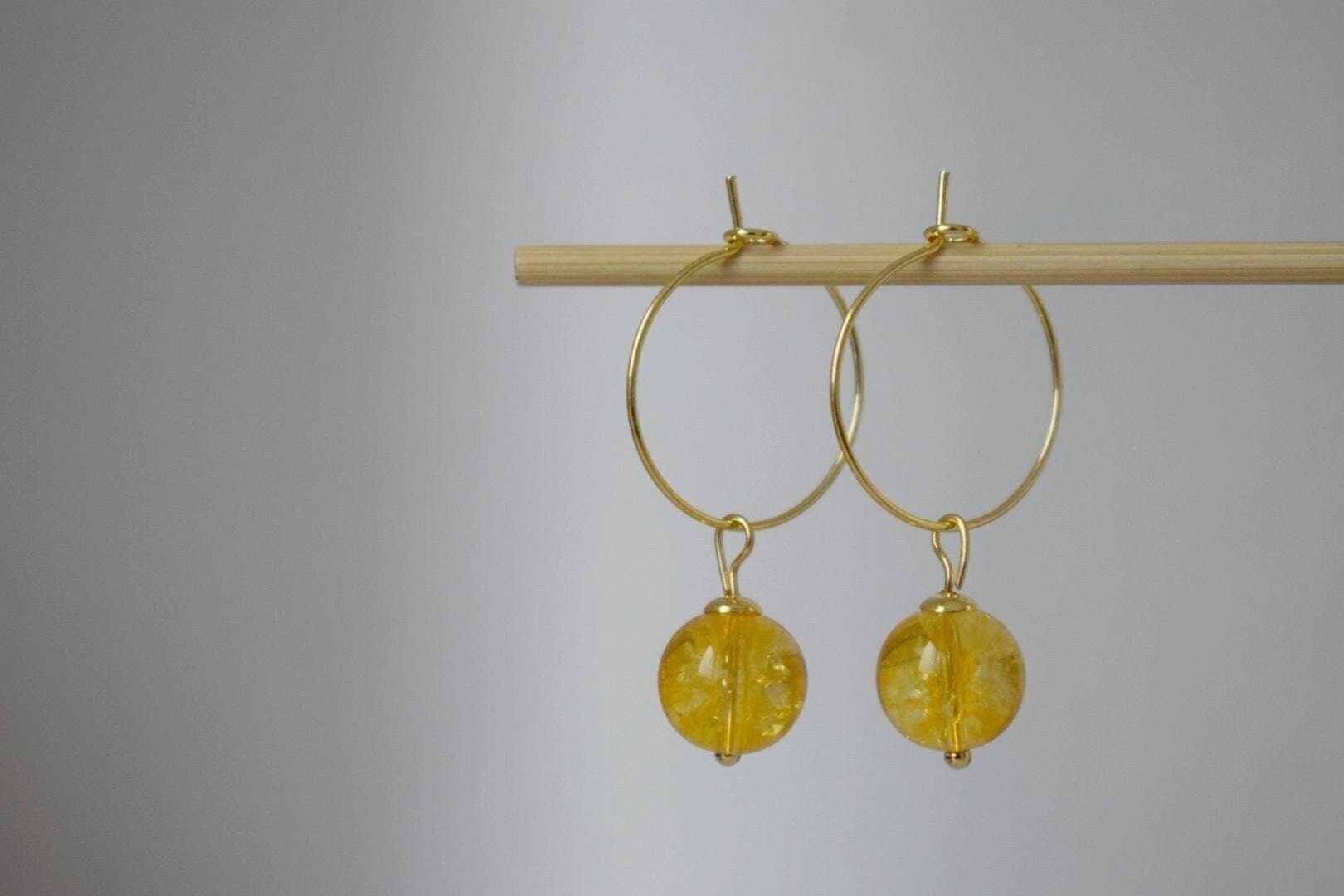 Creolen aus Citrinperlen, gelbe Edelsteinperle, 18 Karat vergoldeter chirurgischer Edelstahl, Geburtsstein für November, Schmuckgeschenk für Sie