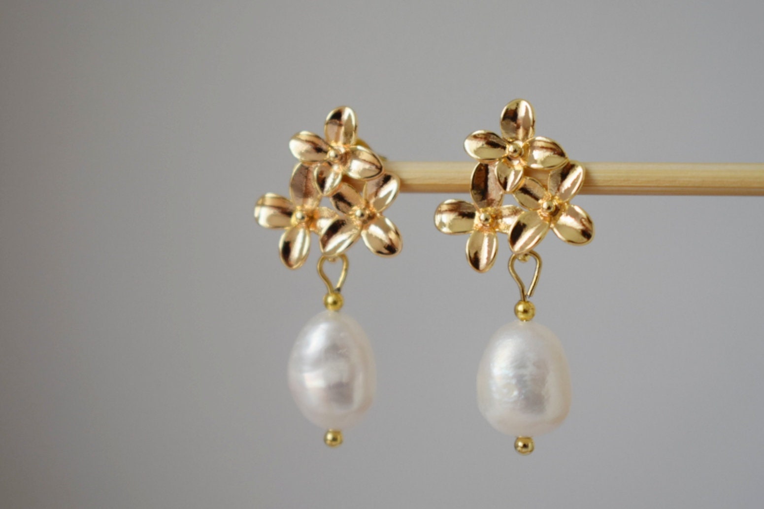 Elegante Süßwasserperlen Ohrringe, 18K vergoldete Blumen Ohrstecker, Vintage Stil Brautschmuck, Perfektes Brautjungfern Geschenk, Weihnachtsgeschenk Sie