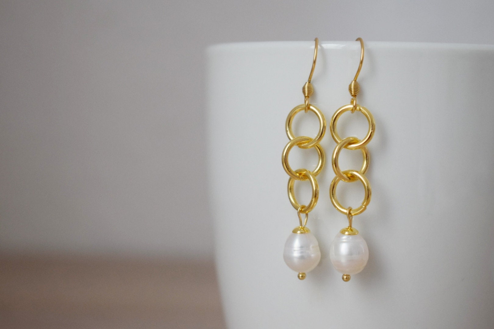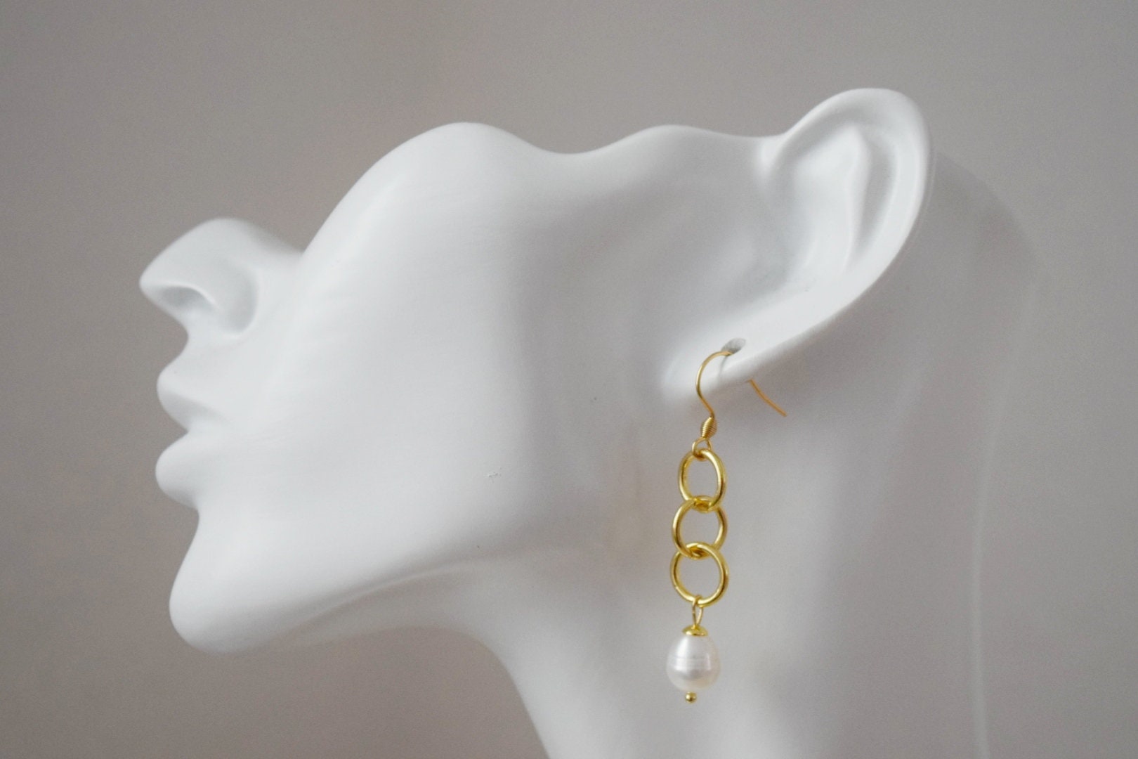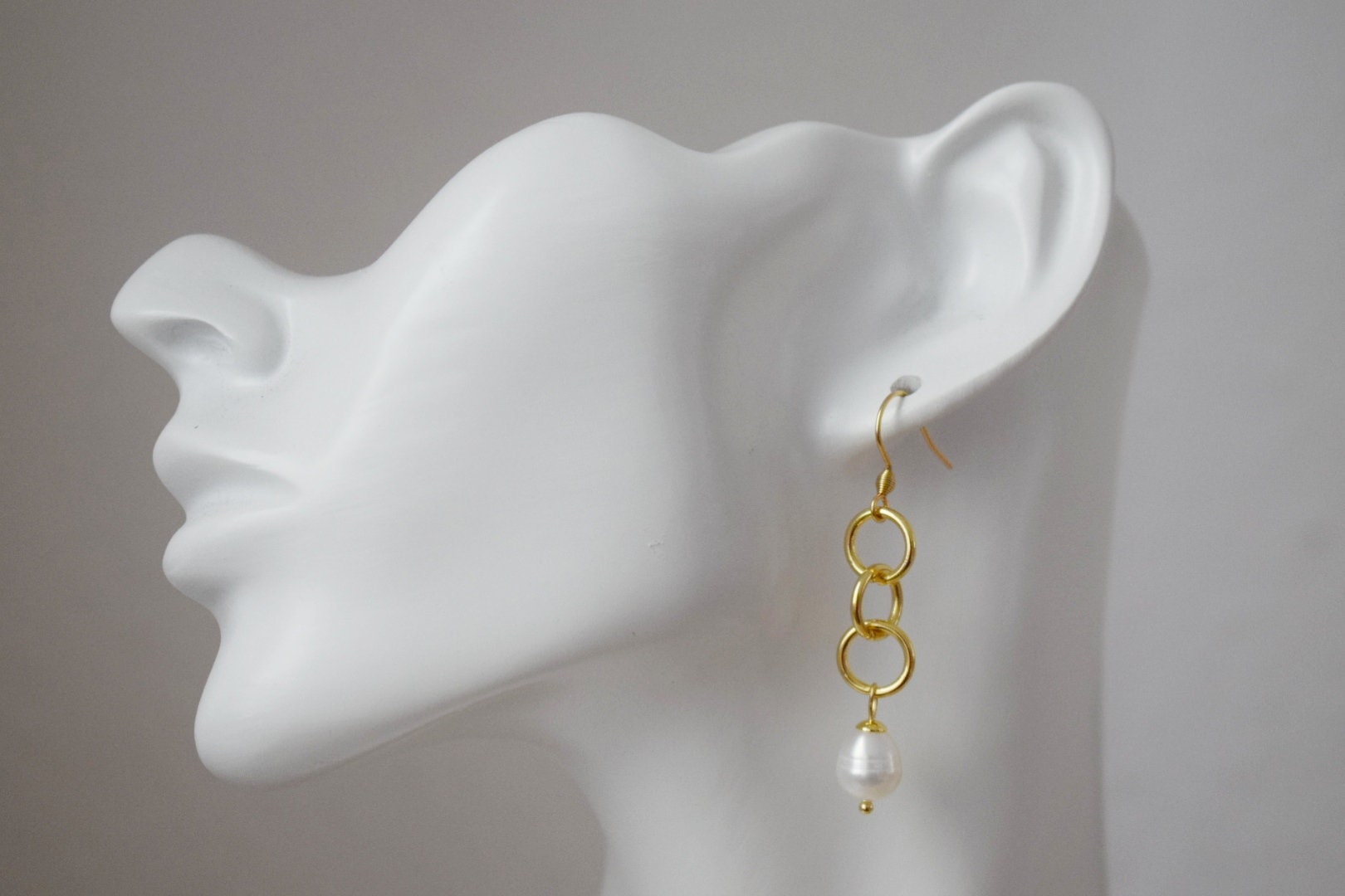 Lange moderne Ohrhänger mit Süßwasserperle, 24 Karat vergoldeter Edelstahlschmuck