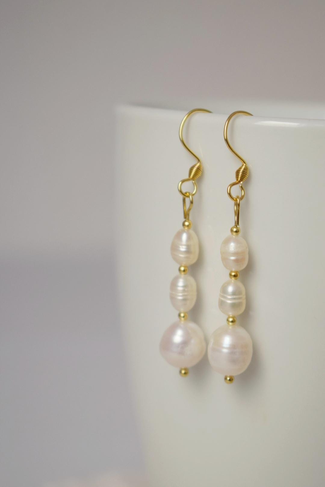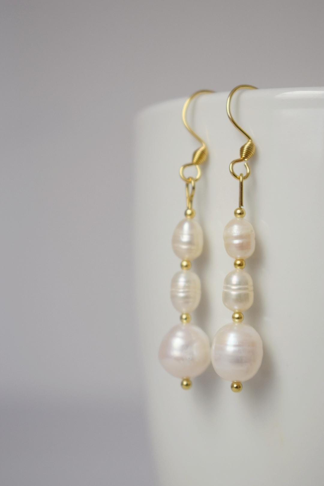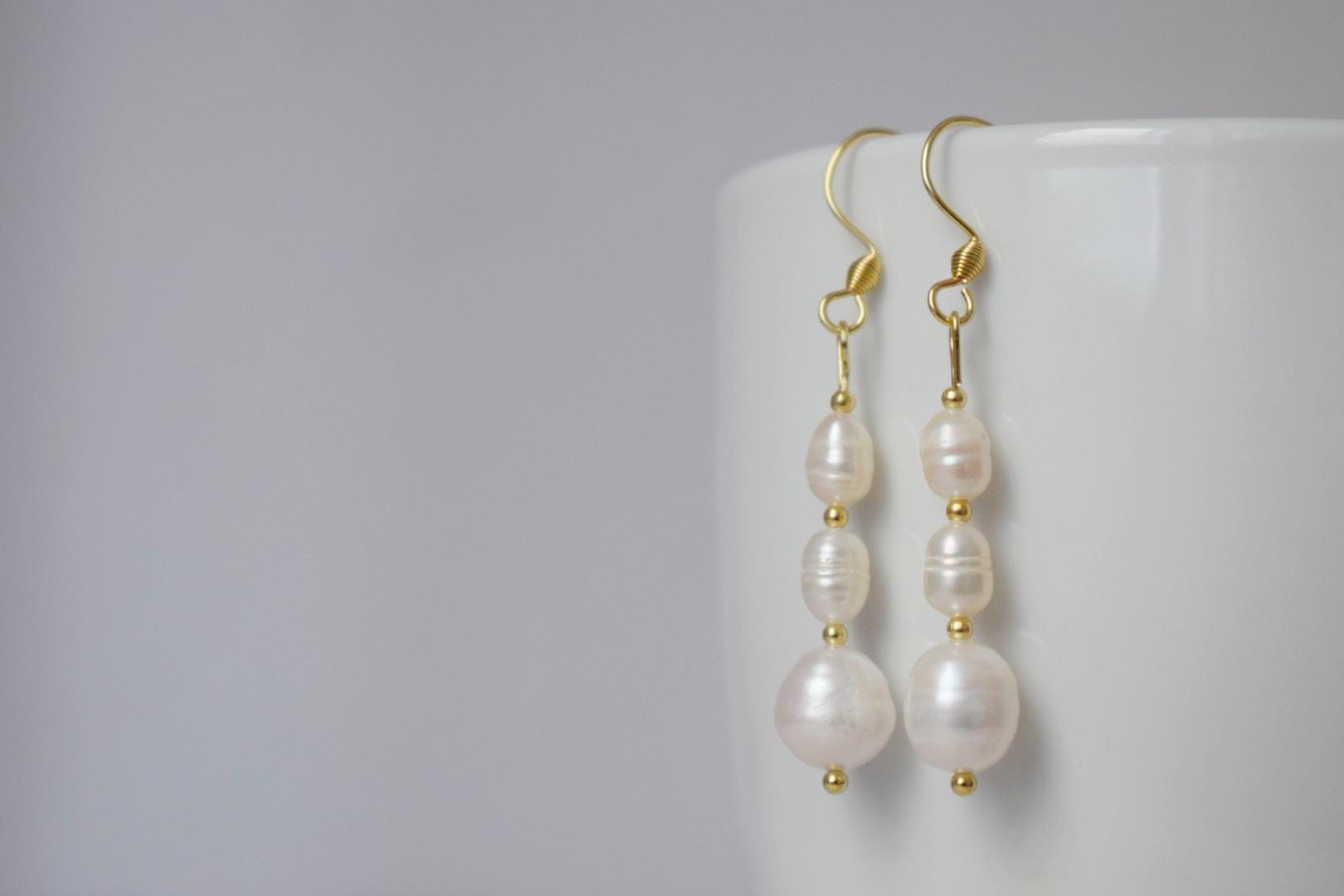 Süßwasserperlen Ohrringe, Statement Ohrhänger, 18k vergoldete Edelstahlhaken, Hochzeitsschmuck, Jahrestagsgeschenk für Sie