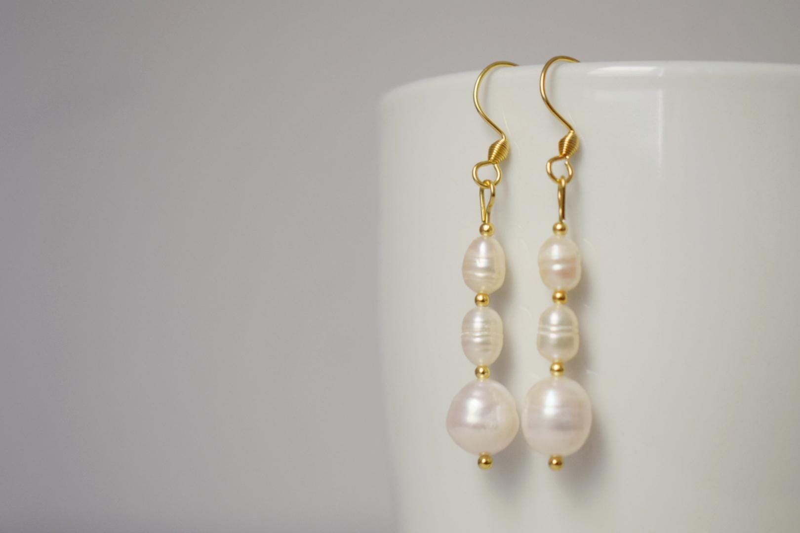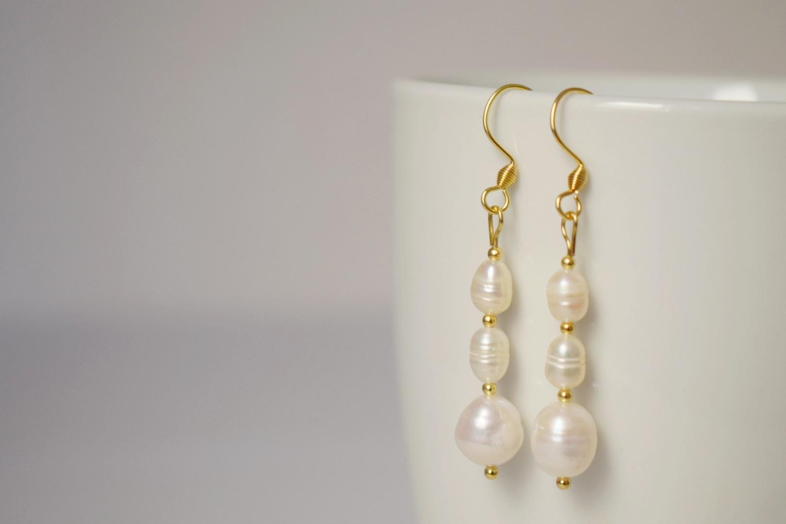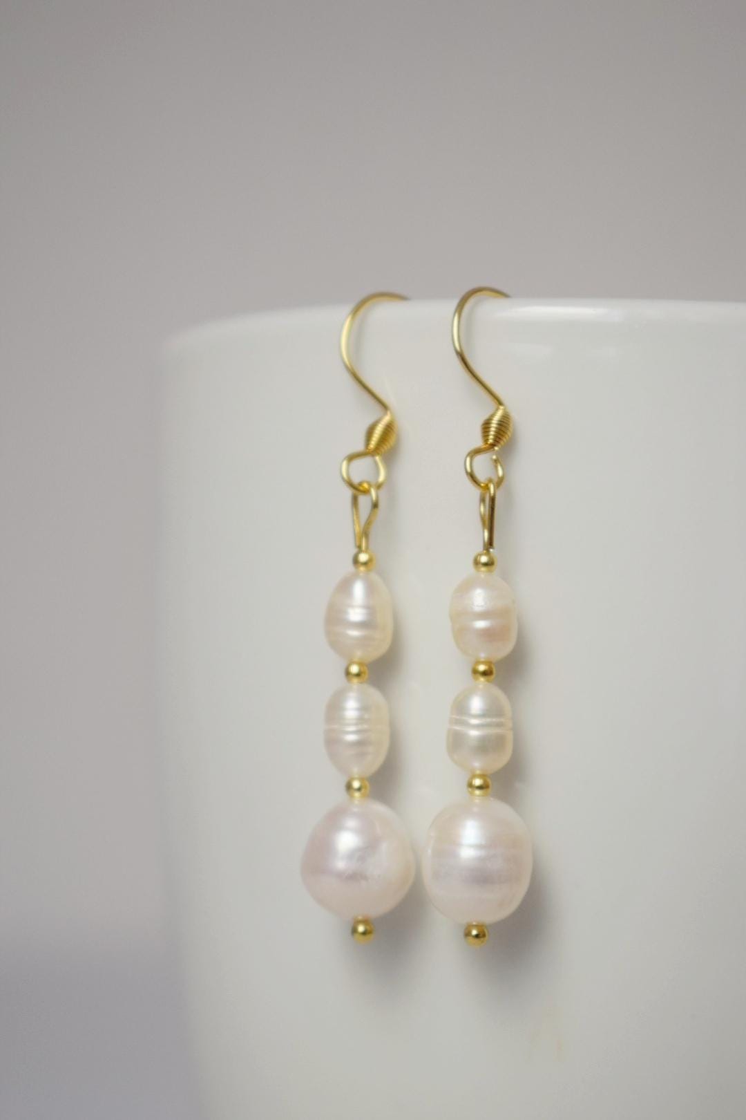 Süßwasserperlen Ohrringe, Statement Ohrhänger, 18k vergoldete Edelstahlhaken, Hochzeitsschmuck, Jahrestagsgeschenk für Sie