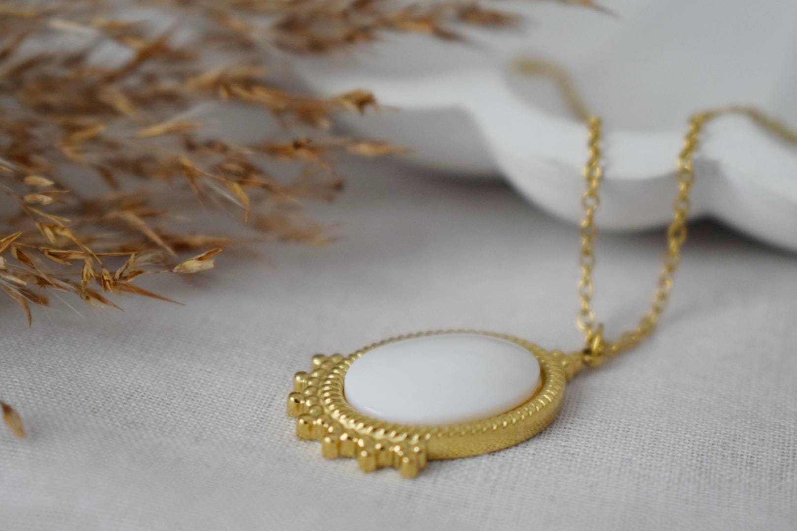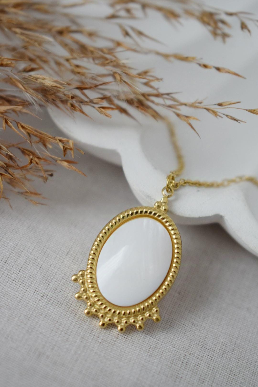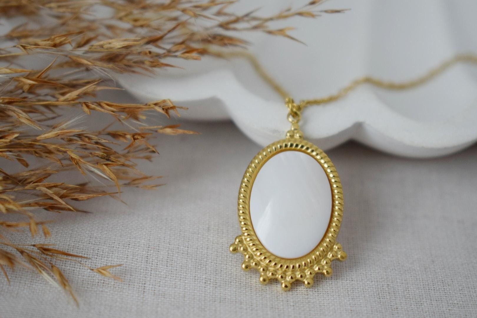 Süßwasserperlenkette, Ovaler Muschelanhänger, viktorianische Halskette für Frauen, Einzigartige Statement Halskette, Schmuckgeschenk für Sie