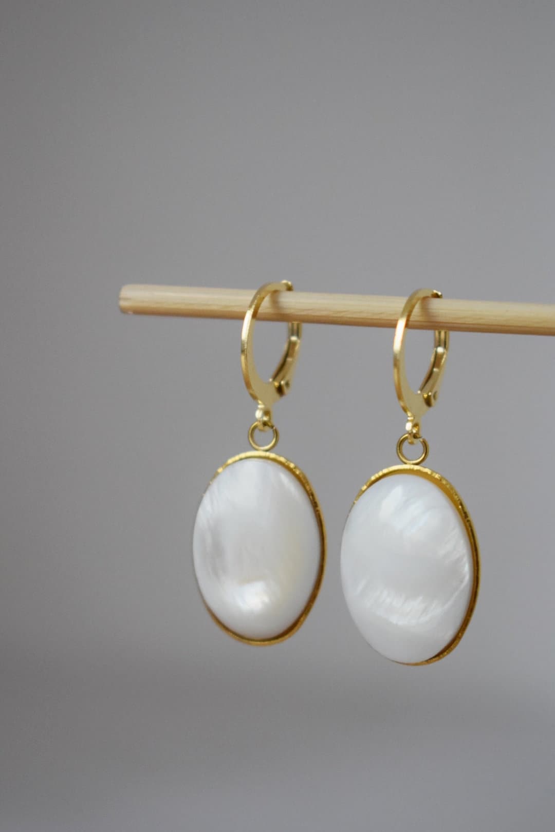 Süßwassermuschel-Huggie-Ohrringe, Elegante Ohrhänger, Handgefertigtes Schmuckgeschenk für sie, Bestes Muttertagsgeschenk