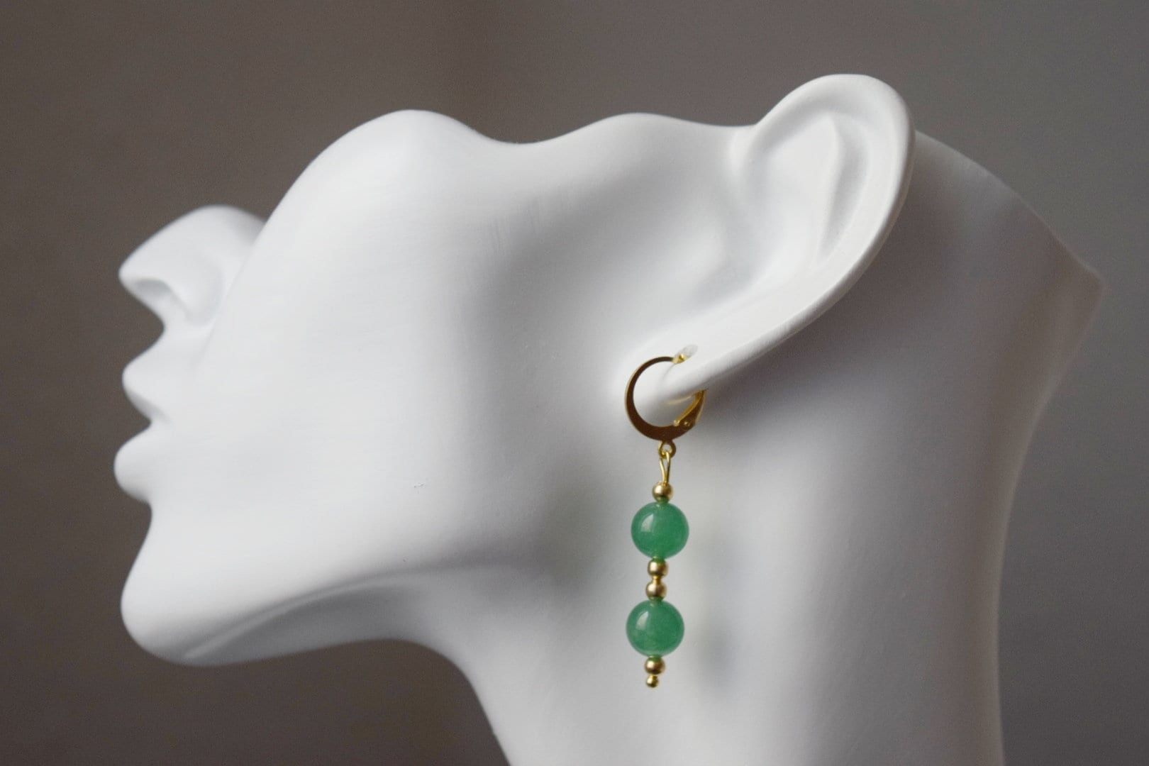 Grüne Aventurinohren, Grüne Huggies, Edelstein-Goldohren, Grüne Perlenohren, Hängende Steinohren, Aventurinschmuck