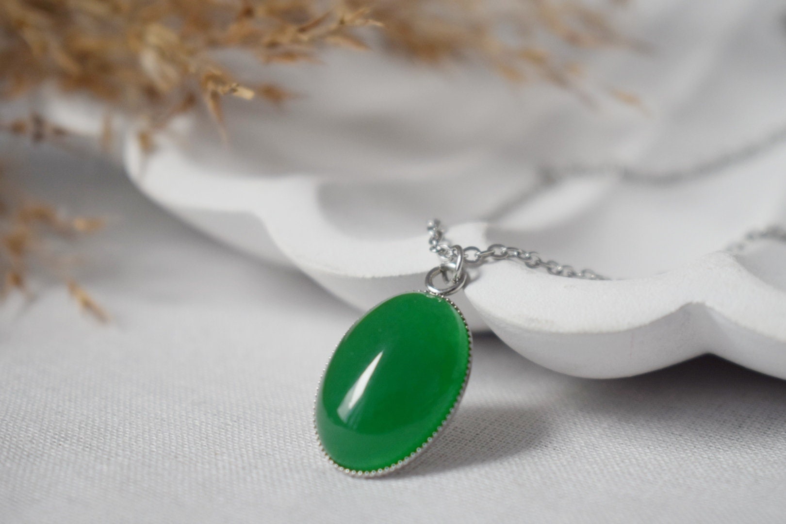 Grüne Jade Anhänger Halskette Silber für Frauen, Oval, Grüne Halskette, Grüne Edelstein Halskette, Jade Anhänger, Handgefertigtes Schmuckgeschenk für Sie