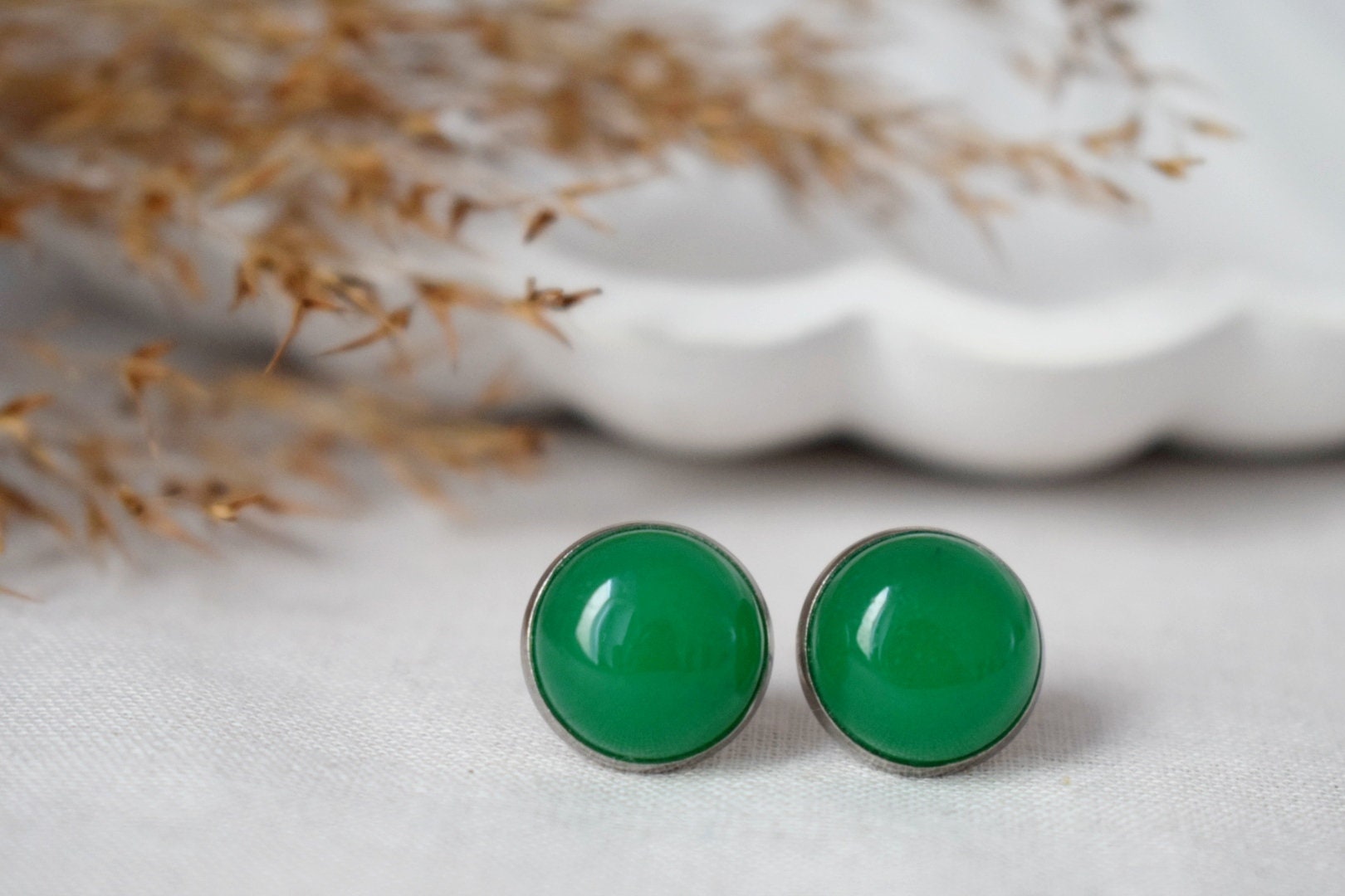 Grüne Jade Ohrstecker, 12mm Runde Edelstein Ohrstecker, Edelstahl Push Beck Ohrringe, Schmuck Geschenk, Muttertagsgeschenk