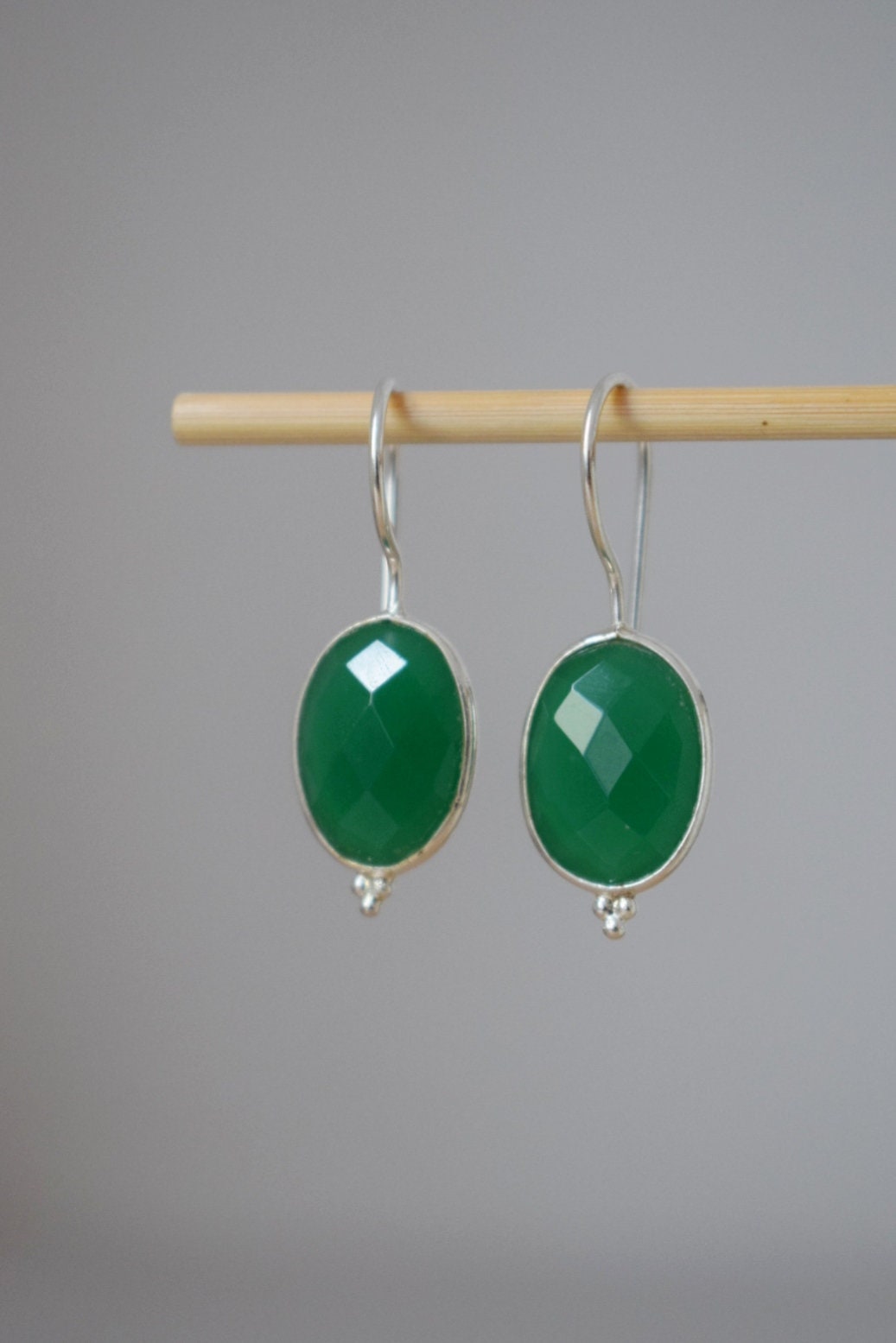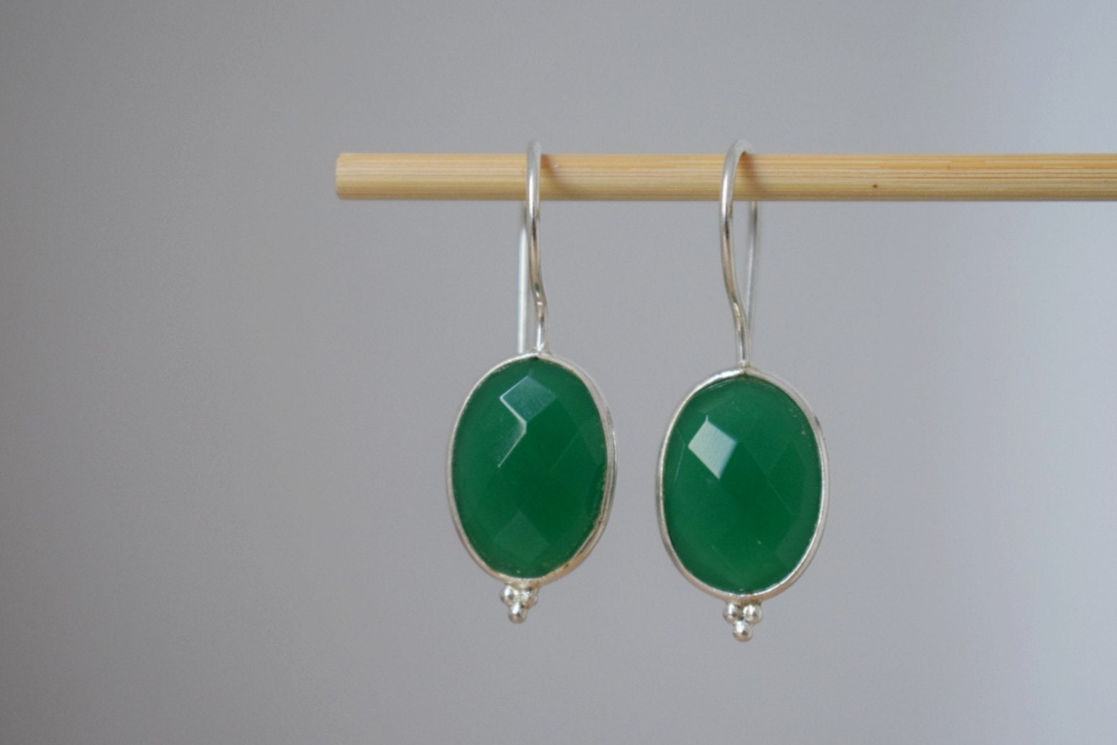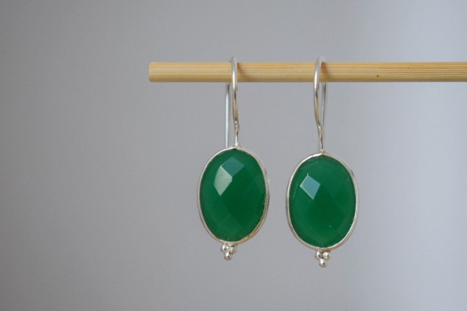 Grüne Onyx Ohrringe, 925 Sterling Silber Edelstein Ohrringe, Oval facettiert Naturstein, Einzigartiger Boho Schmuck, Bestes Weihnachtsgeschenk