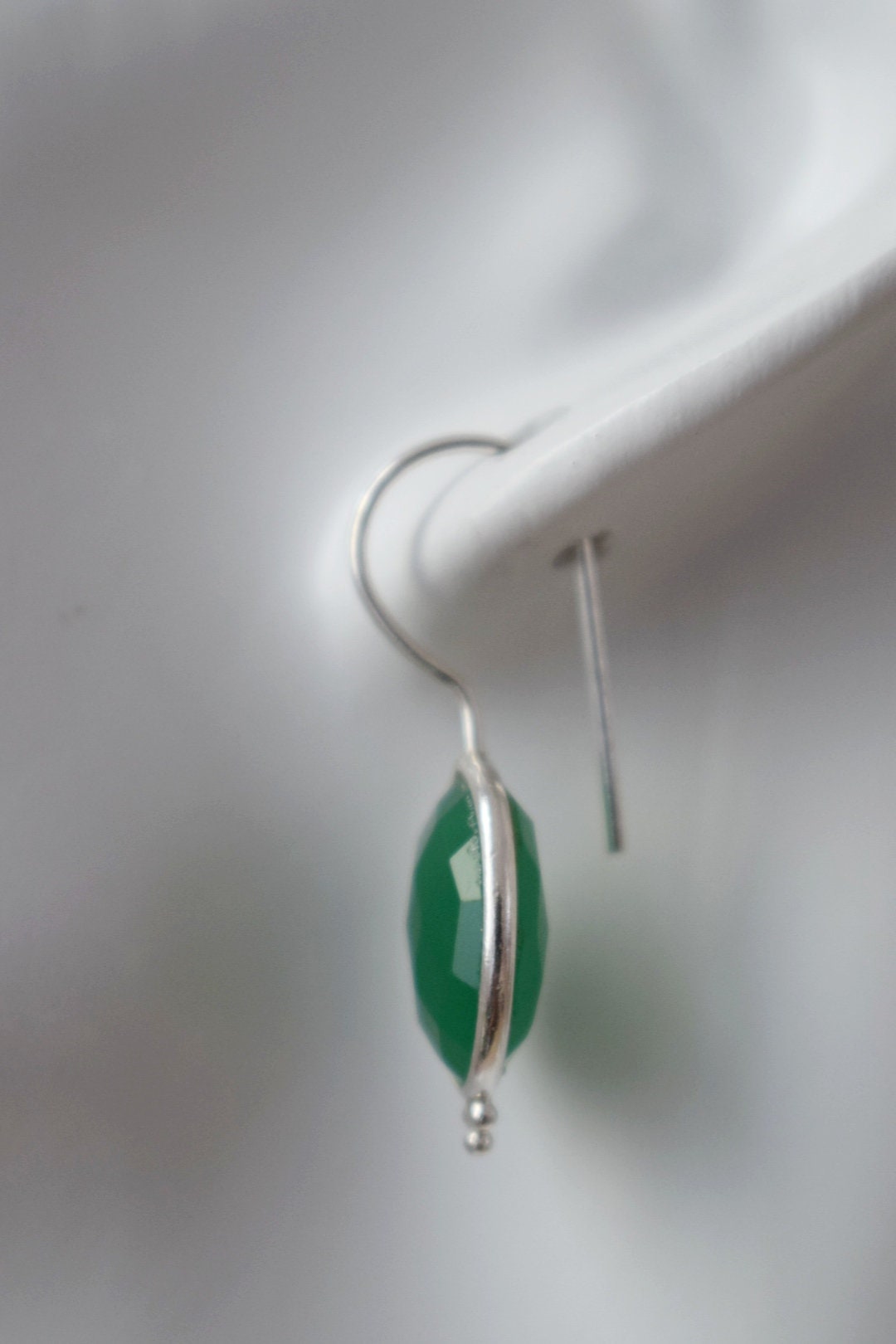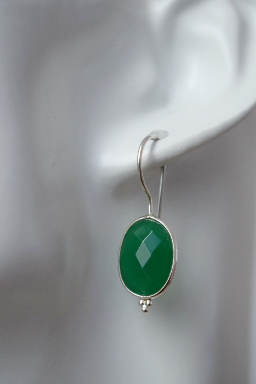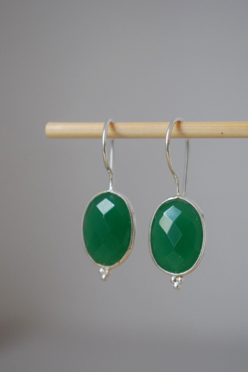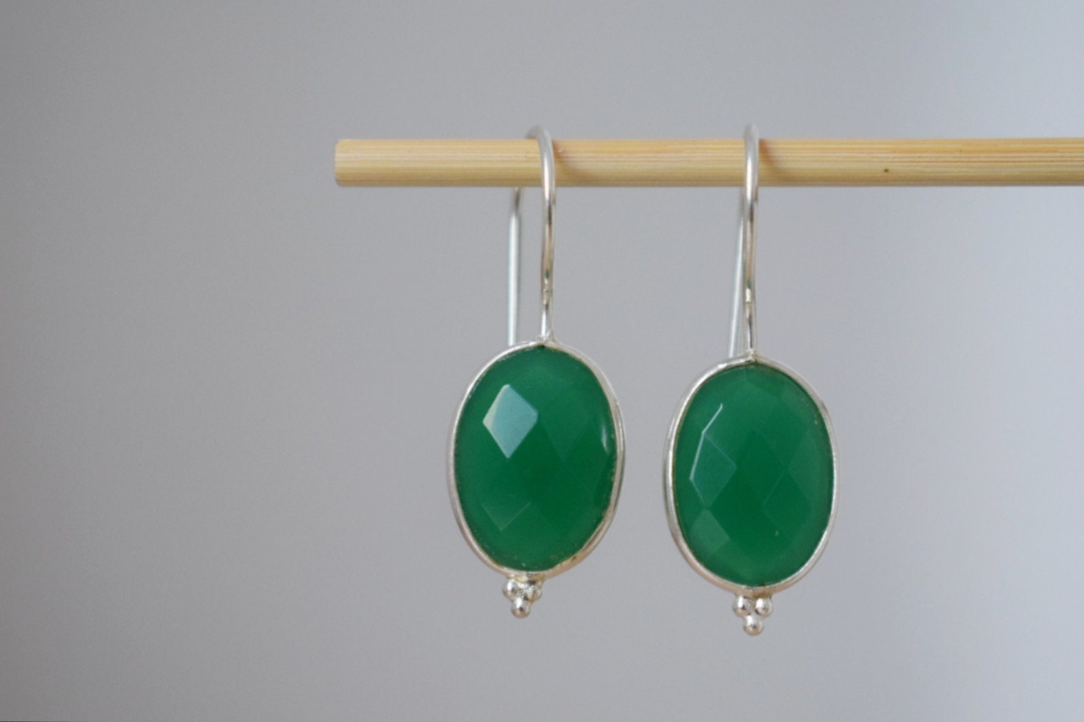 Grüne Onyx Ohrringe, 925 Sterling Silber Edelstein Ohrringe, Oval facettiert Naturstein, Einzigartiger Boho Schmuck, Bestes Weihnachtsgeschenk