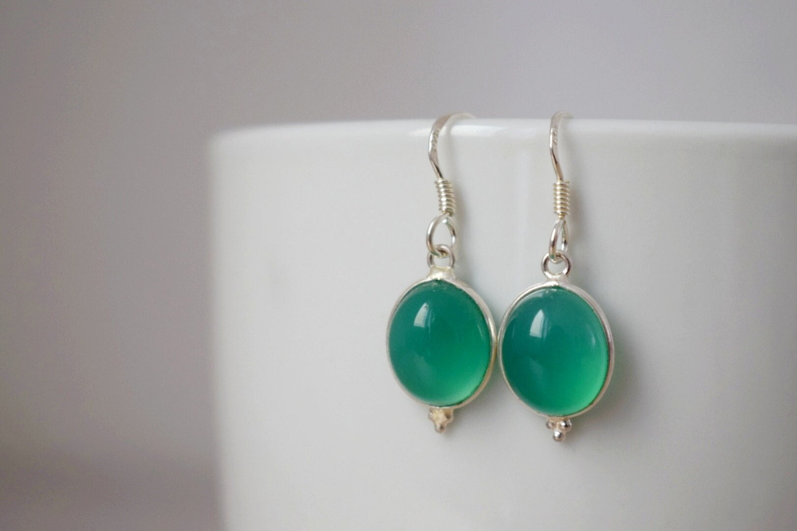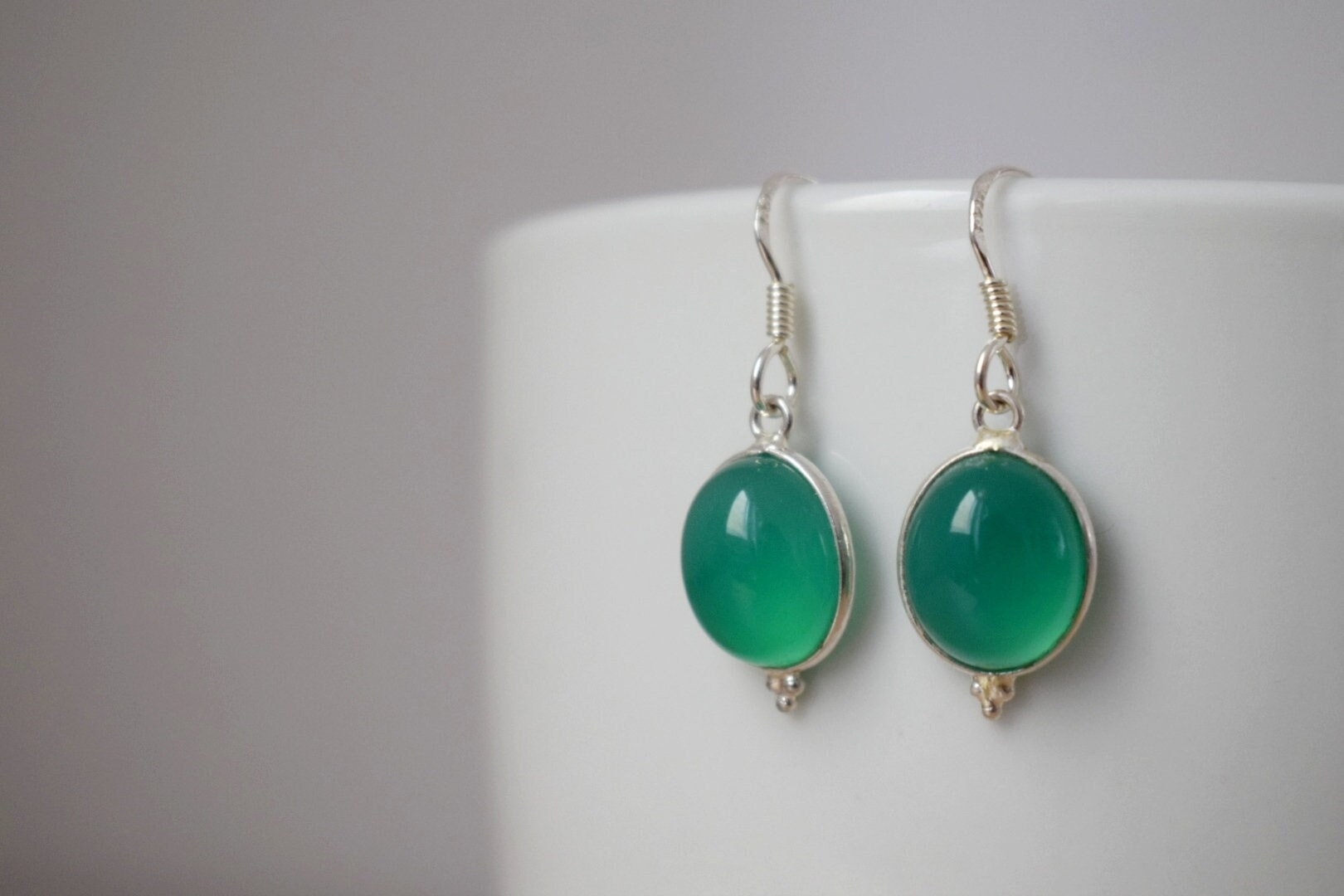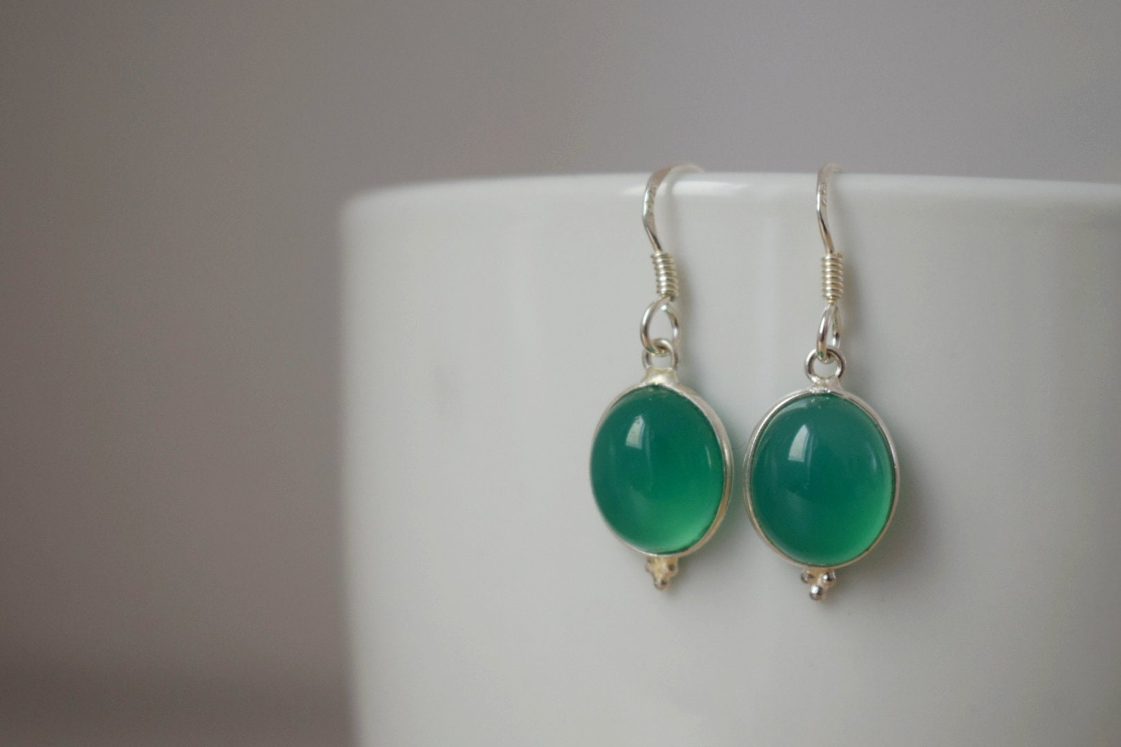 Grüne Onyx Ohrringe, 925 Sterling Silber, Ovale Edelstein Ohrringe, Naturstein, Einzigartiger Silberschmuck, Bestes Valentinstagsgeschenk für sie