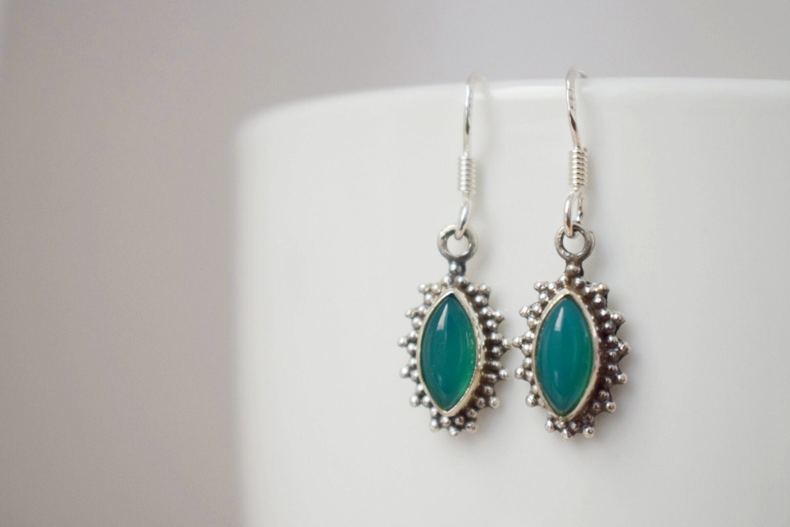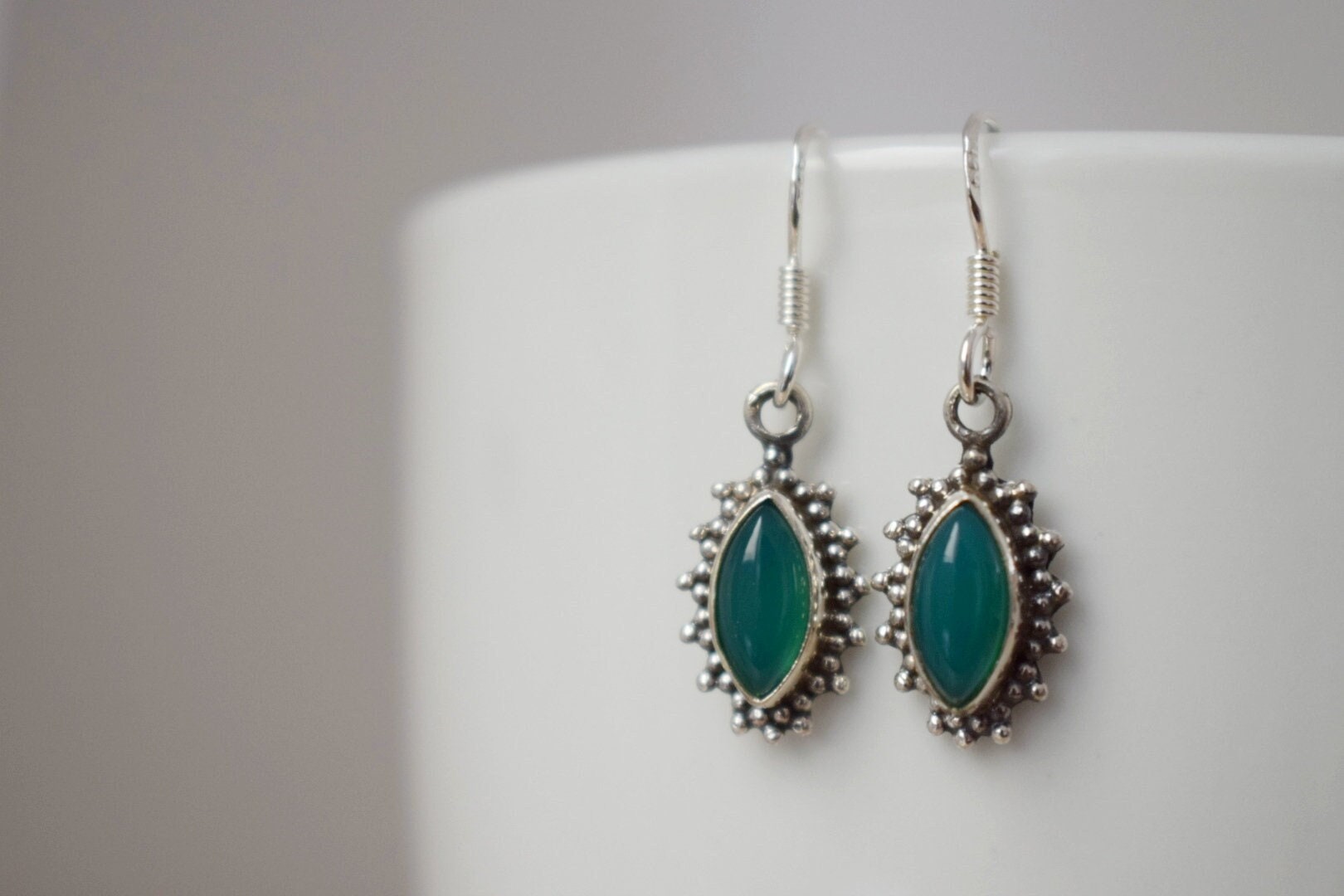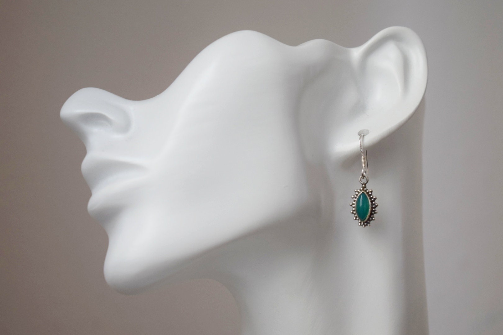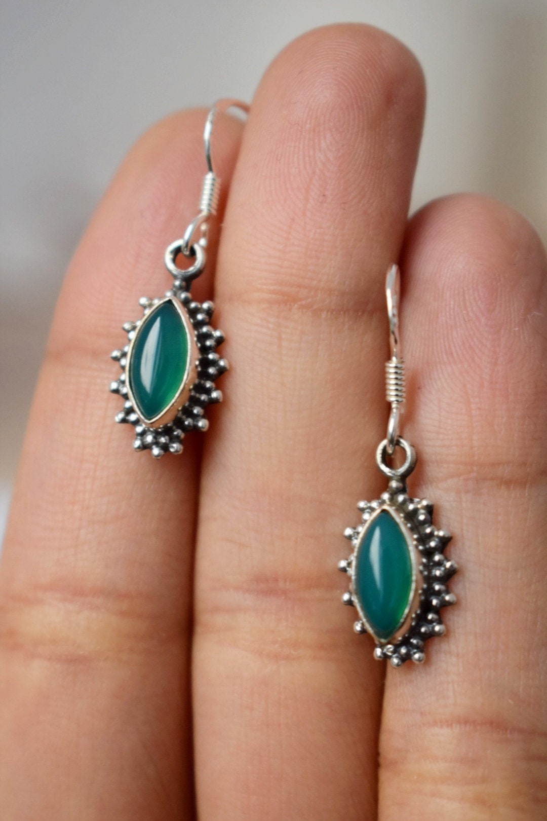 Grüne Onyx Ohrringe aus Sterling Silber, handgefertigte Edelstein Ohrringe, Boho Ohrringe, zarte natürliche grüne Onyx Ohrringe, Geschenk Schmuck