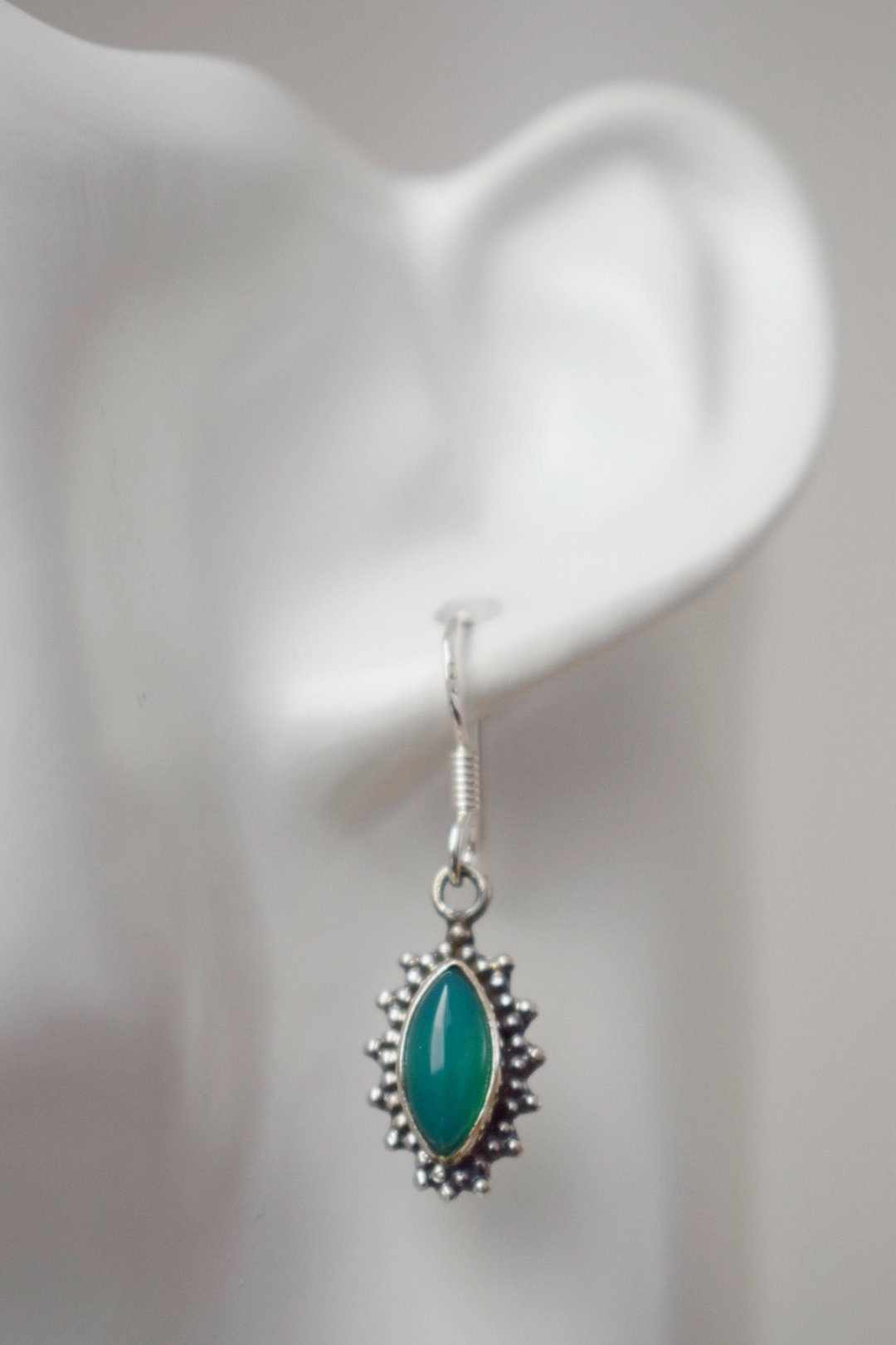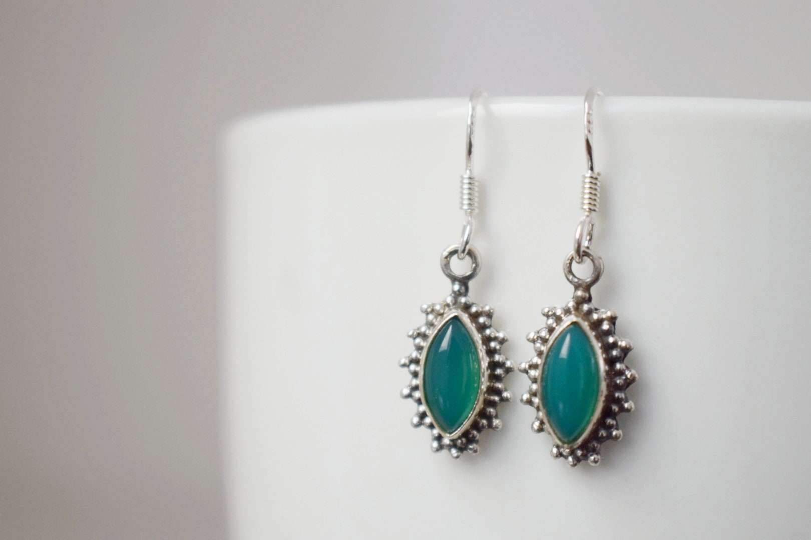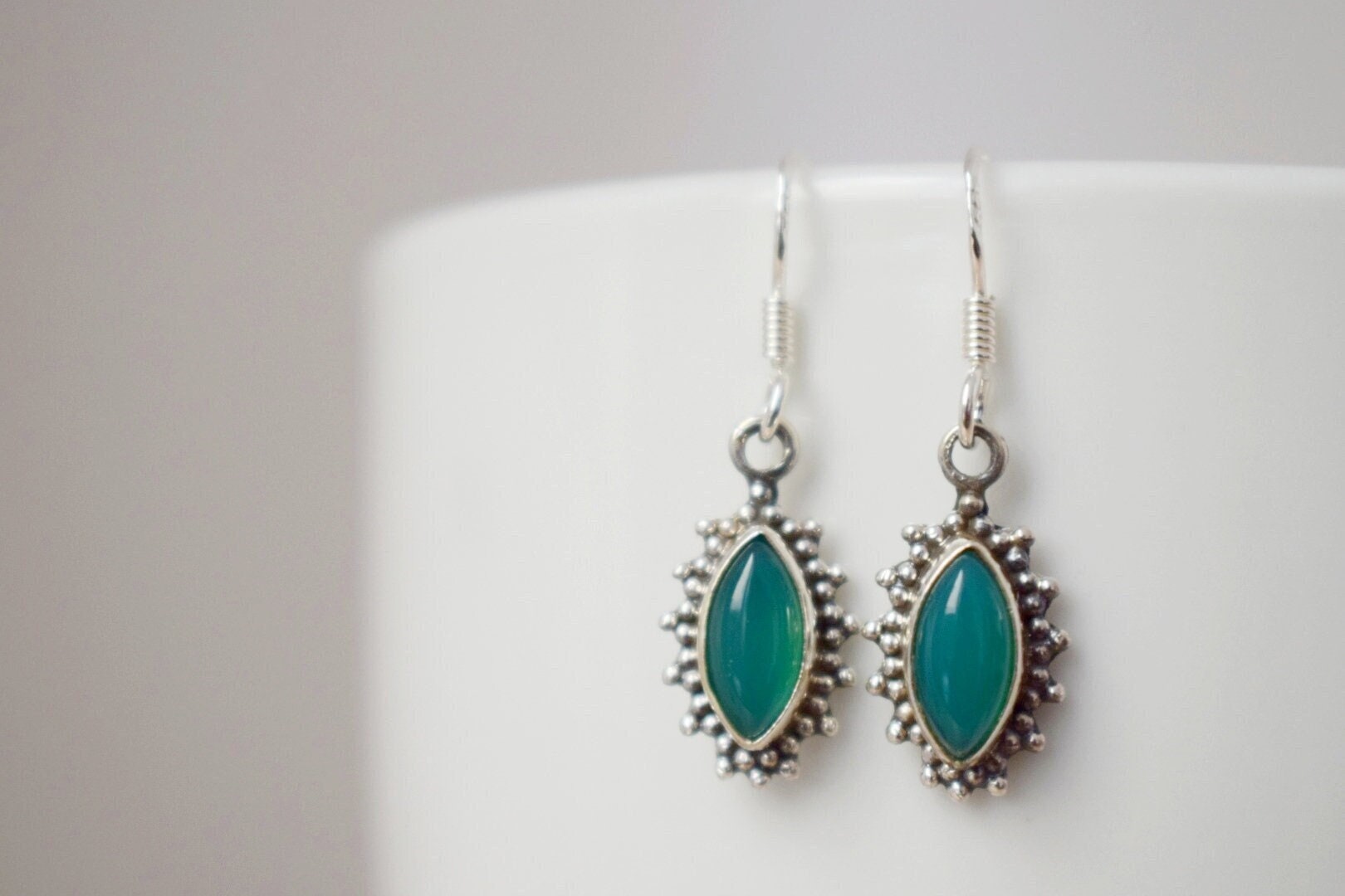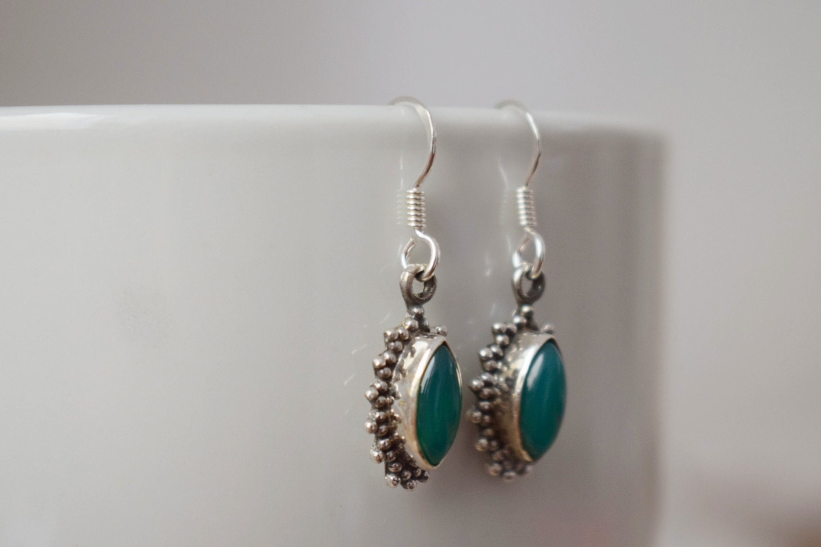 Grüne Onyx Ohrringe aus Sterling Silber, handgefertigte Edelstein Ohrringe, Boho Ohrringe, zarte natürliche grüne Onyx Ohrringe, Geschenk Schmuck