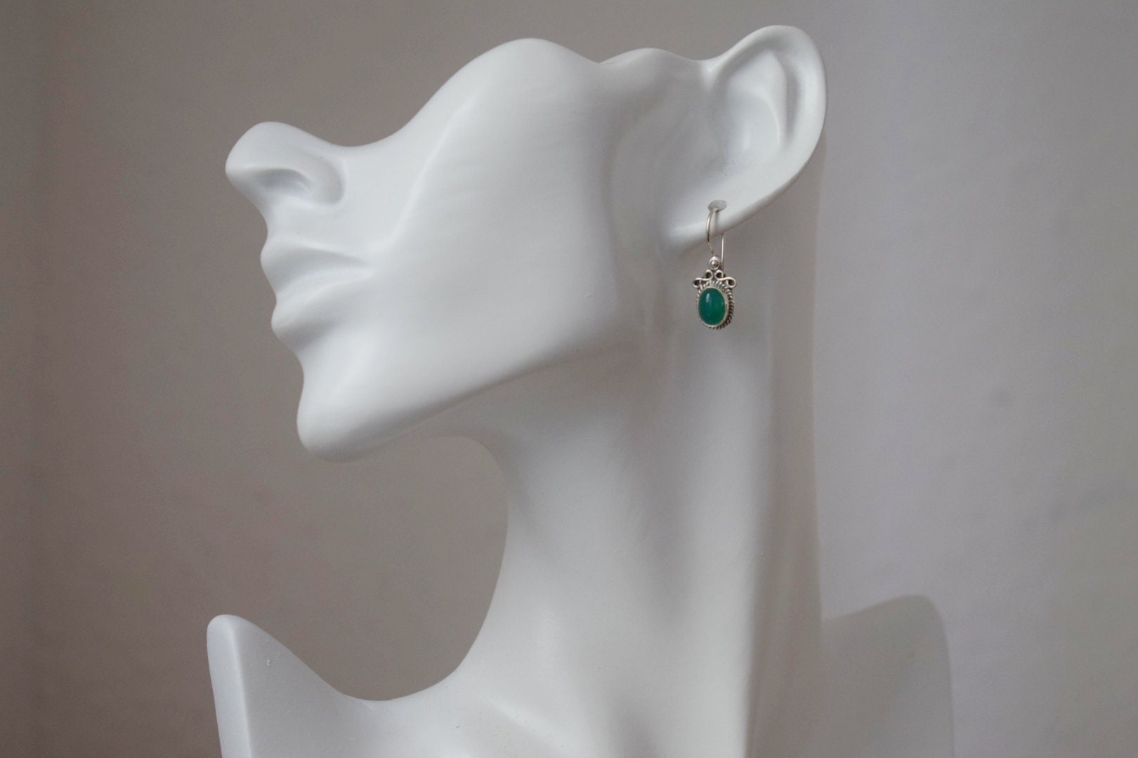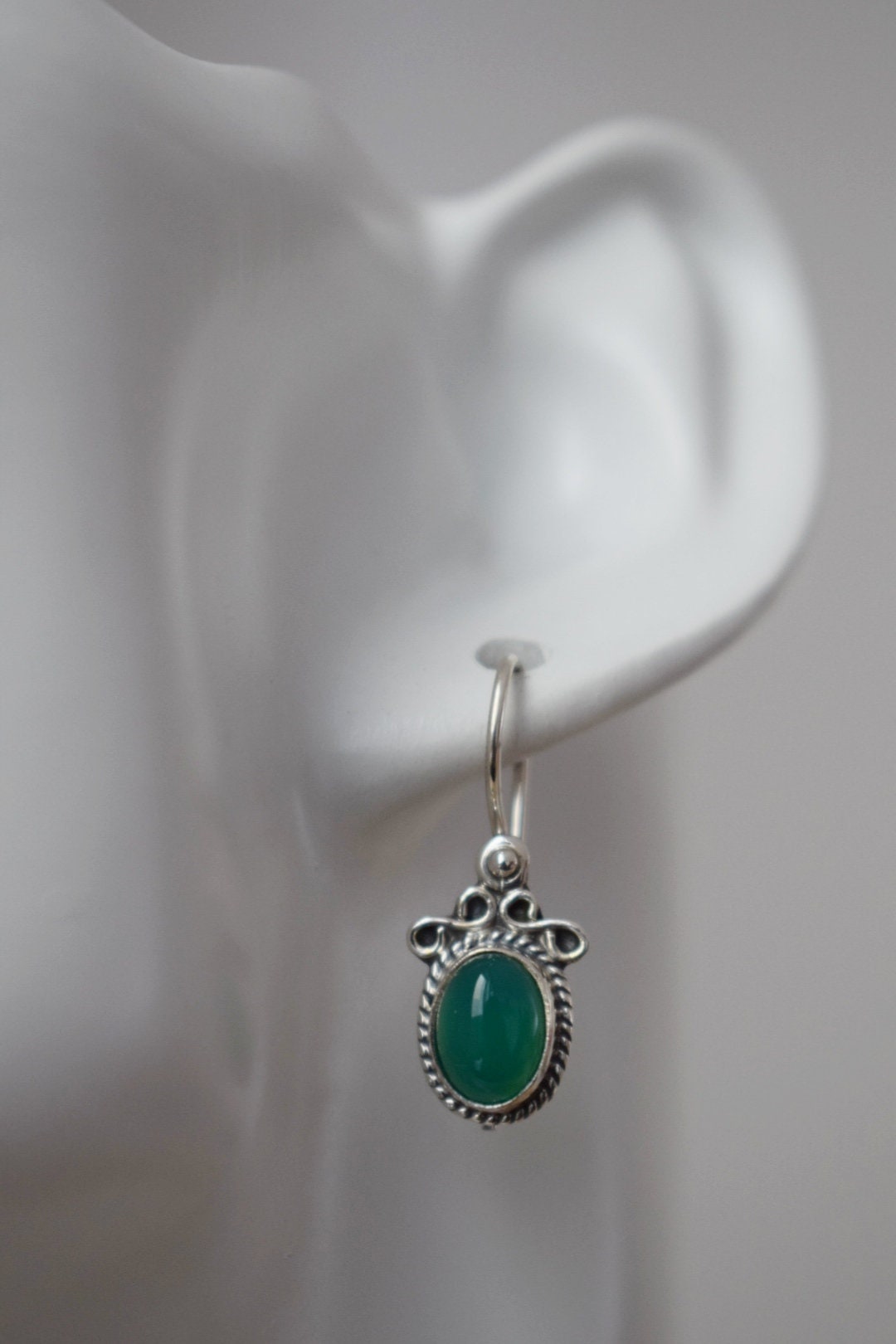 Grüne Onyx Ohrringe Sterling Silber, Boho Edelstein Ohrringe, Leichte Ornament Ohrringe, Einzigartiger Naturstein Schmuck, Muttertagsgeschenk