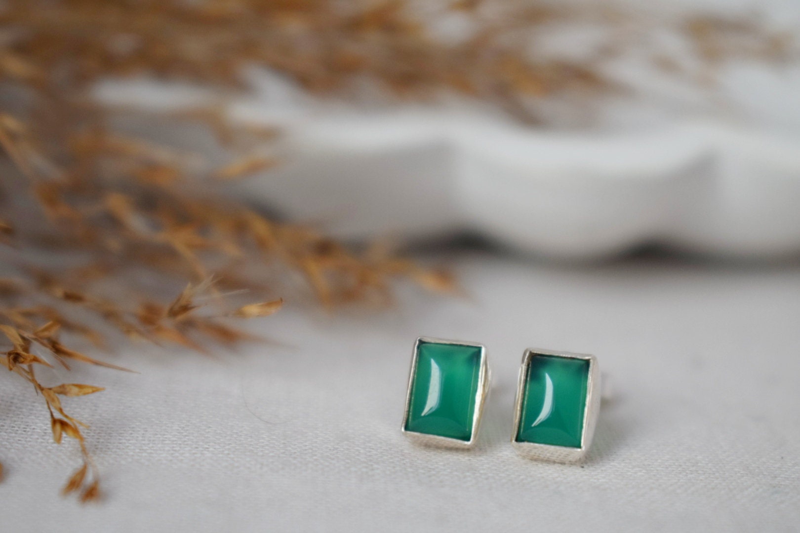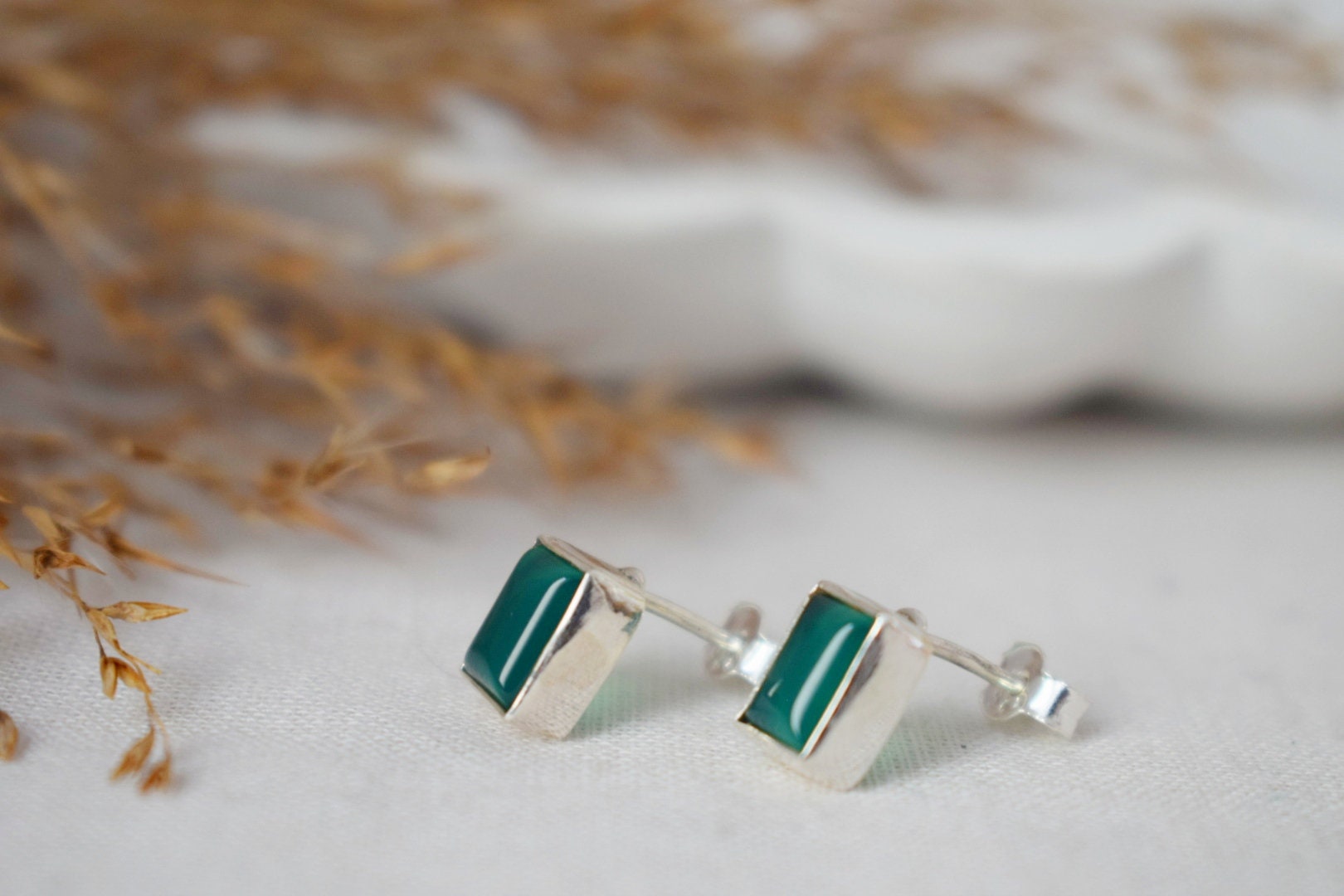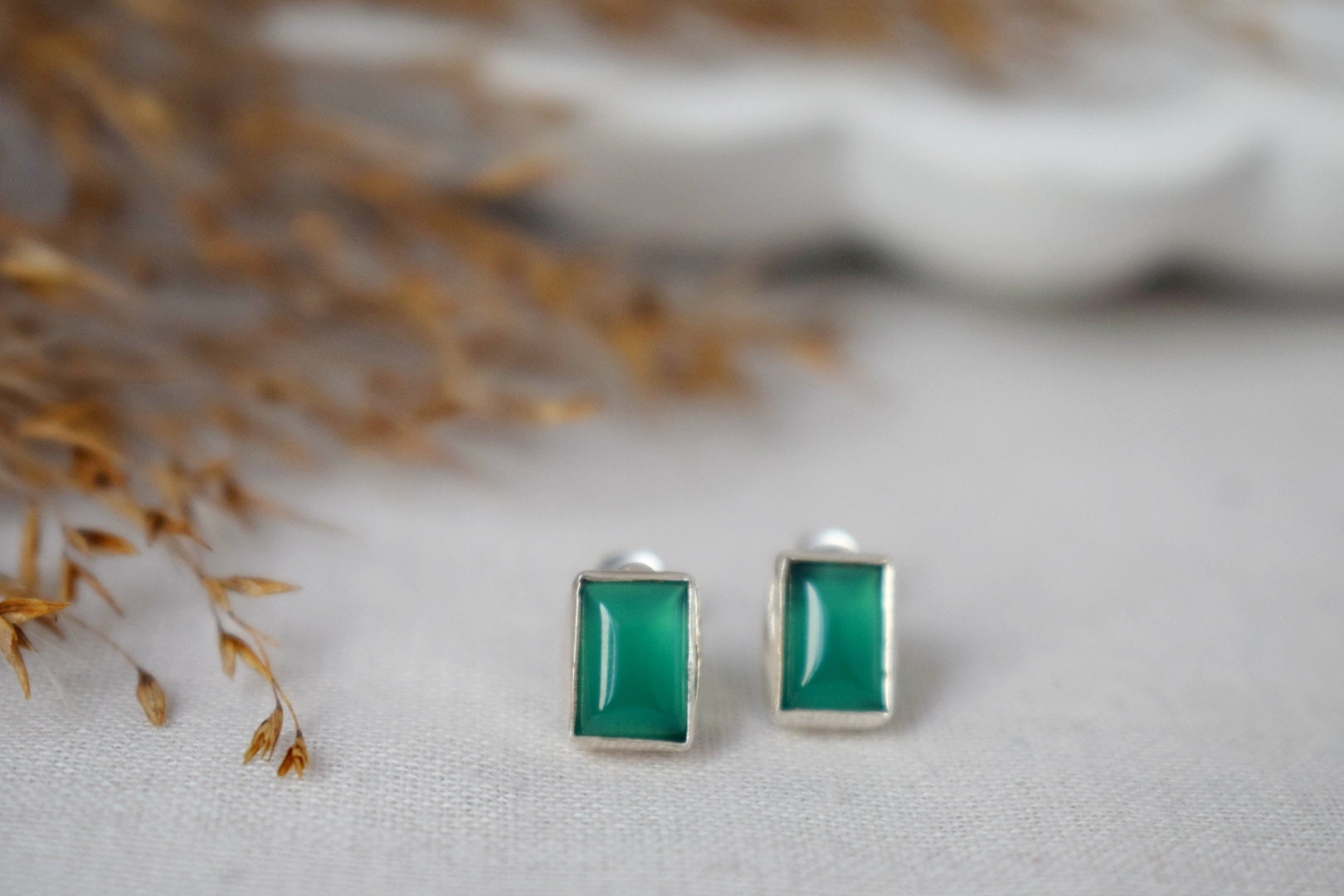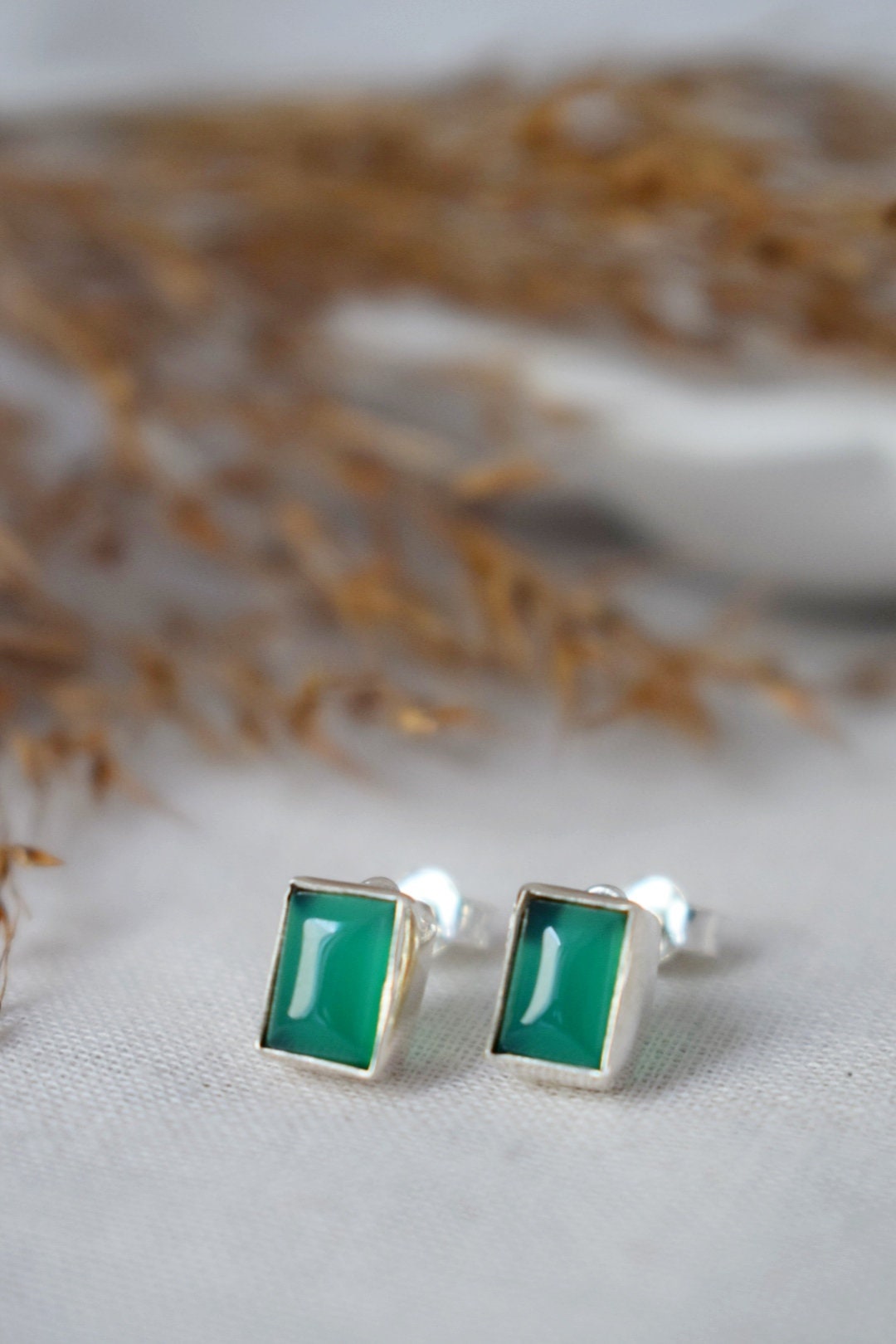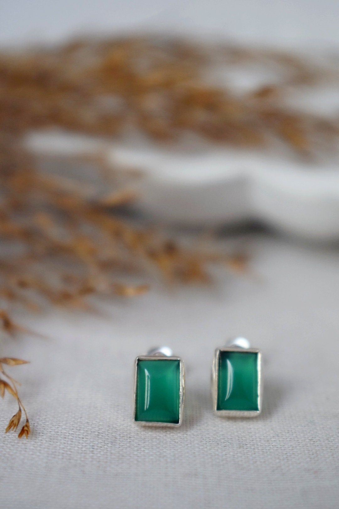 Handgefertigte Ohrstecker aus 925er Sterlingsilber mit grünem Onyx