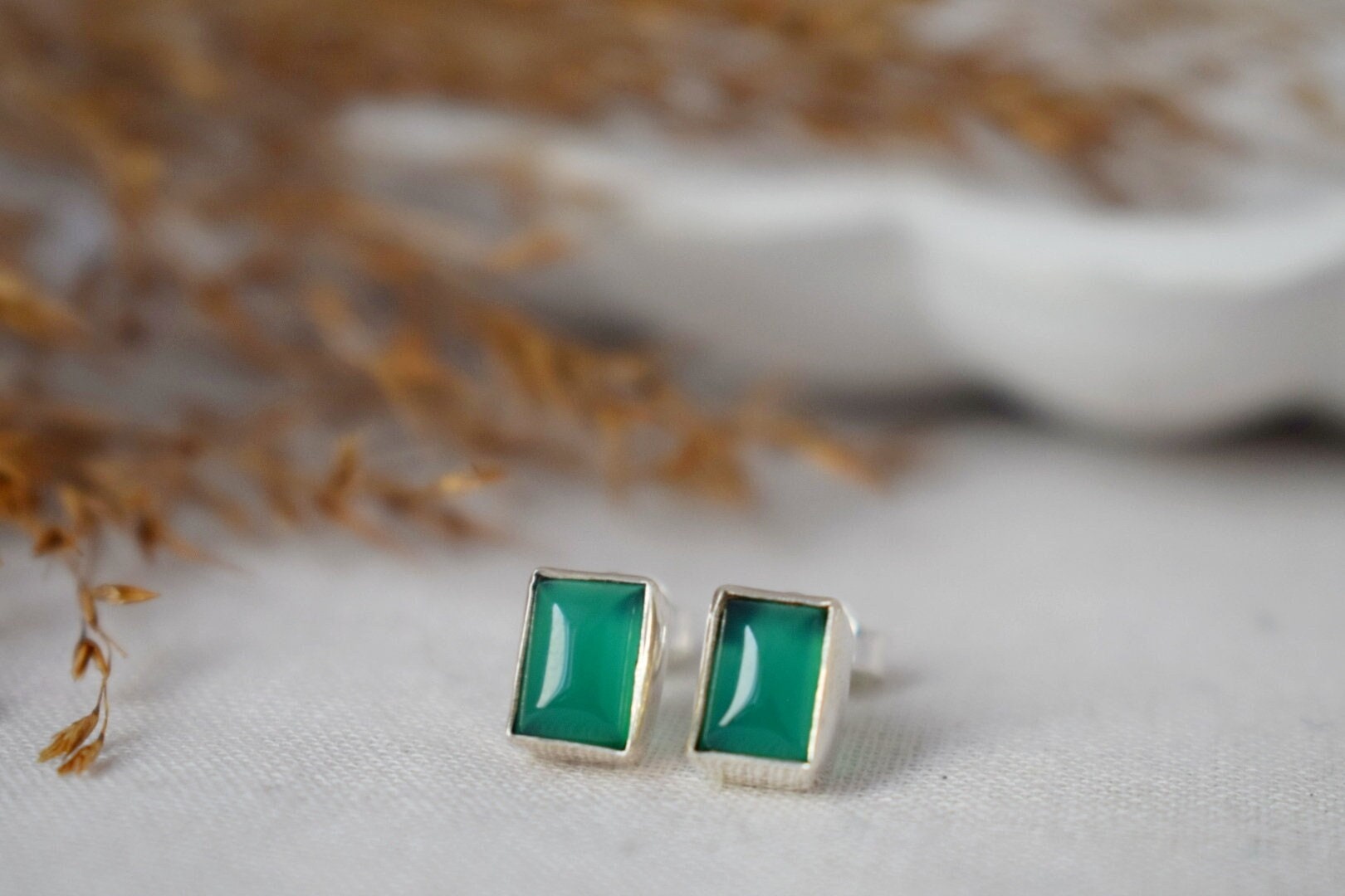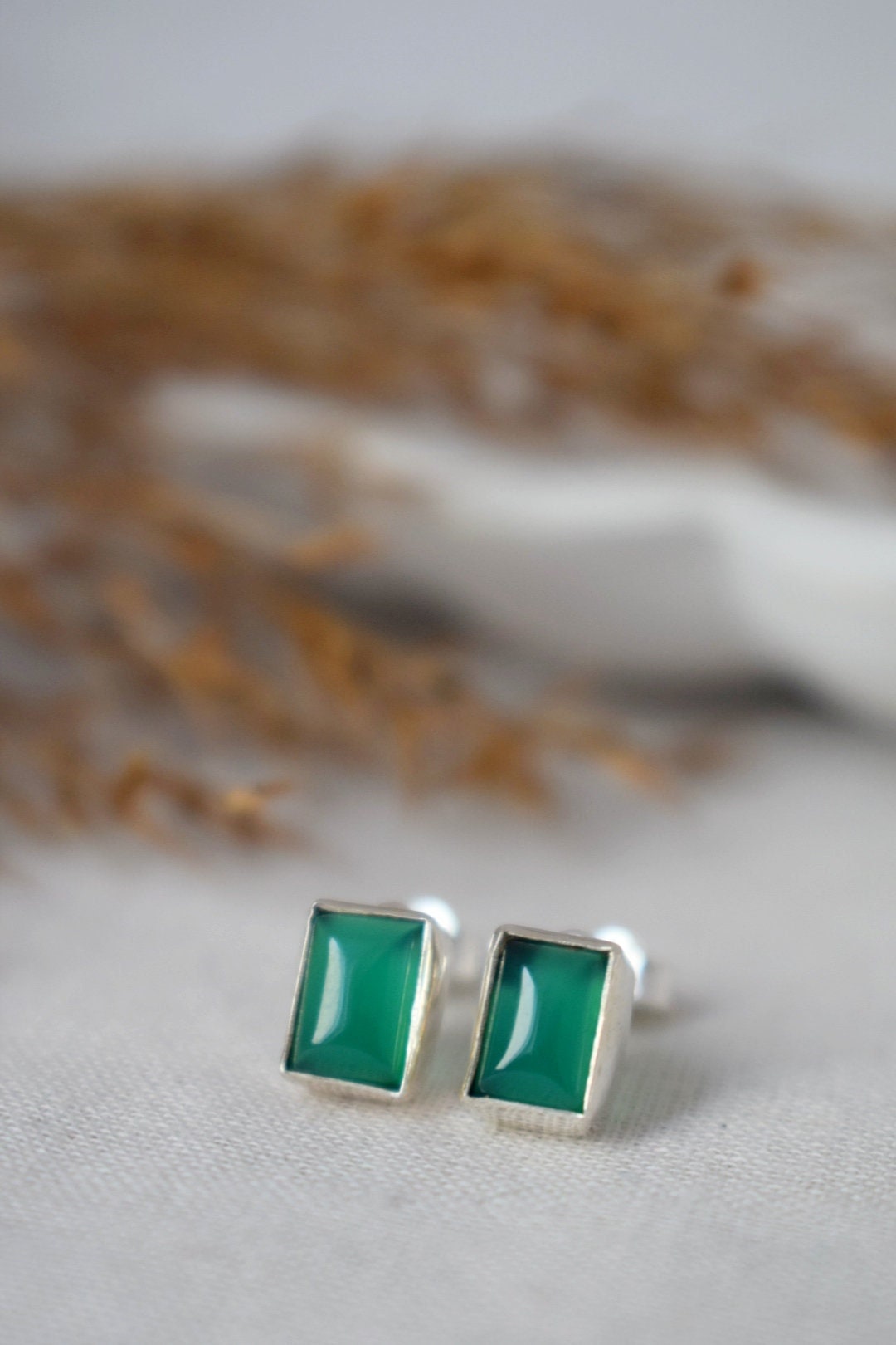 Grüne Onyx Sterling Silber Ohrstecker, Kleiner Edelstein Schmuck, Minimalistische Ohrringe aus Naturstein, Leichte Ohrstecker, Valentinstag Geschenk