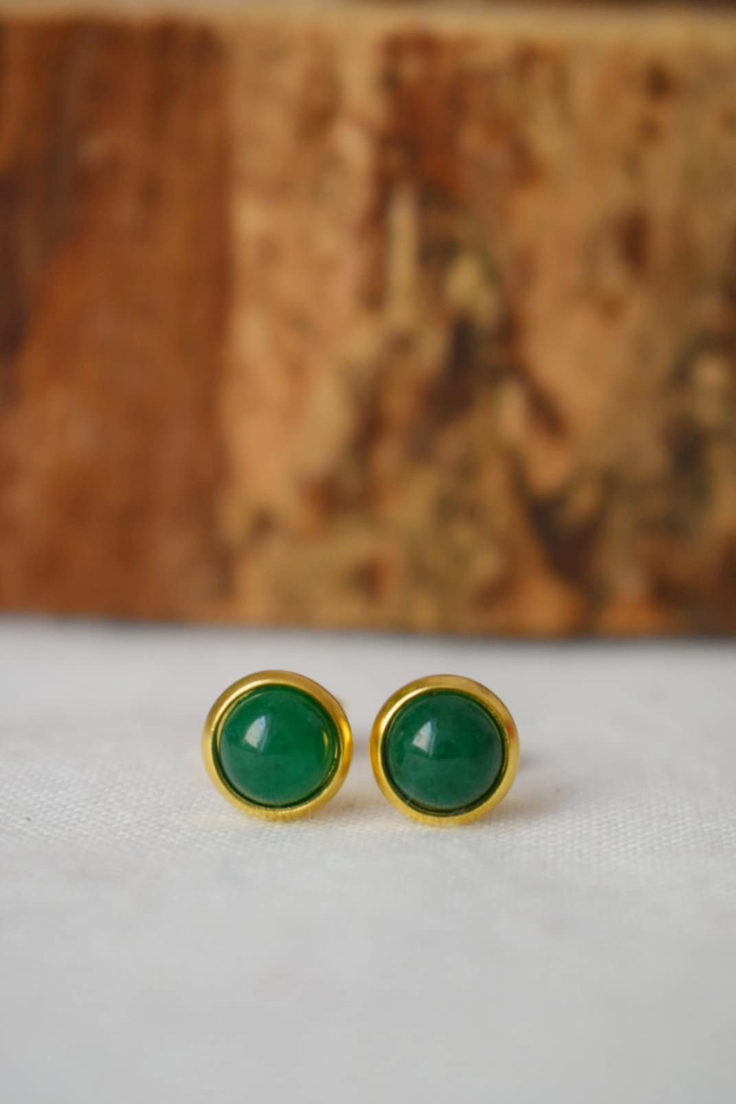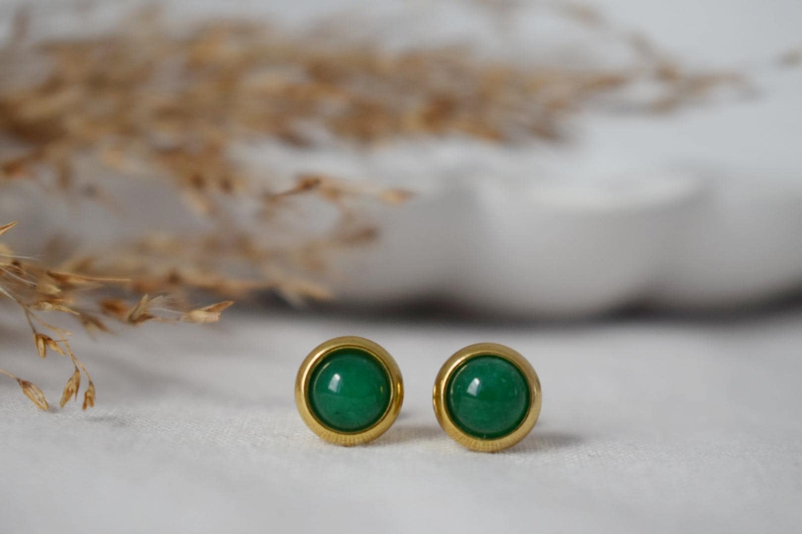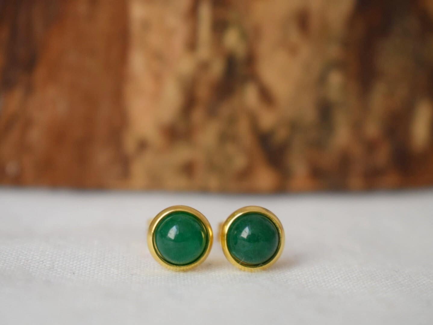 Mini Grüne Jade Ohrstecker, Minimalistische Edelstein Ohrringe, Kleine Ohrstecker für Frauen, Geschenkschmuck für Sie