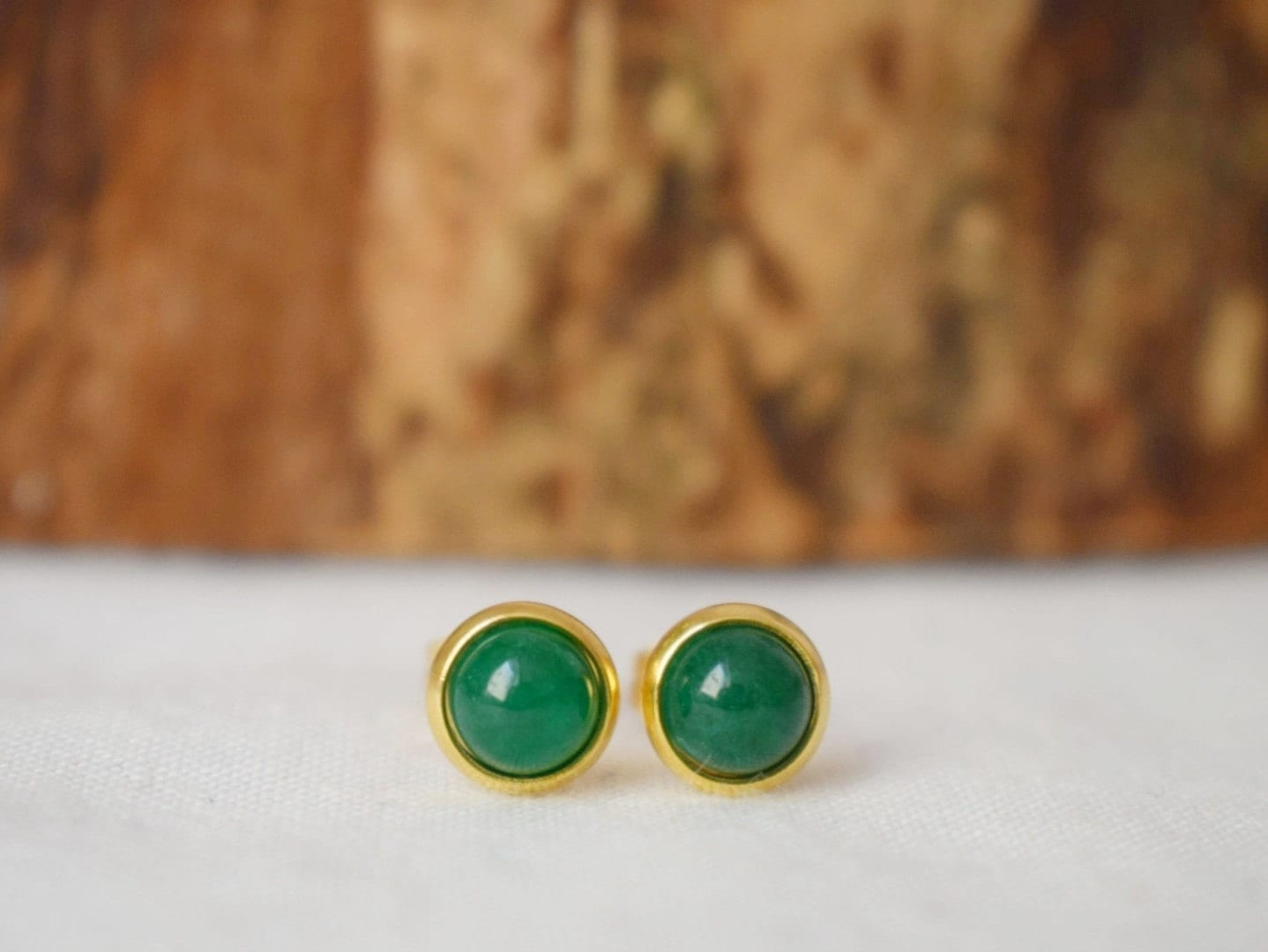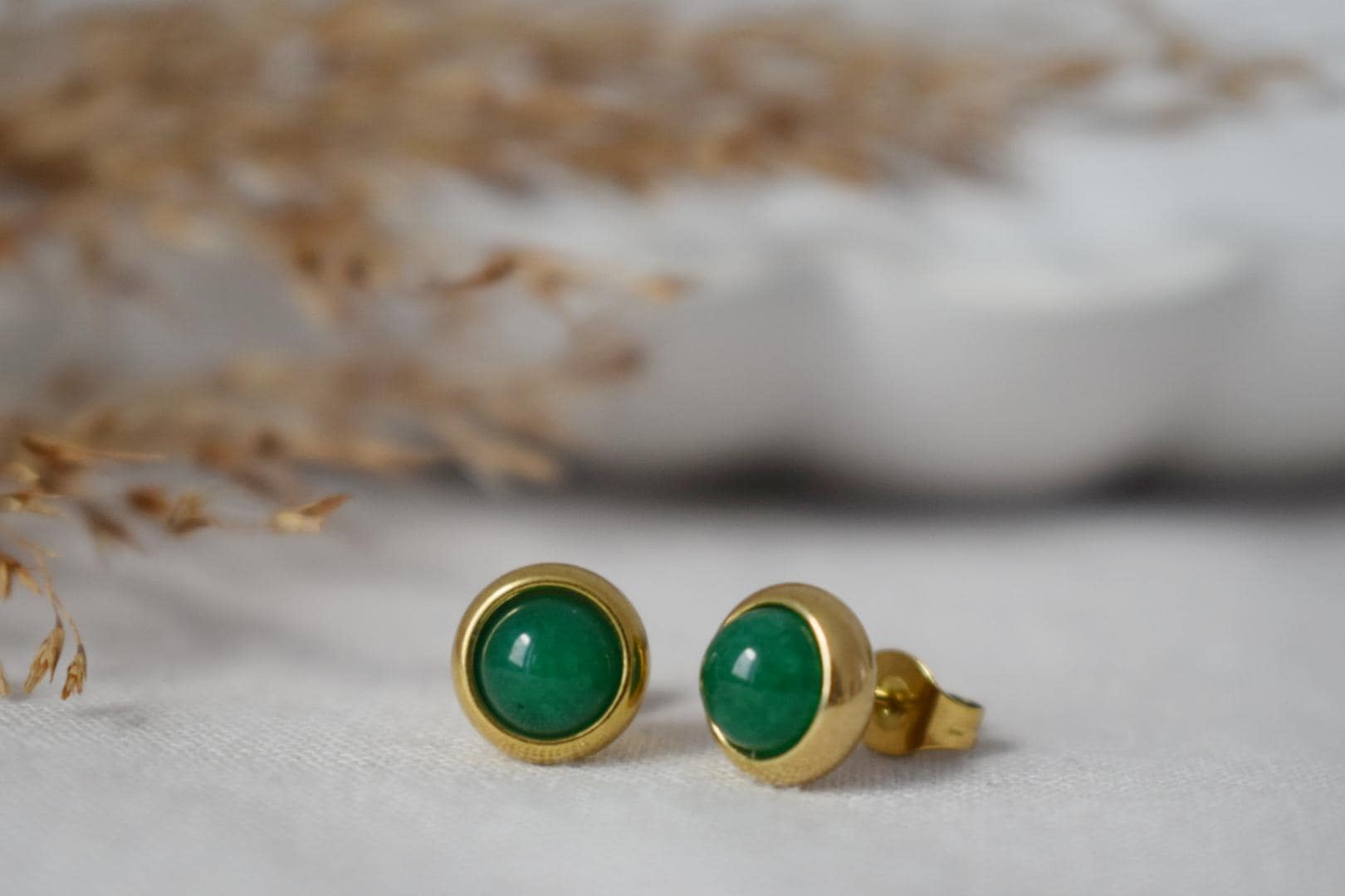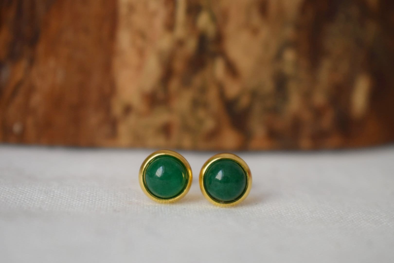 Mini Grüne Jade Ohrstecker, Minimalistische Edelstein Ohrringe, Kleine Ohrstecker für Frauen, Geschenkschmuck für Sie