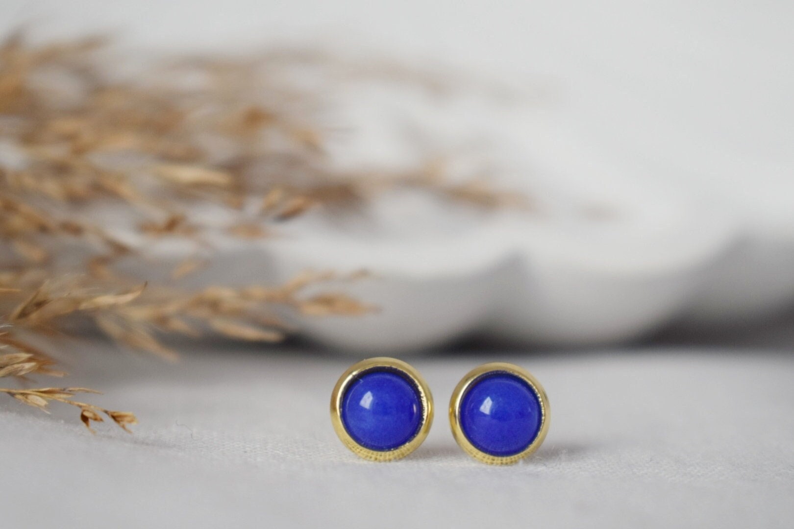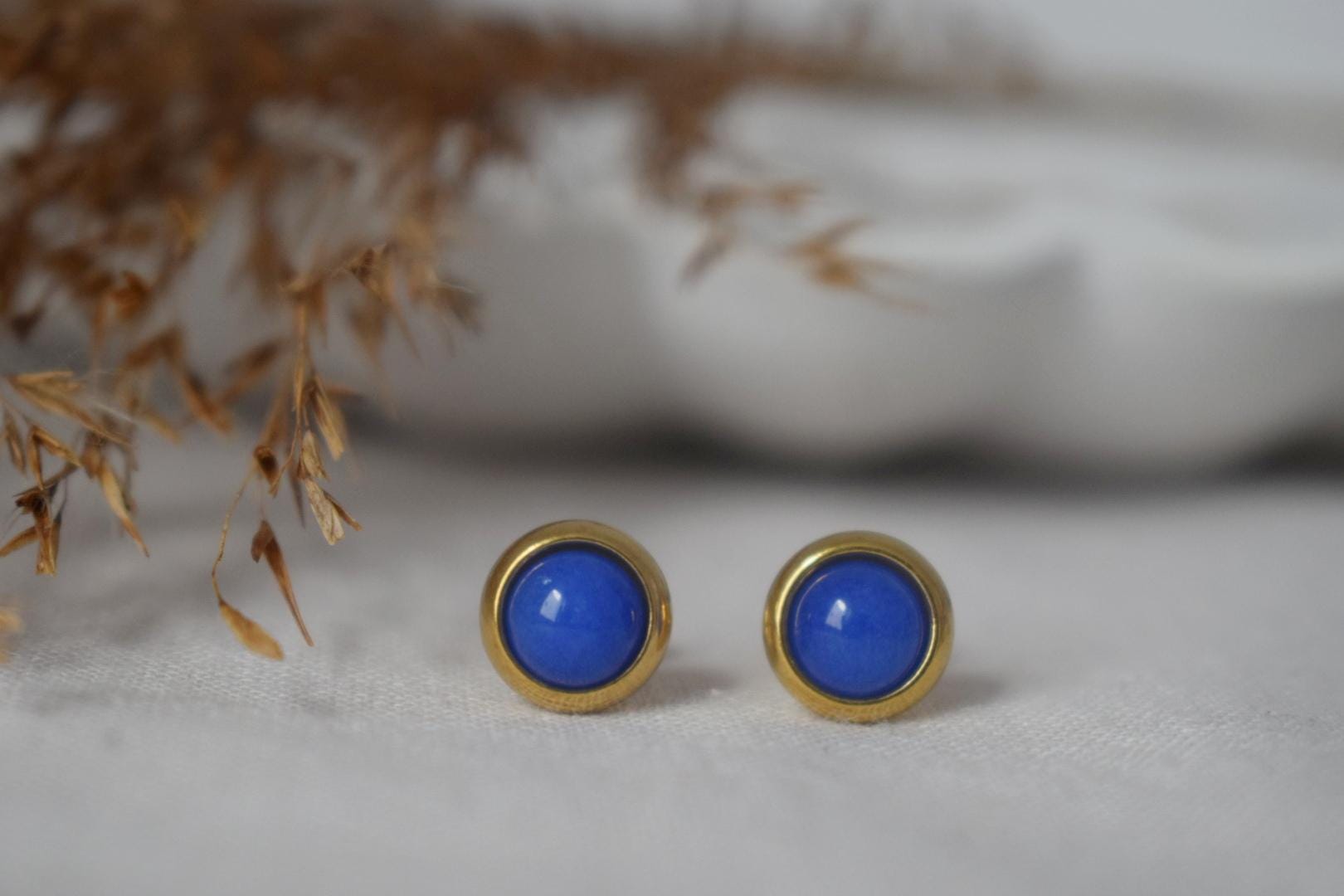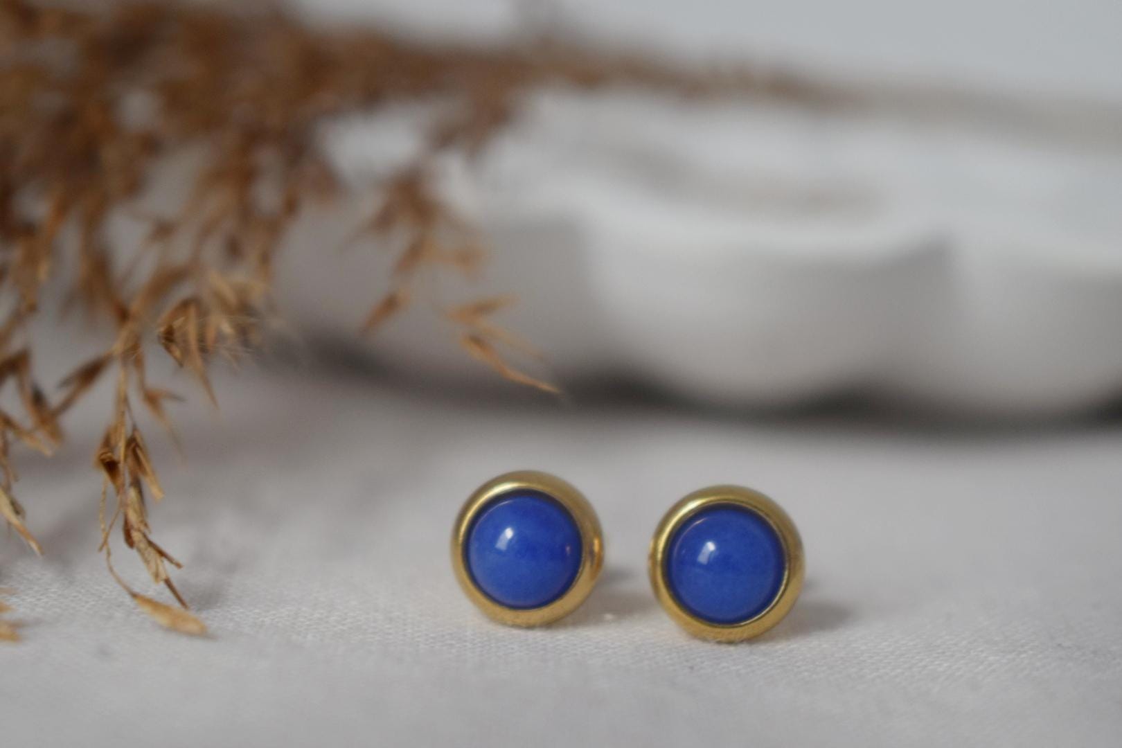 Mini jadeblaue Ohrstecker, 6mm royalblaue Edelstein Ohrringe, Kleine Ohrstecker, Push Back Ohrringe, Minimalistischer Schmuck, Geschenk für Sie