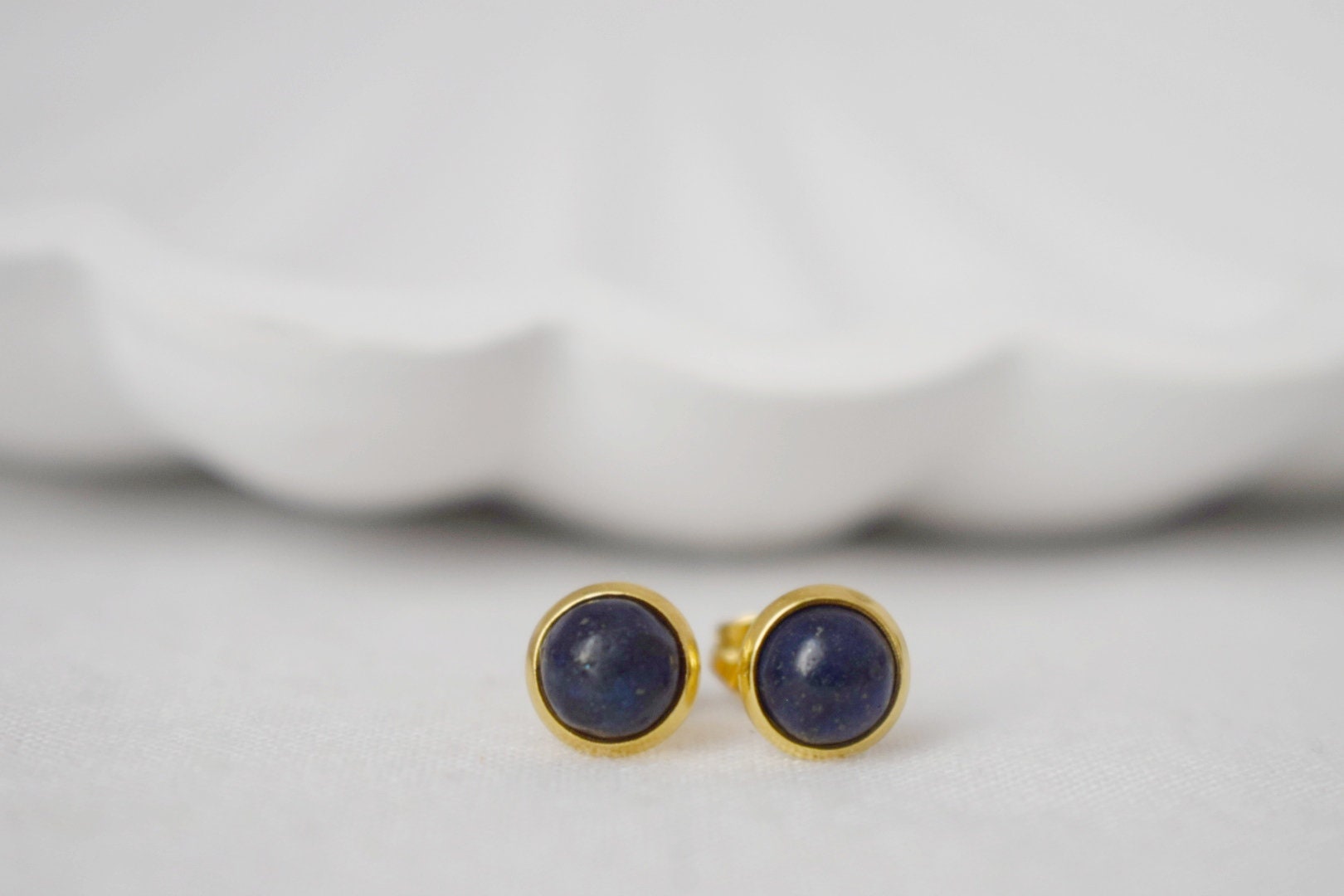 Mini Lapis Ohrstecker Gold, 6mm, Kleine blaue Lapislazuli Ohrringe, rund, minimalistisch, handgefertigter Lapislazuli Schmuck, September Geburtsstein