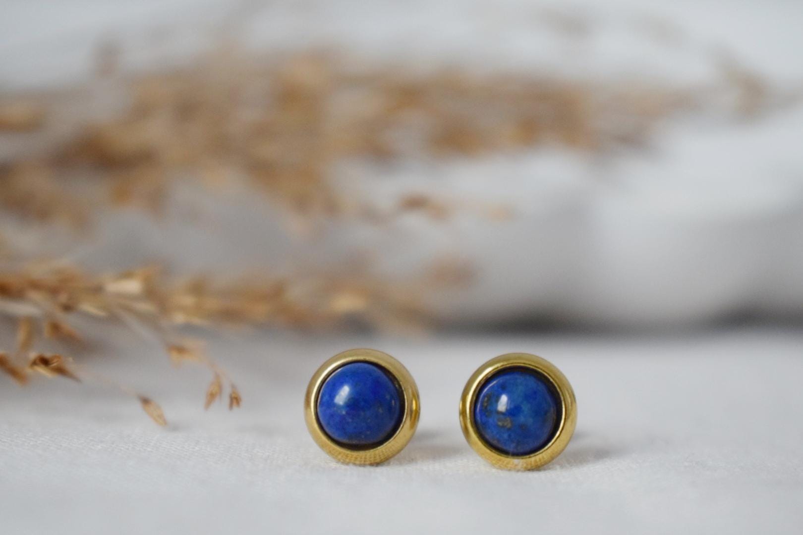 Handgefertigte Ohrstecker aus dunkelblauem Lapislazuli und vergoldetem Edelstahl