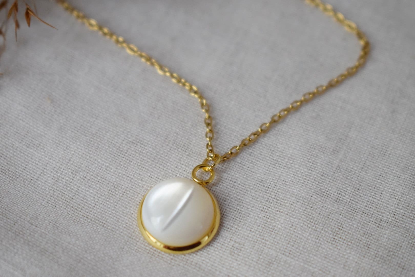 Perlmutt-Ohrclips, 12 mm, weiße Perlmuttmuschel, vergoldeter Edelstahl, Perlenohrclips Damen, Nicht durchbohrte Ohren, Schmuck
