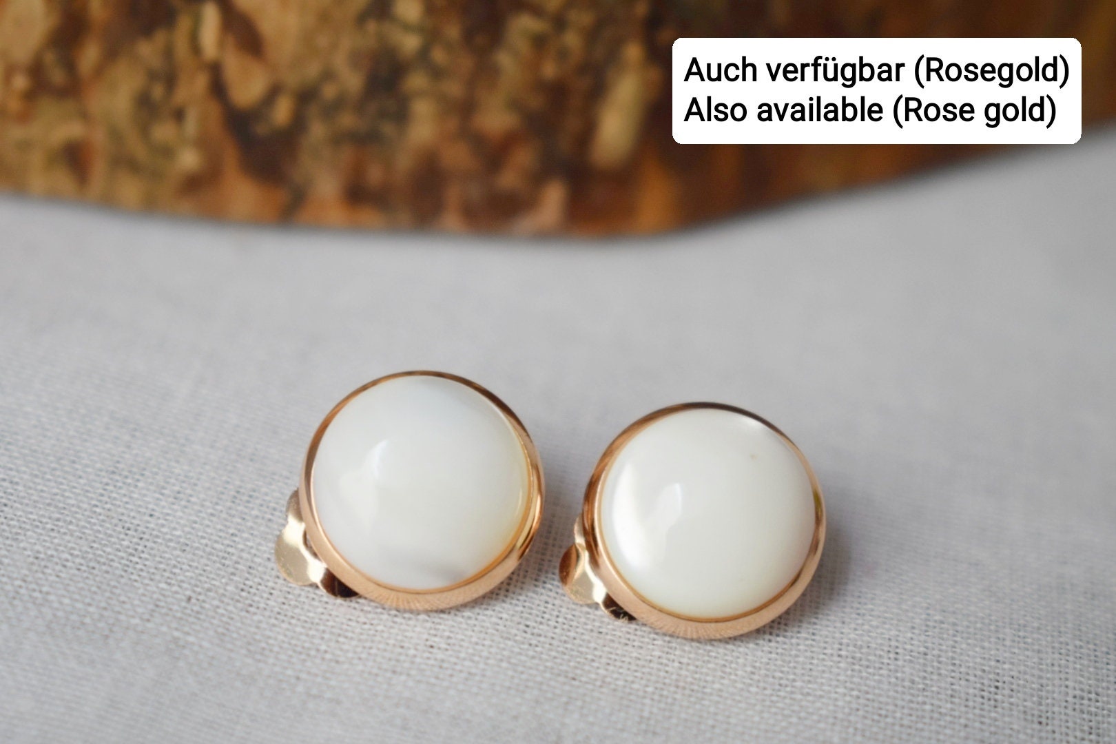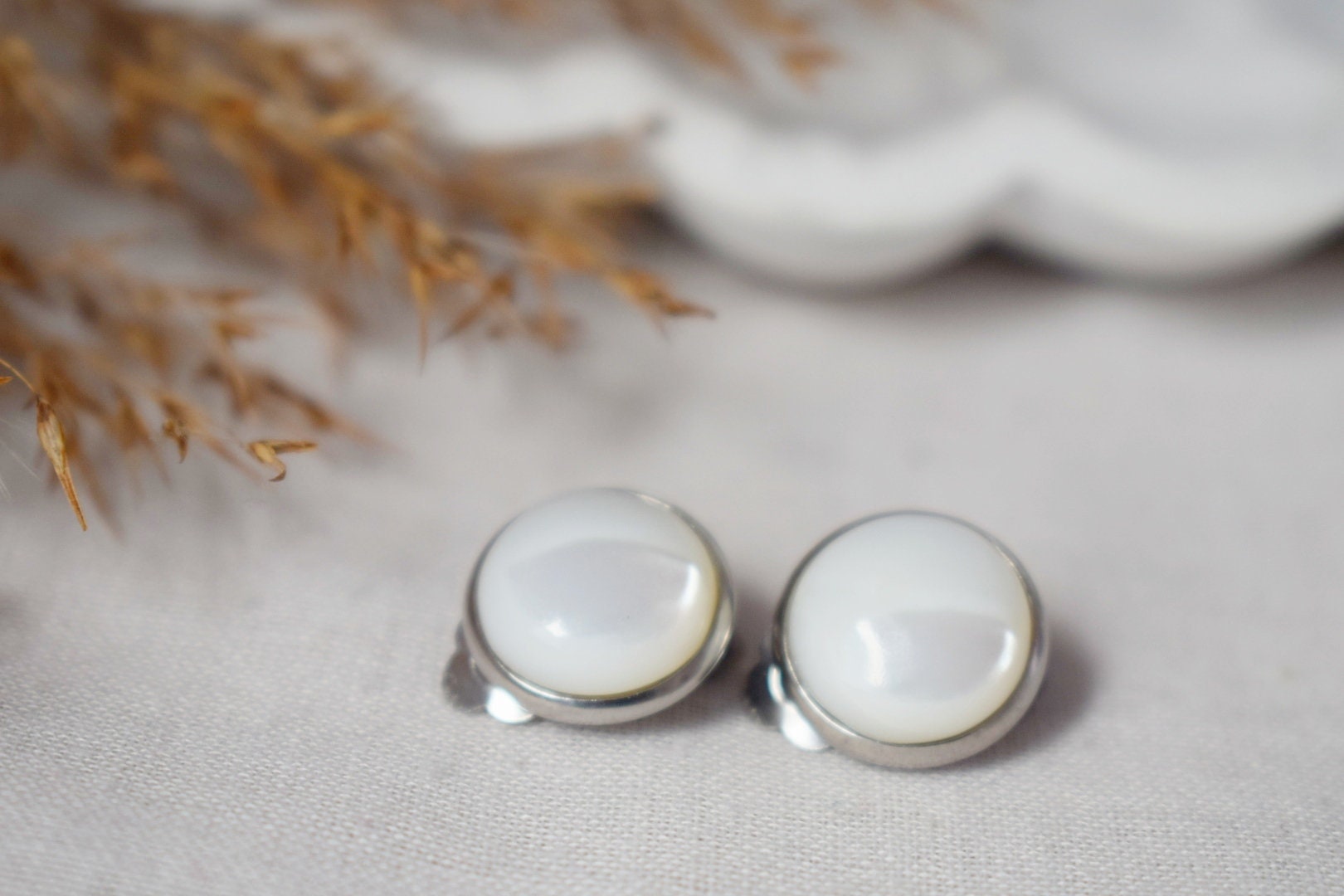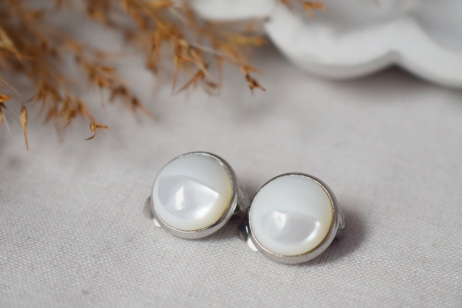 Perlmutt-Ohrclips, 12 mm, weiße Perle, Edelstahl, Perlenohrclips für Frauen, Nicht durchbohrte Ohren, Perlenschmuck