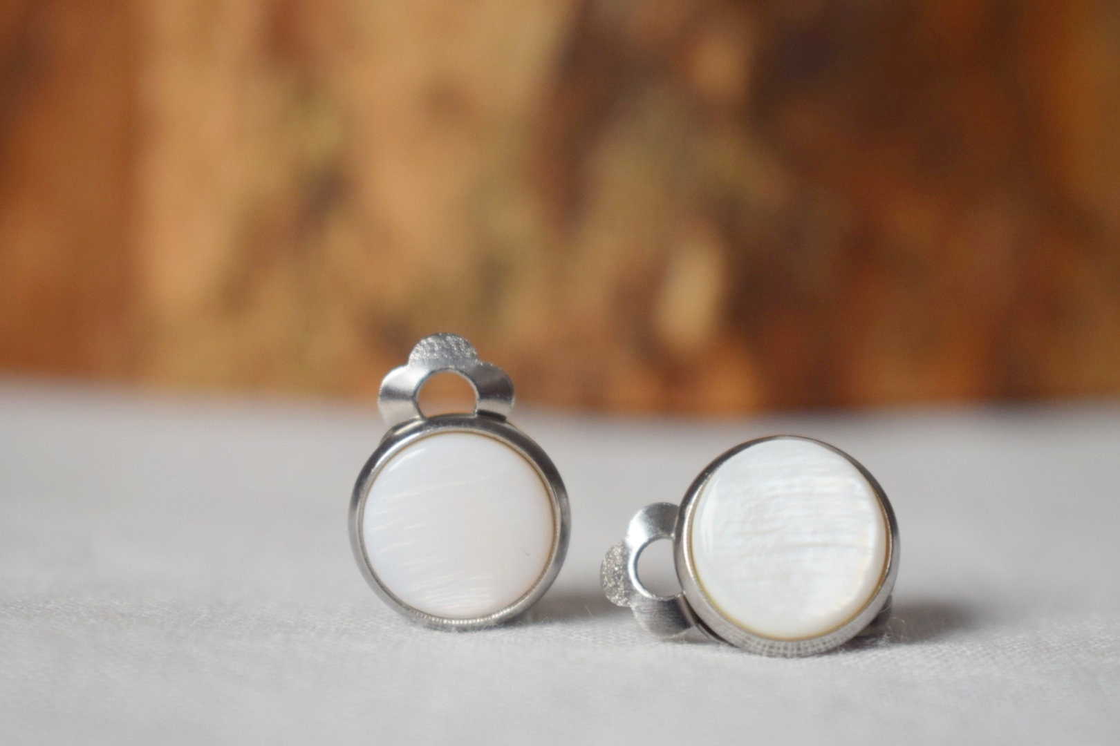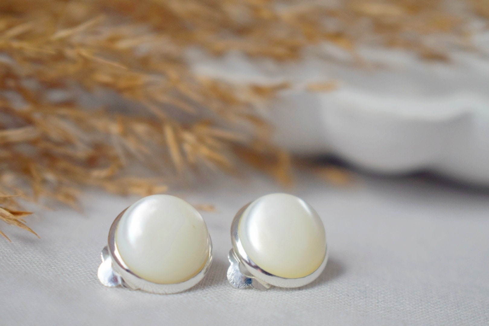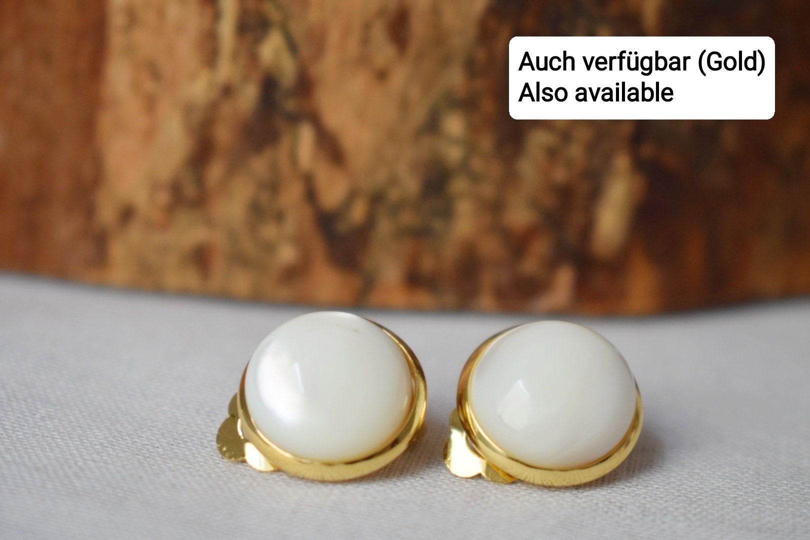 Perlmutt-Ohrclips, 12 mm, weiße Perle, Edelstahl, Perlenohrclips für Frauen, Nicht durchbohrte Ohren, Perlenschmuck