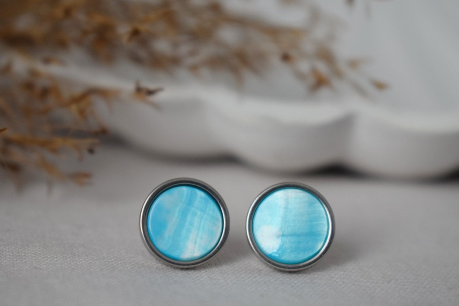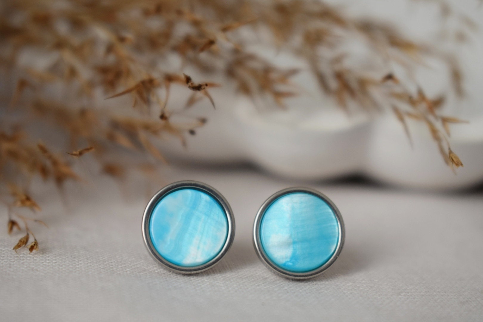 10 mm massive Ohrstecker, Rahmen und Push-Back sind aus hochwertigem Edelstahl gefertigt, 2 zusätzliche Silikon-Push-Backs Der Rahmen und die Push-Backs der massiven 10 mm Ohrstecker bestehen aus hochwertigem Edelstahlmaterial, 2 zusätzliche Push-Backs aus Silikon. Weiße Schale & blaue (cyanfarbene) Schale (gefärbt) Cabochons, Schmuckkleber. Passend dazuHighlights