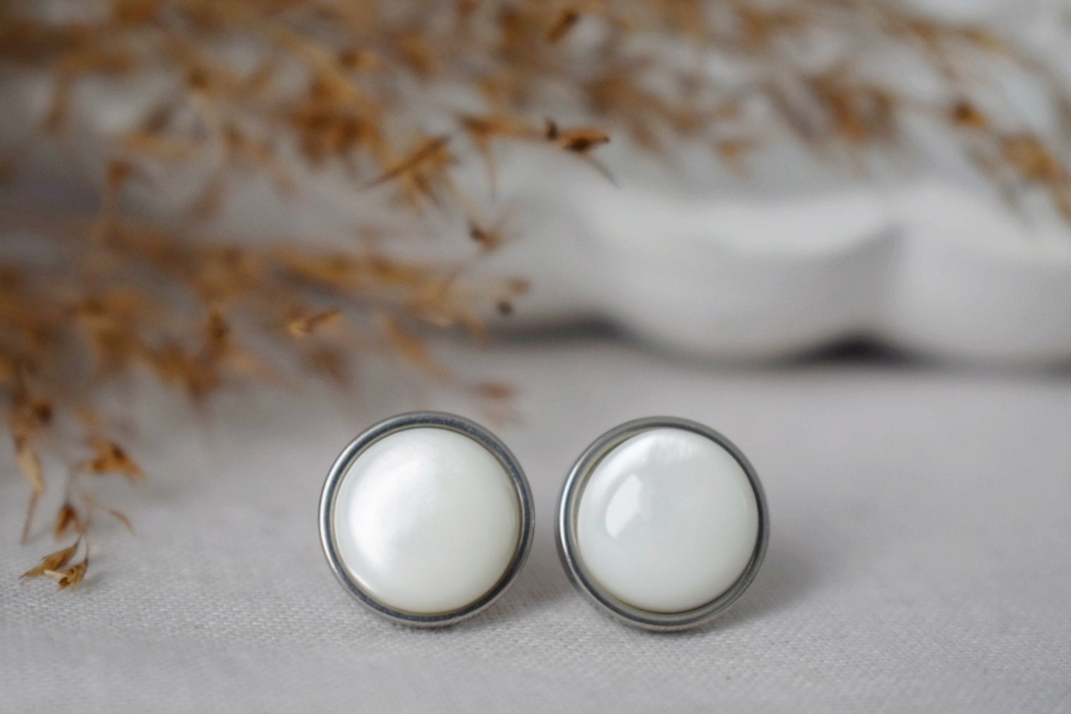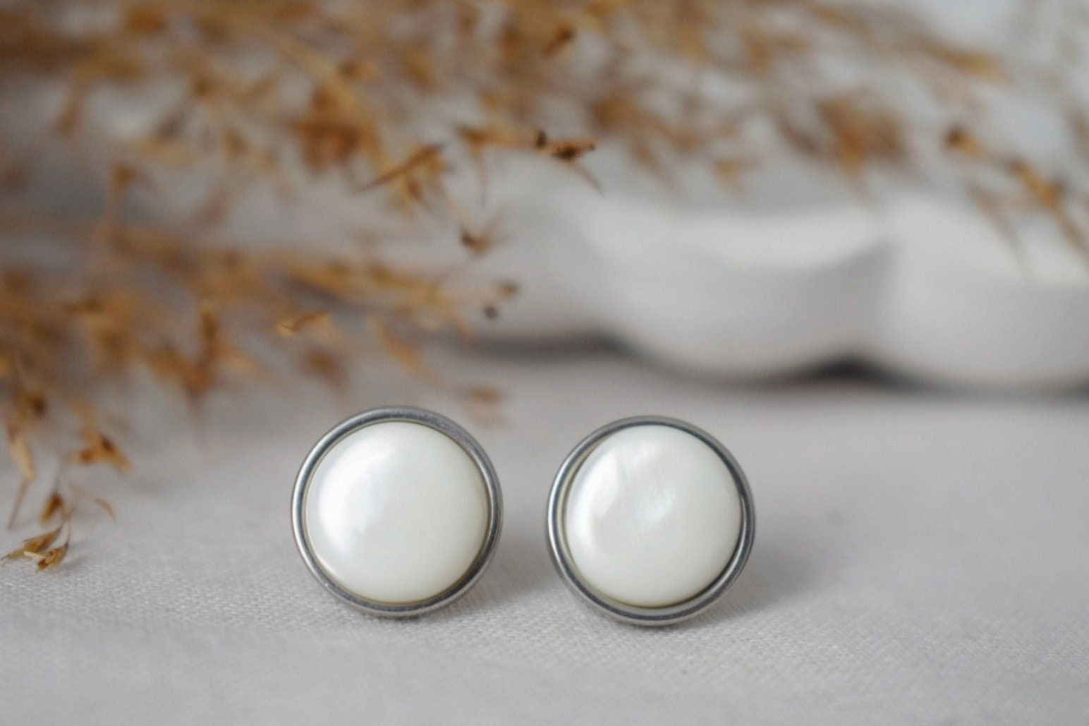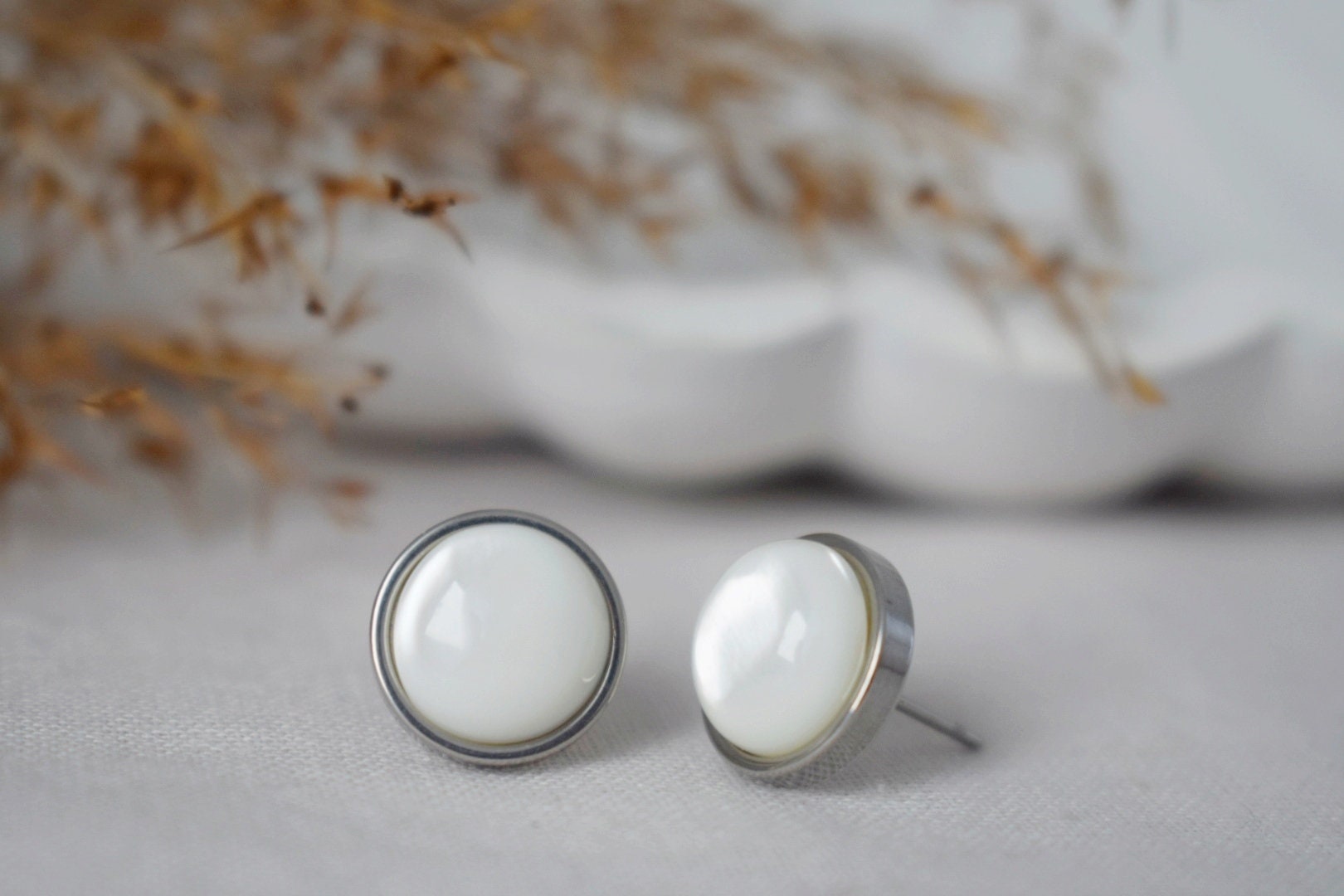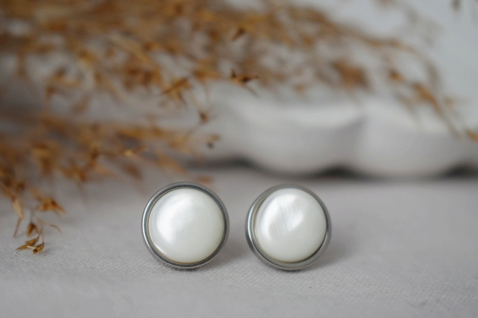 Perlmutt Ohrstecker, Muschel Ohrstecker, 10mm, Edelstahl Ohrstecker, Rund, Push Back Ohrstecker, Perlenschmuck, Geschenk Frauen