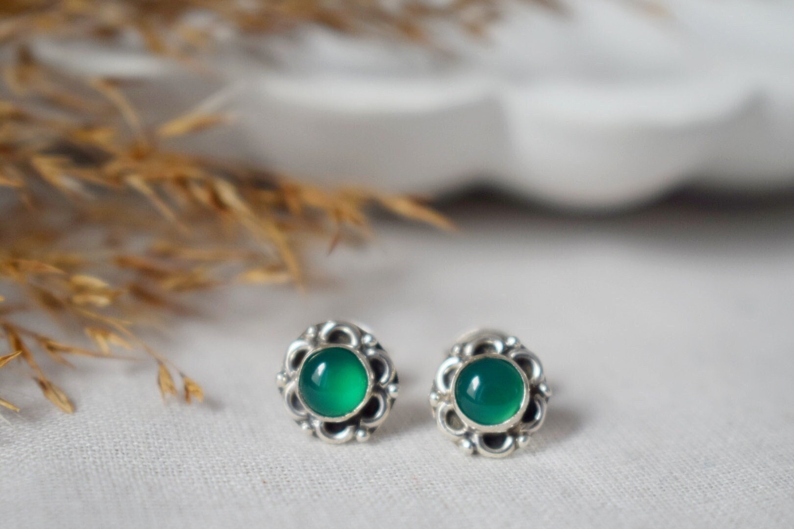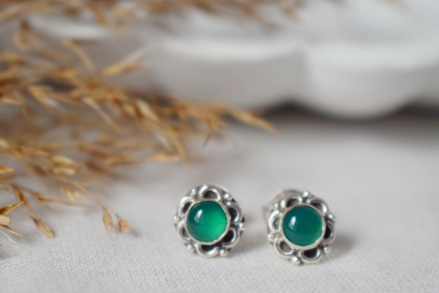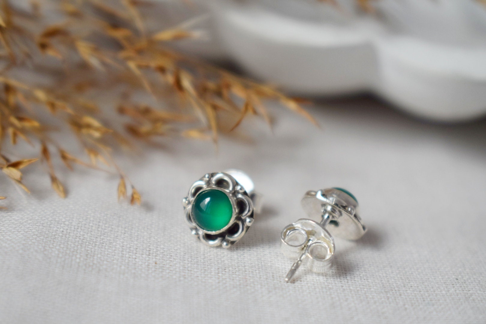 Handgefertigte Ohrstecker aus 925er Sterlingsilber mit grünem Onyx