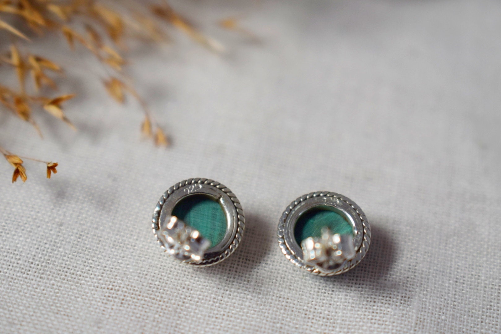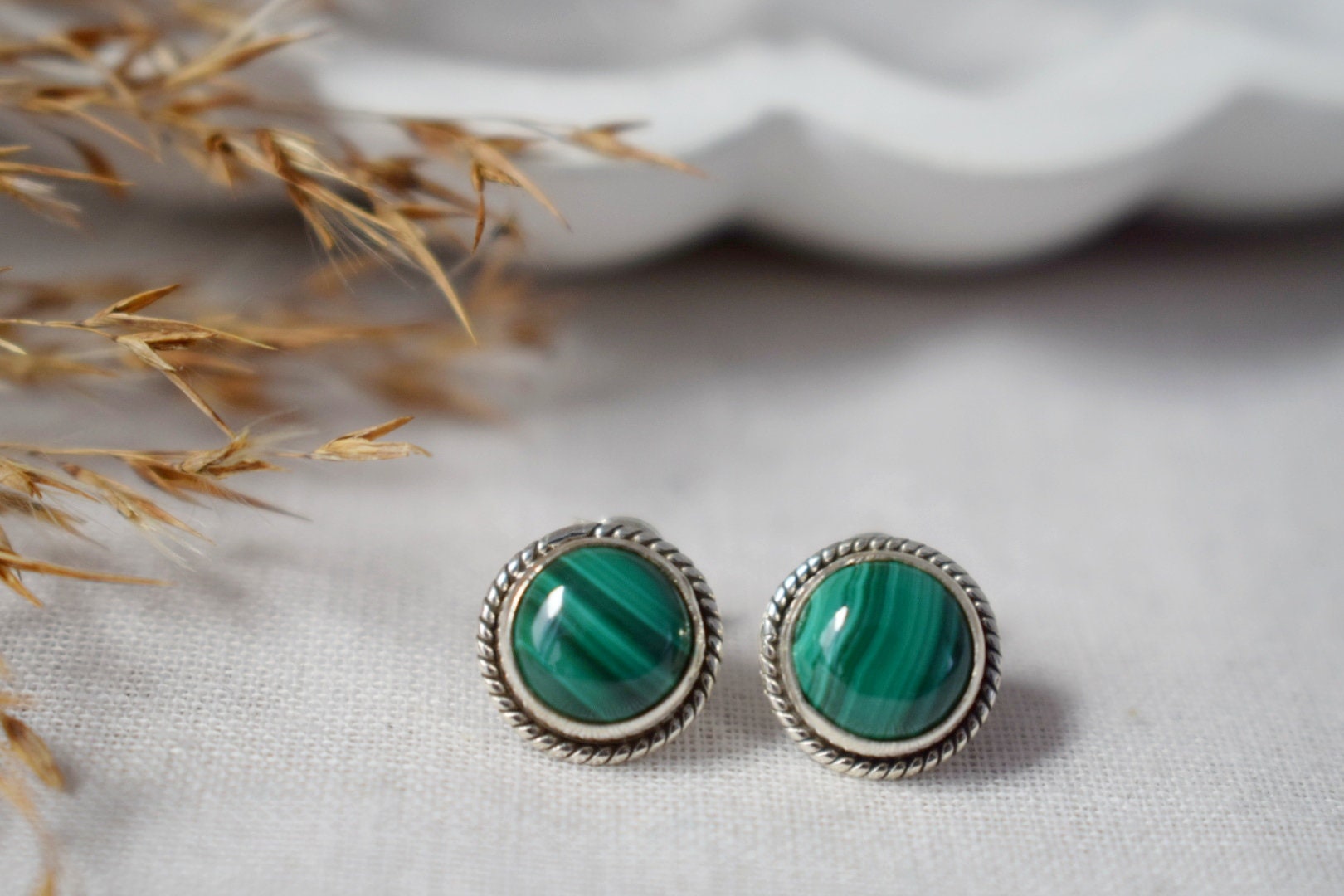 Handgefertigte Ohrstecker aus natürlichem Malachit in 925er Sterlingsilber"