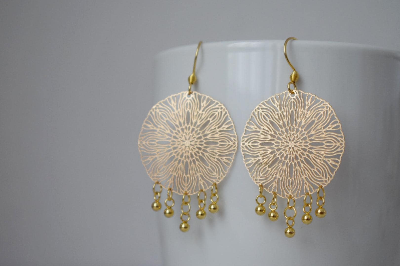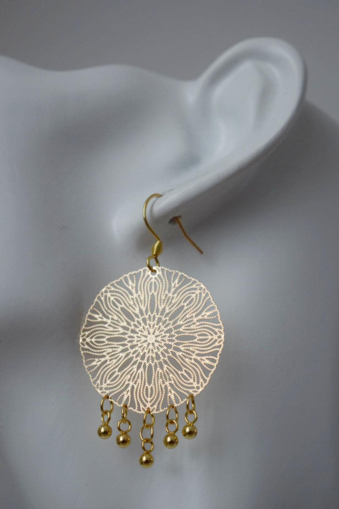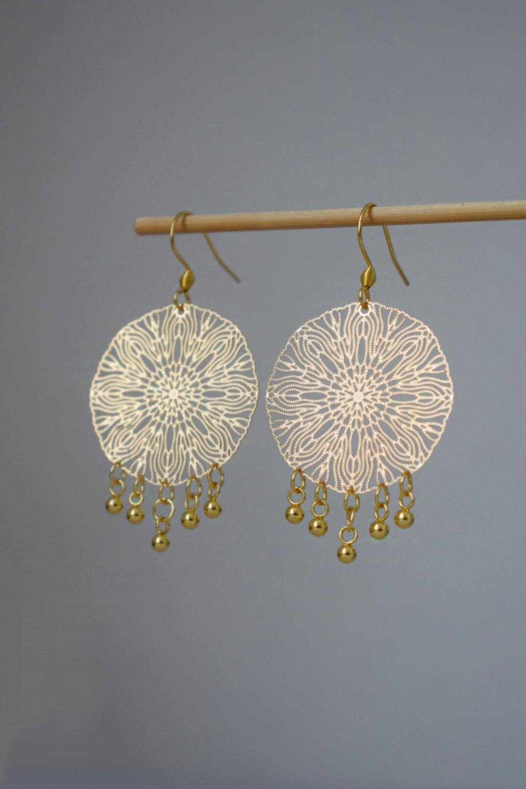Ornamentohren für Frauen, Mandala Goldohren, Edelstahlohren, Boho filigrane Goldohren, Mandala Schmuck, Geschenk für Sie