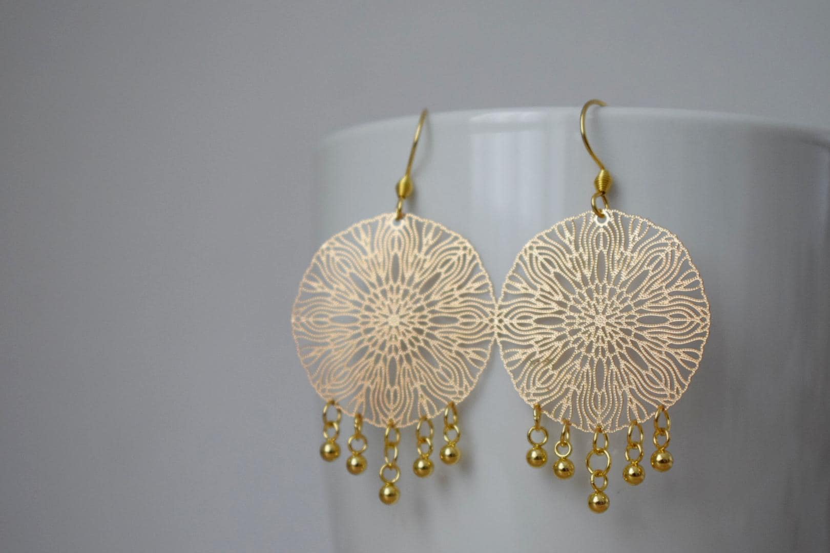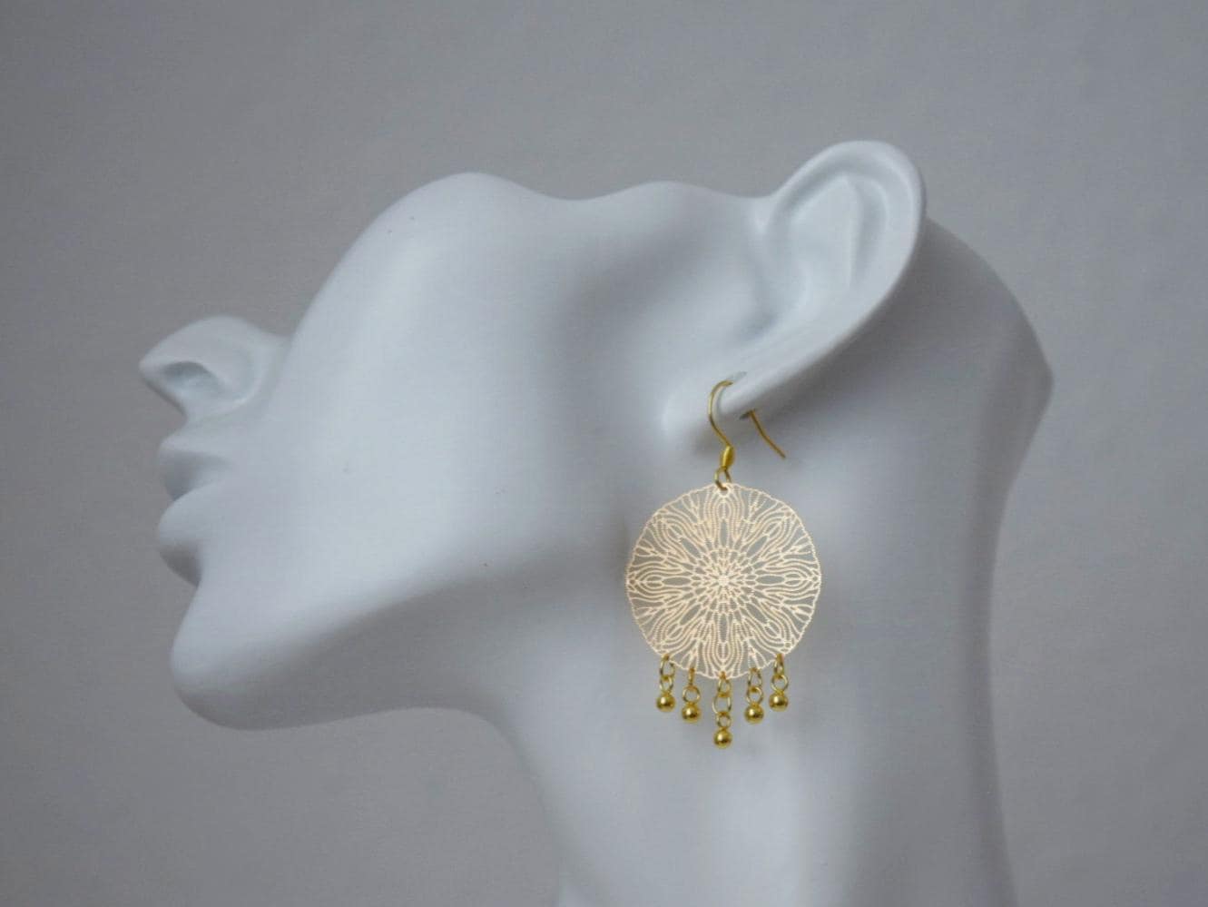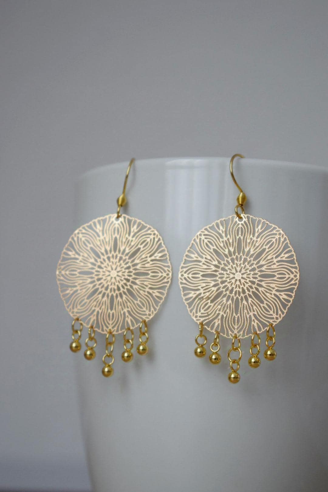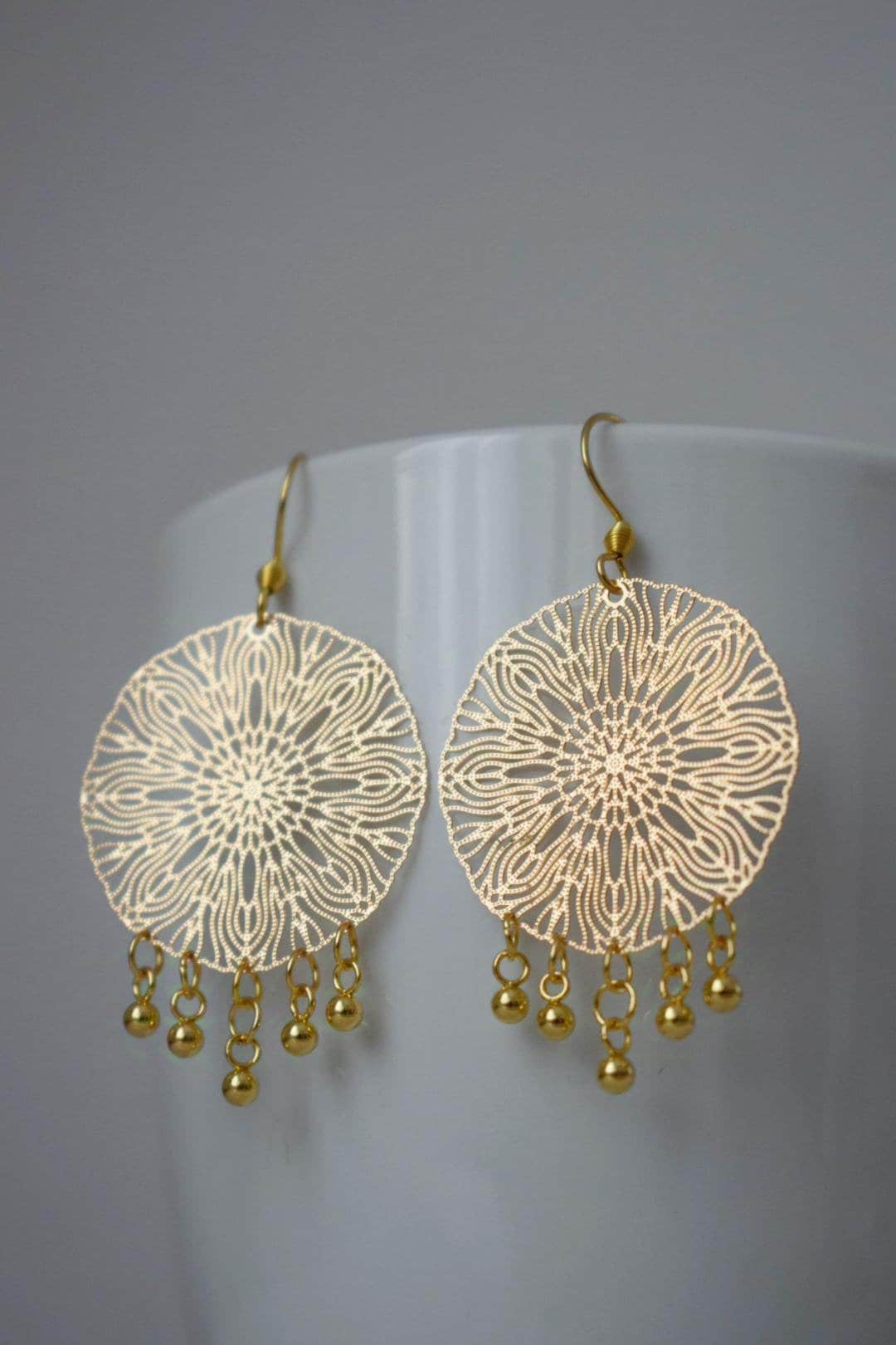 Ornamentohren für Frauen, Mandala Goldohren, Edelstahlohren, Boho filigrane Goldohren, Mandala Schmuck, Geschenk für Sie