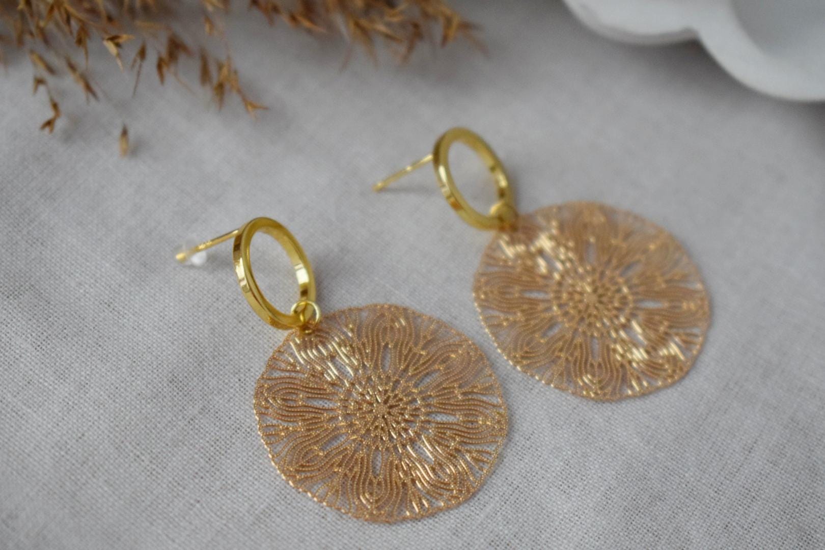 Ornament-Ohrringe für Frauen, Mandala-Ohrstecker aus Gold, filigrane Boho-Ohrringe, offene Kreis-Ohrstecker, Schmuckgeschenk für Sie
