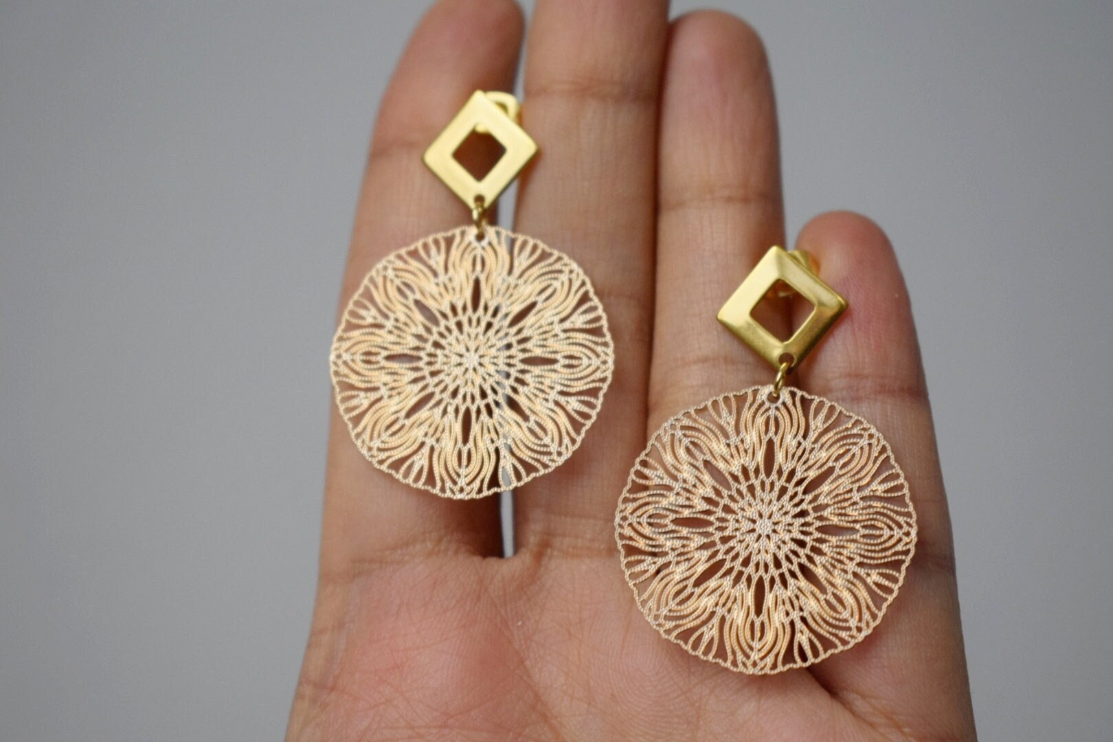 Ornamentohren für Frauen, Mandala Ohrstecker, Rauten Ohrstecker, Vergoldete Edelstahl Ohrstecker, Boho Filigrane Ohren, Mandala Schmuck, Geschenk für Sie